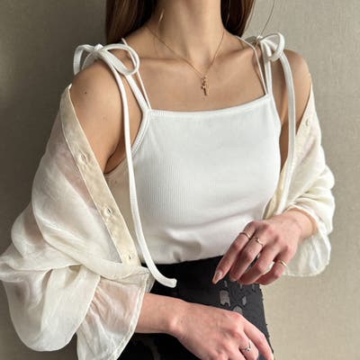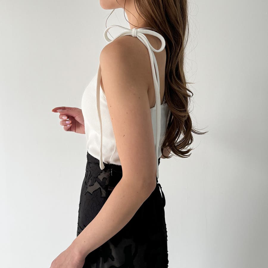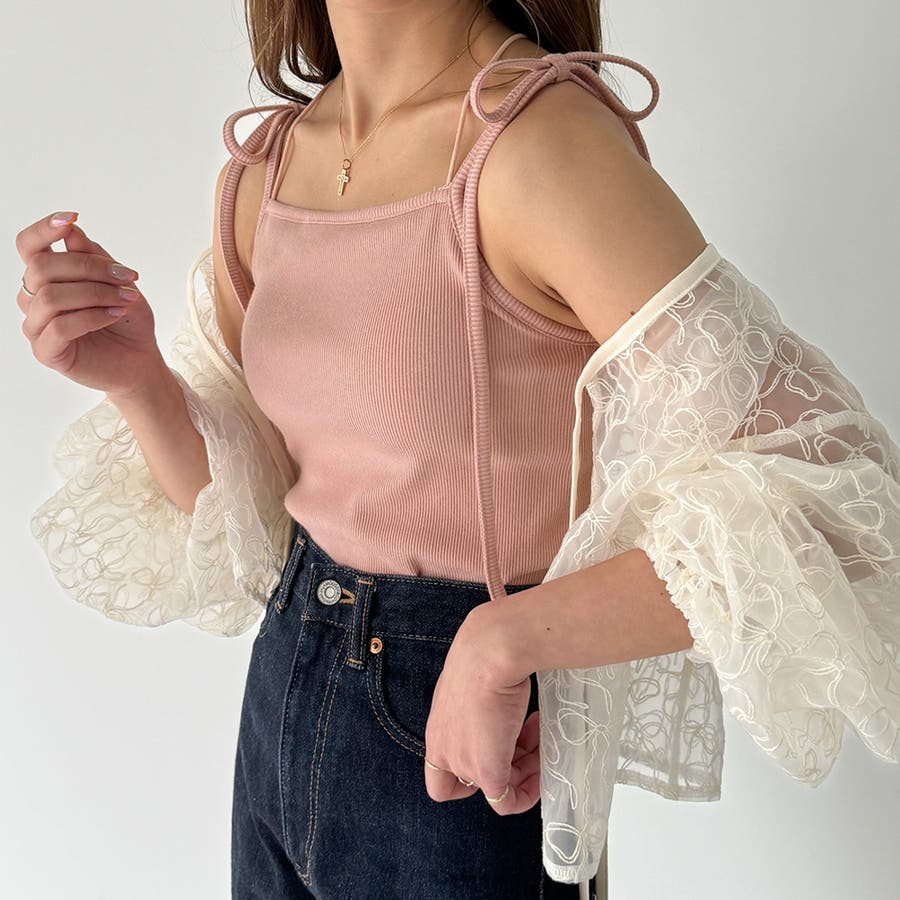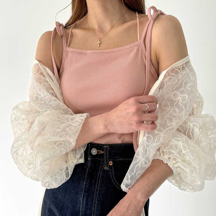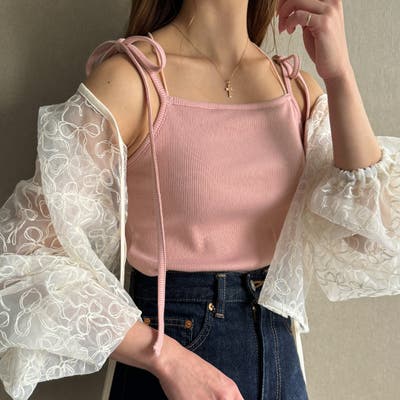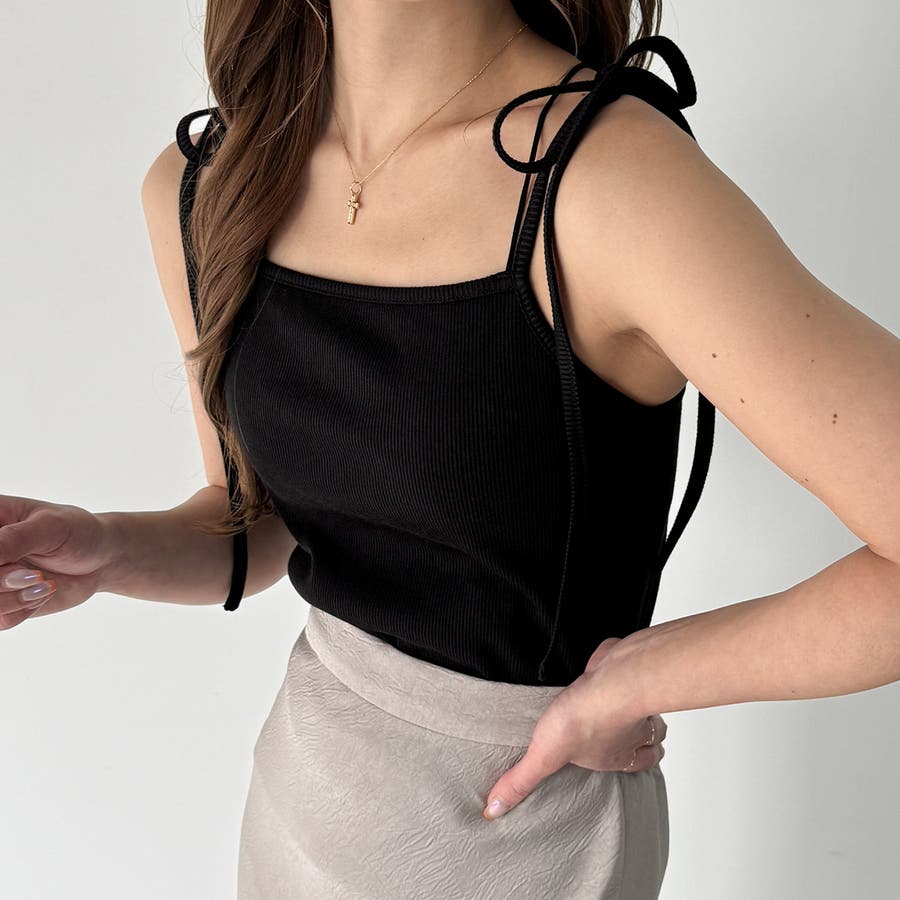 【取り外し可能パット付き】肩リボンバッククロスリブキャミソール