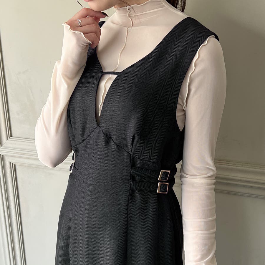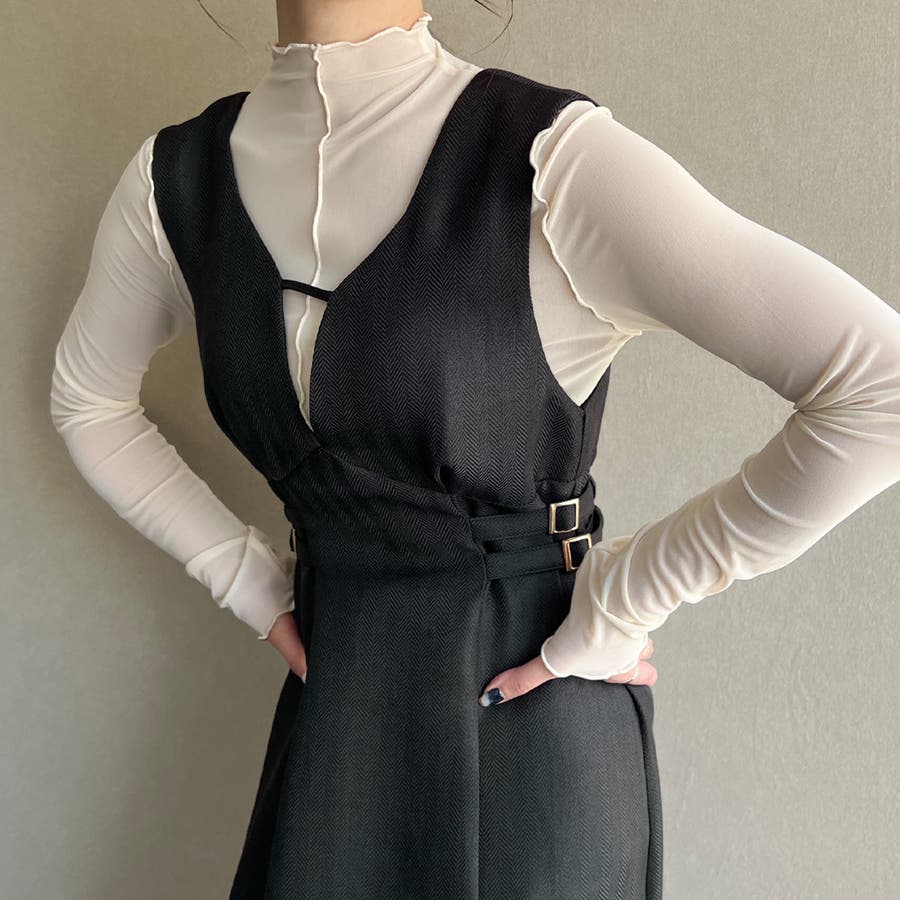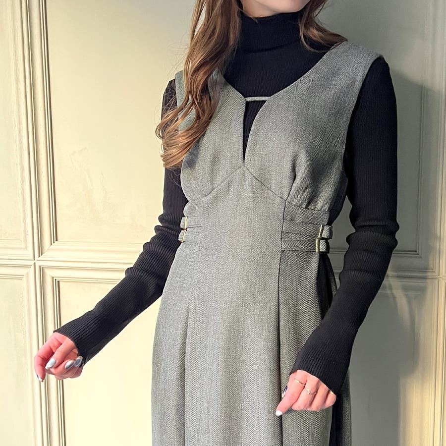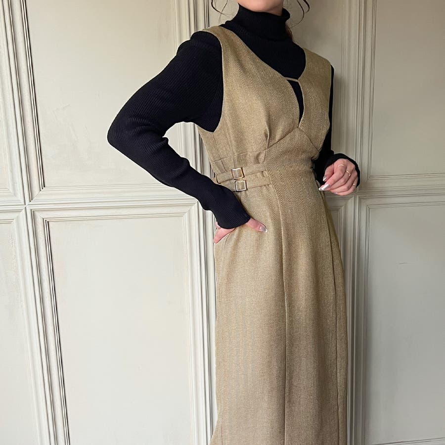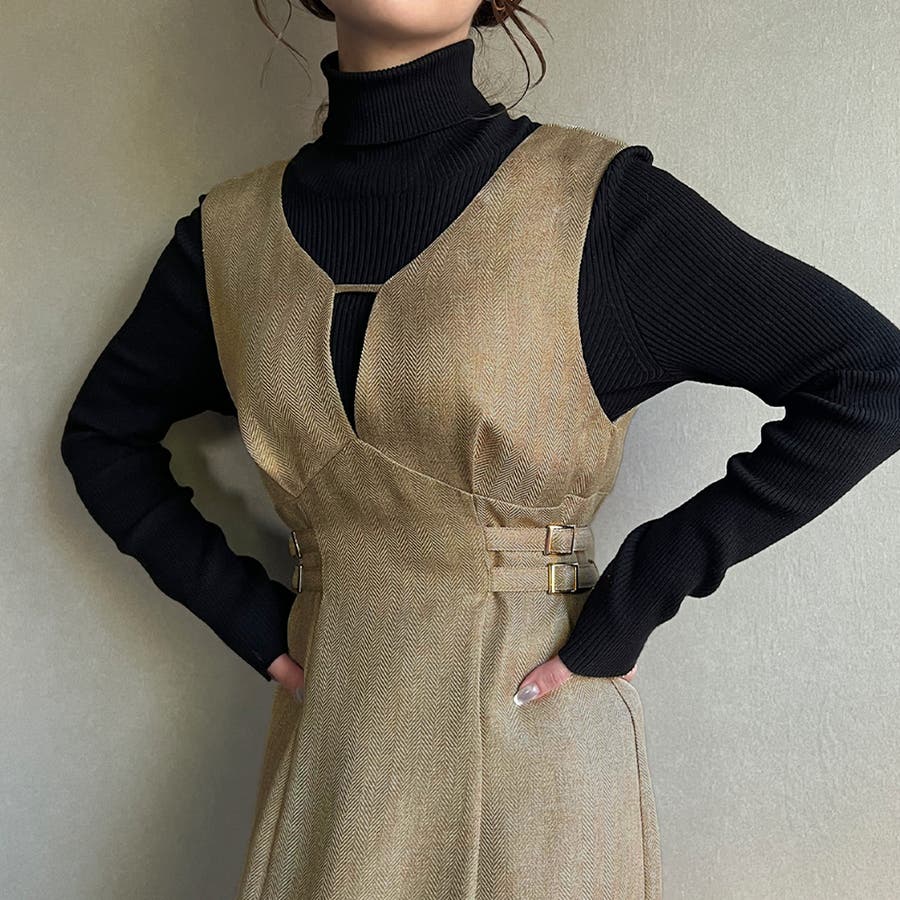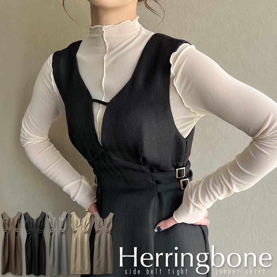 ヘリンボーンサイドベルトタイトジャンパースカート
