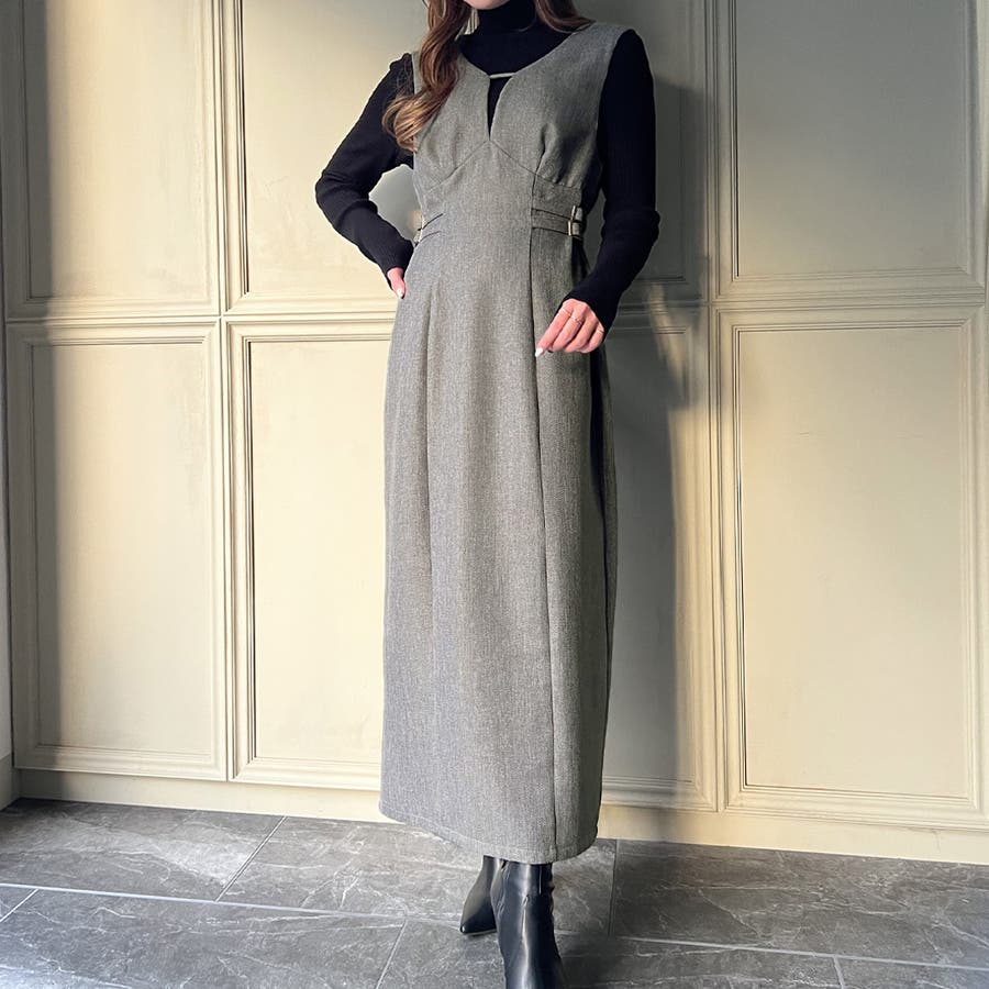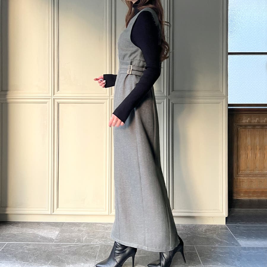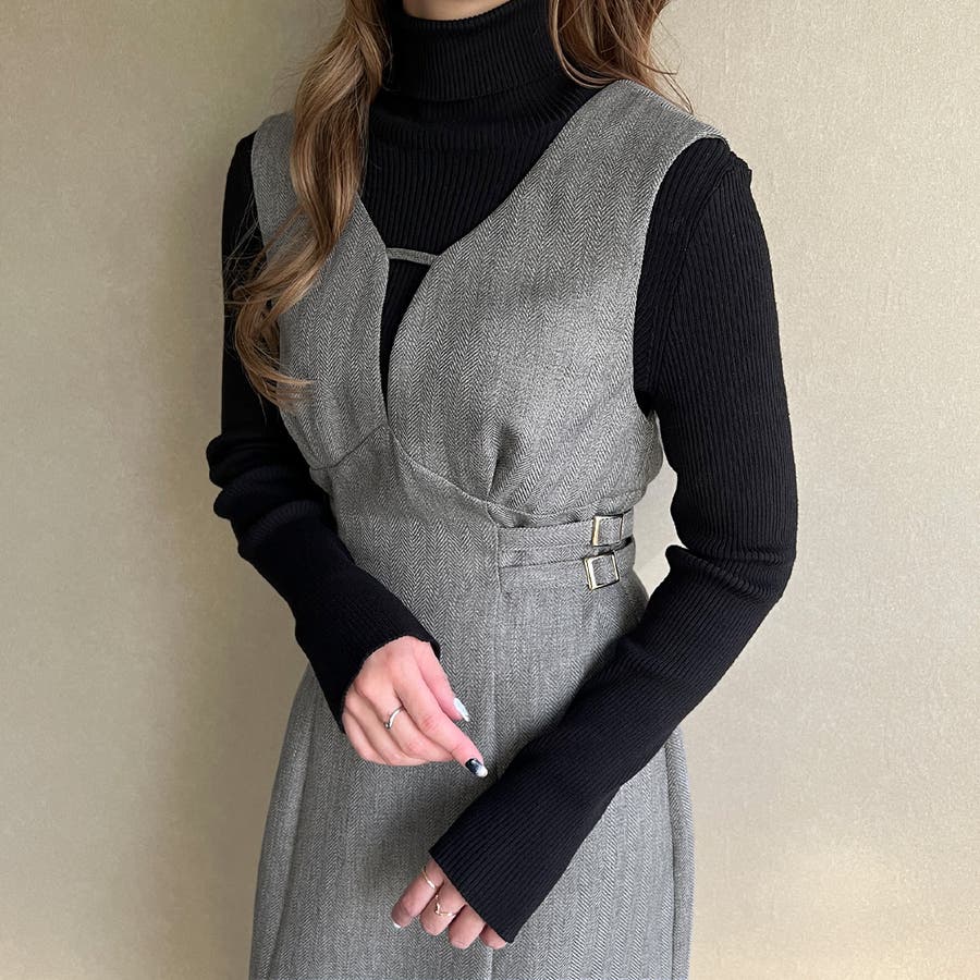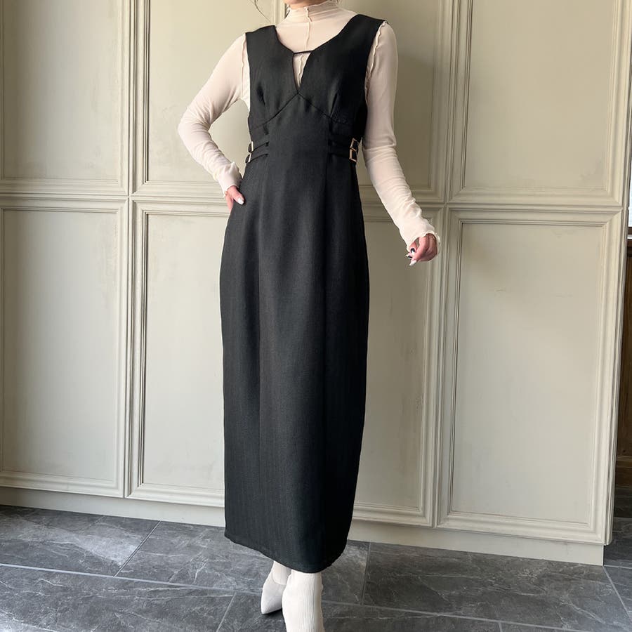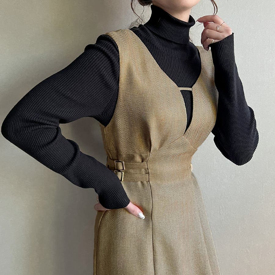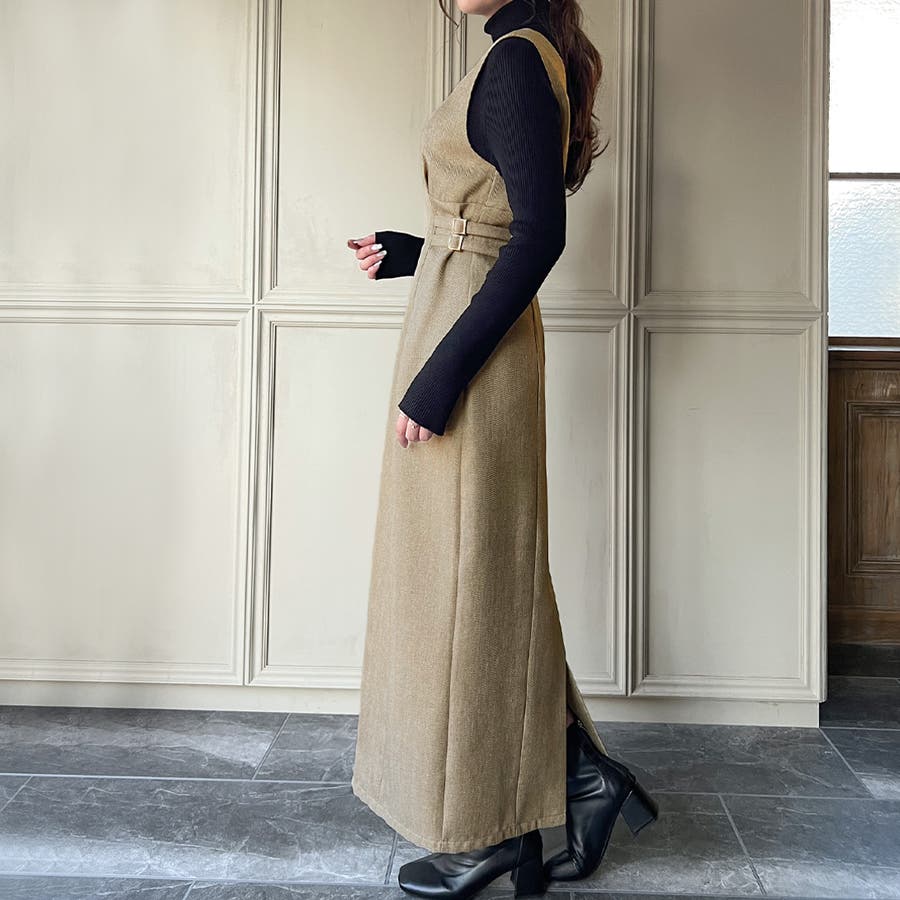 ヘリンボーンサイドベルトタイトジャンパースカート