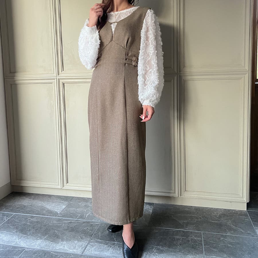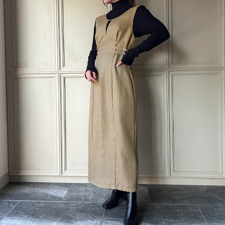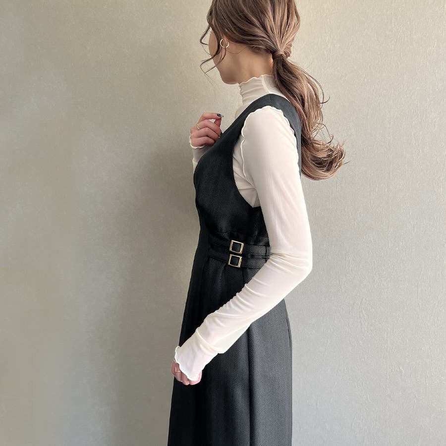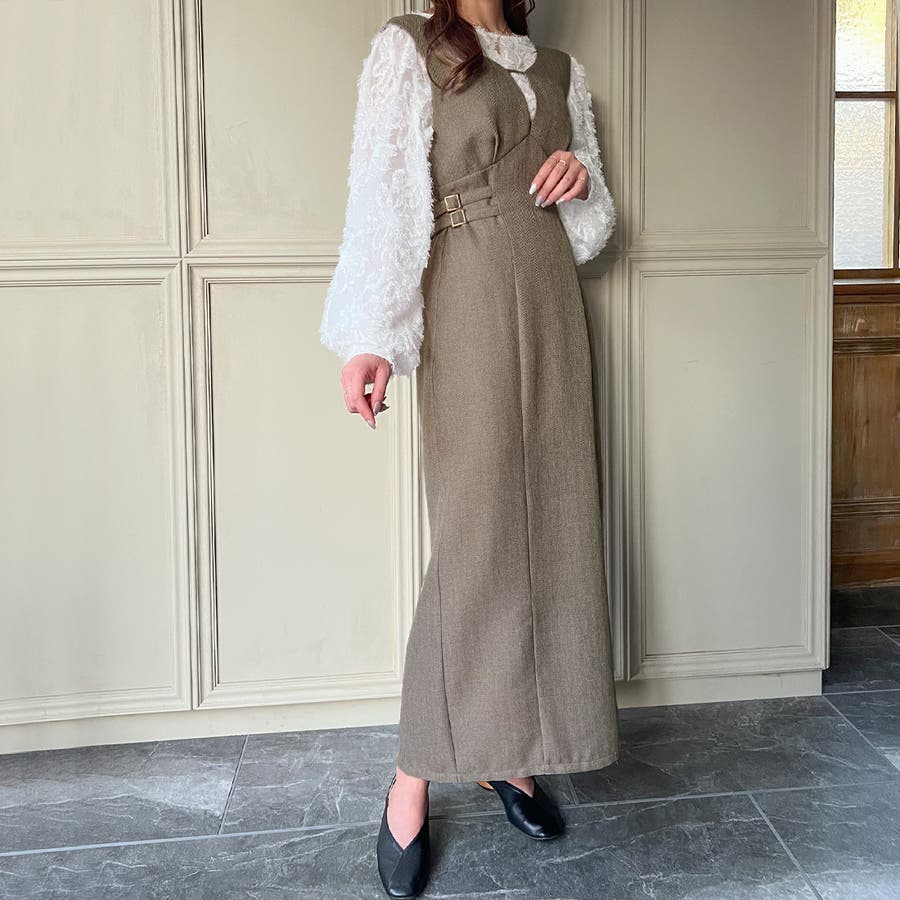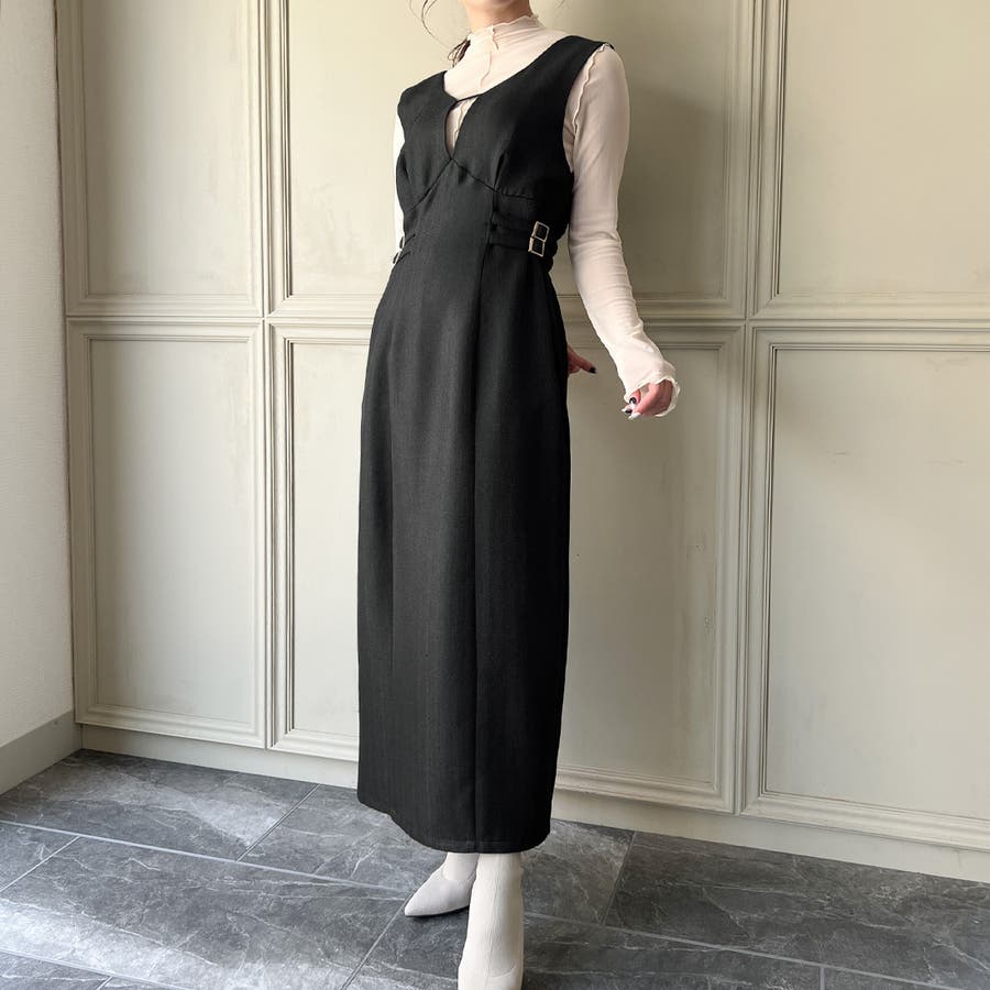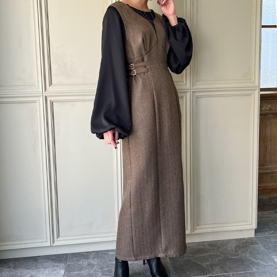 ヘリンボーンサイドベルトタイトジャンパースカート