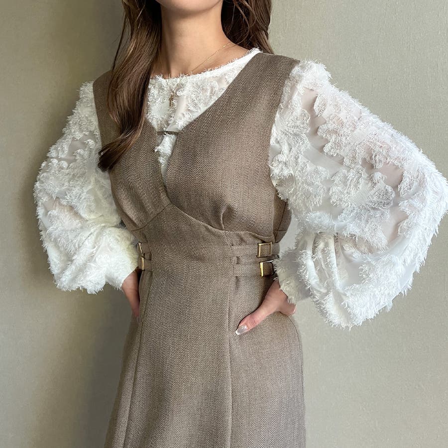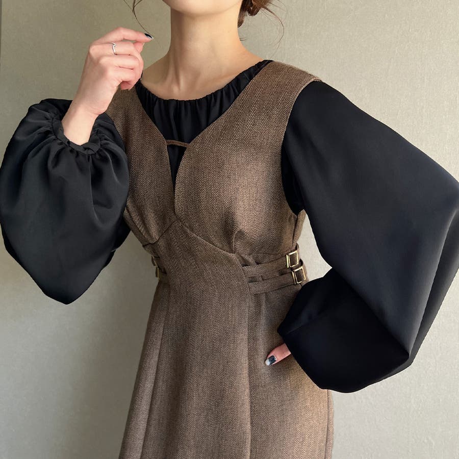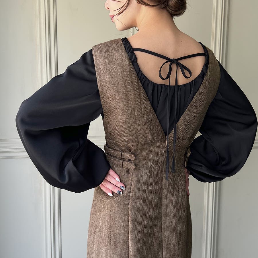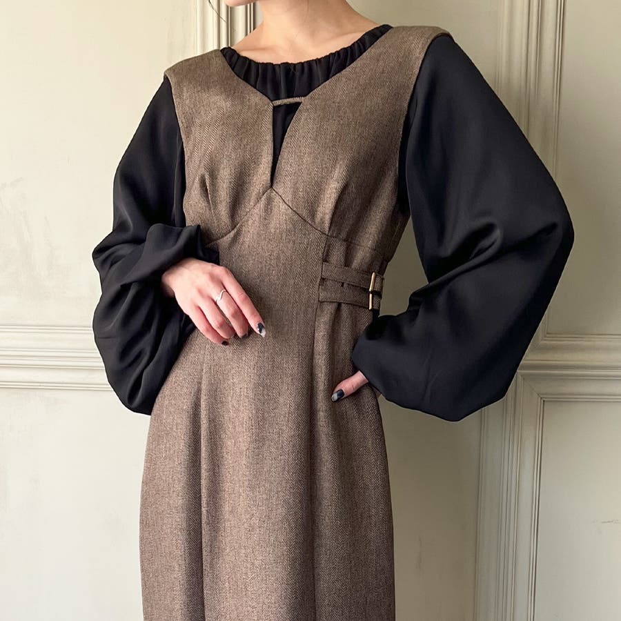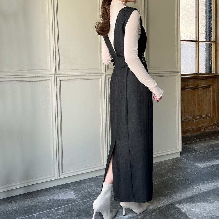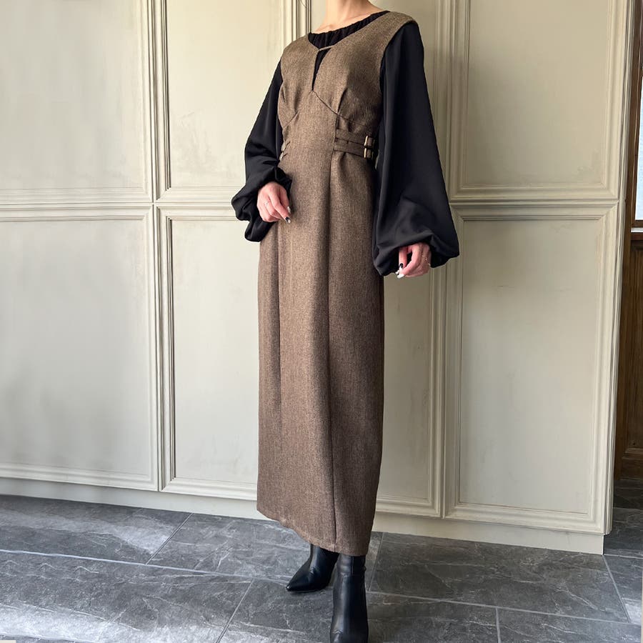 ヘリンボーンサイドベルトタイトジャンパースカート