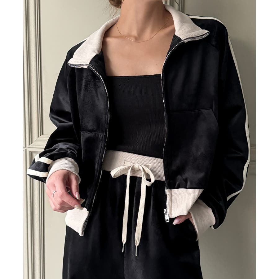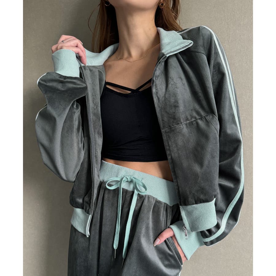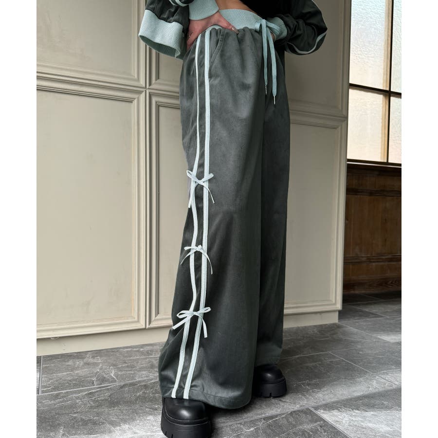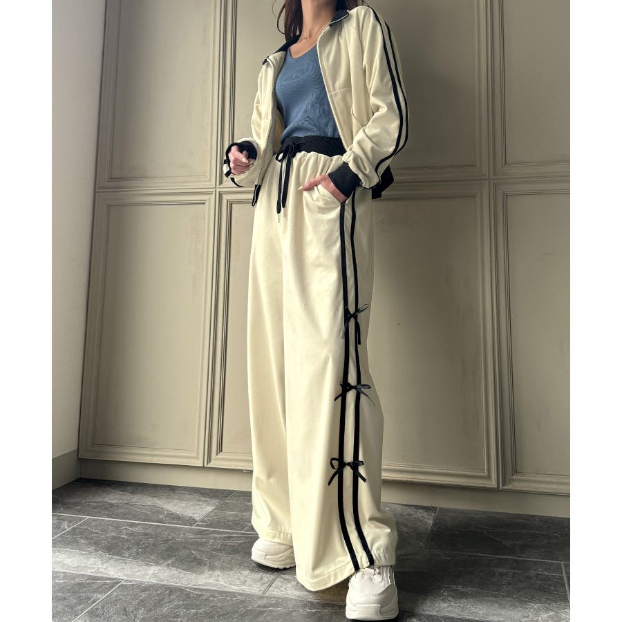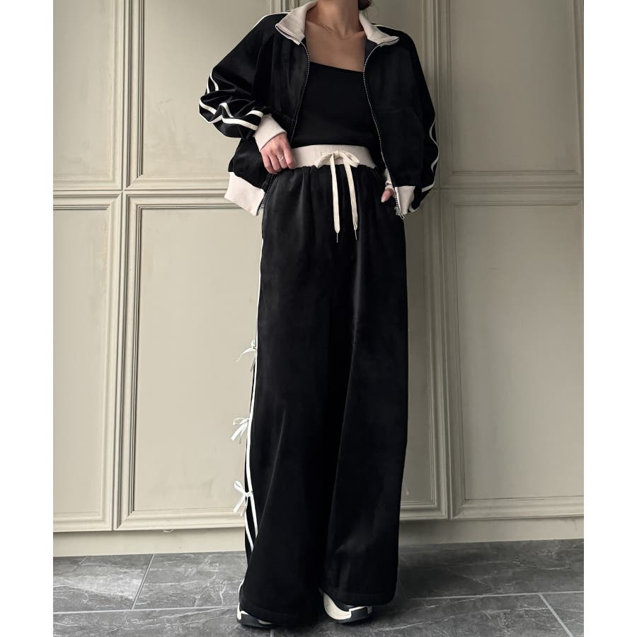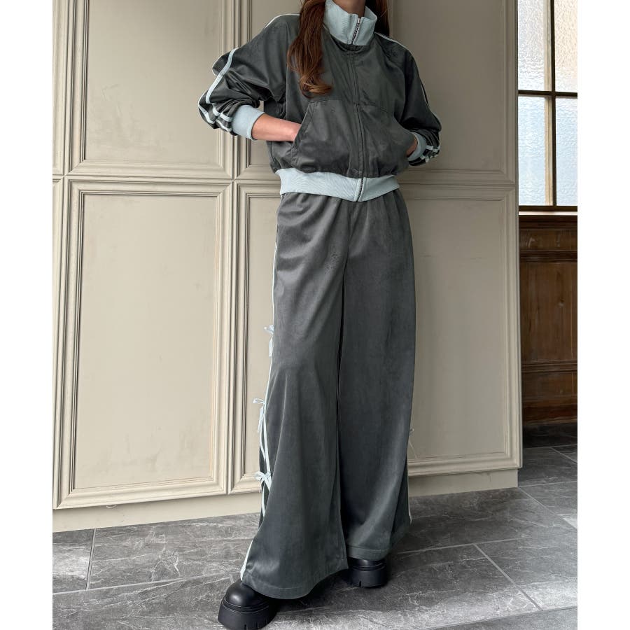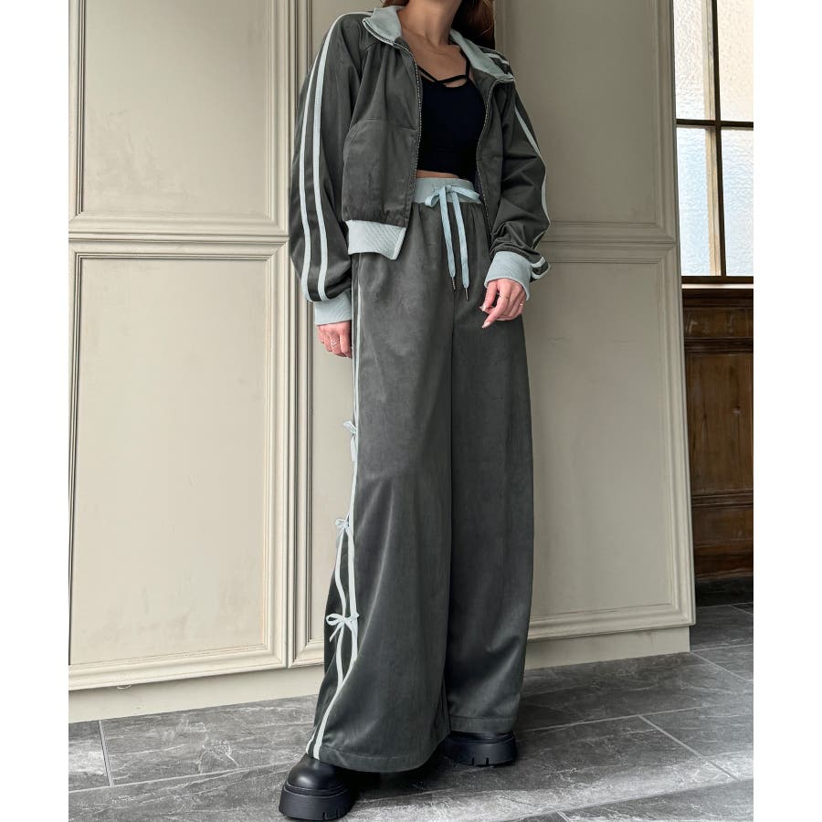 【チャコール】トラックジャケット+リボンパンツ セットアップ