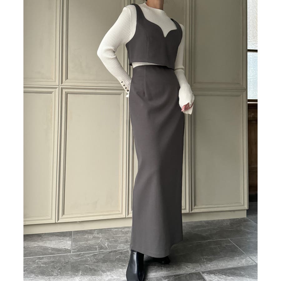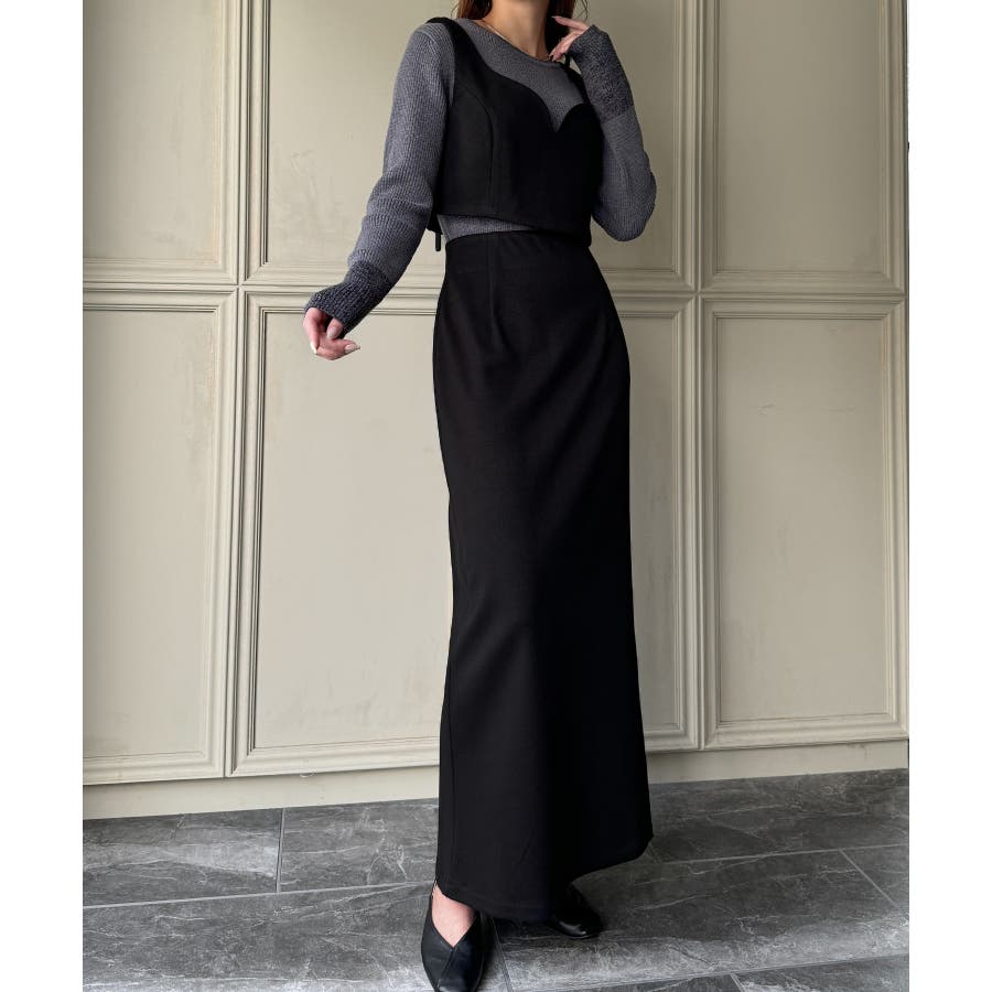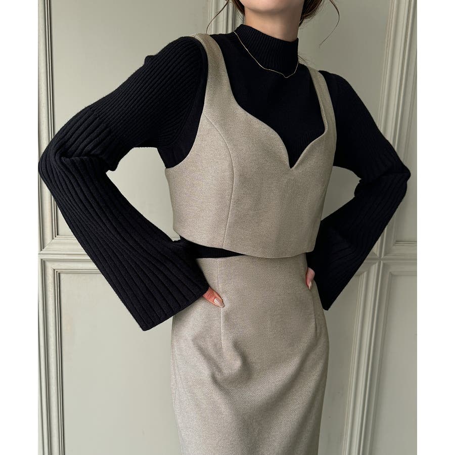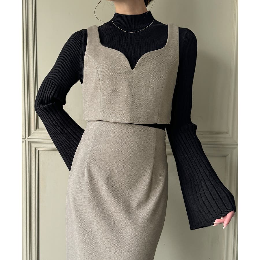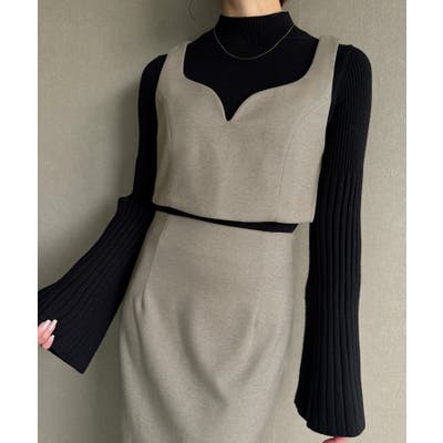 ウールライクビスチェ&タイトスカートSET【秋冬もっちり素材】
