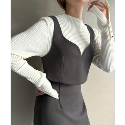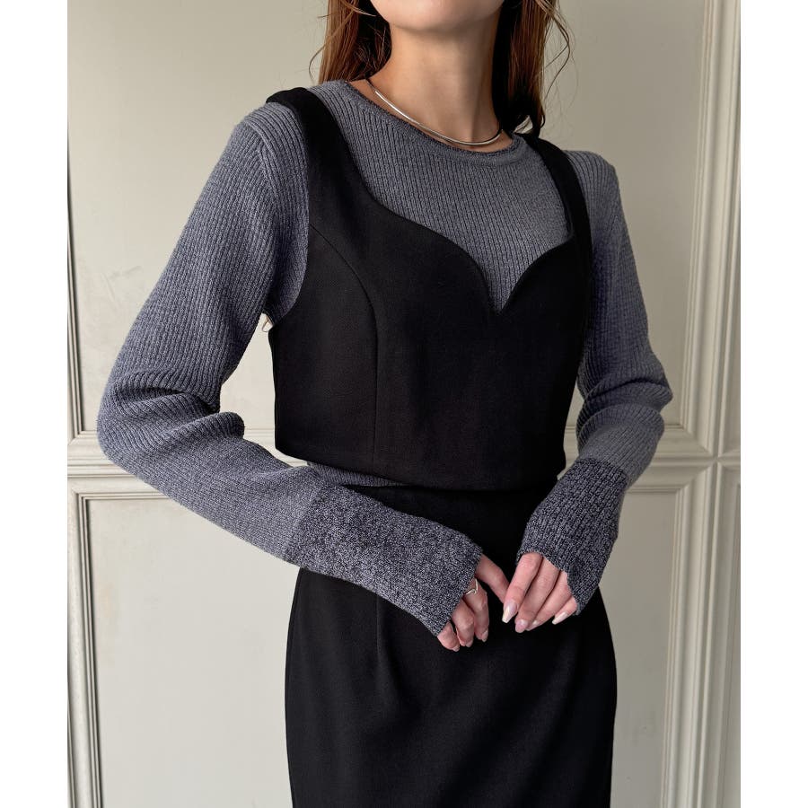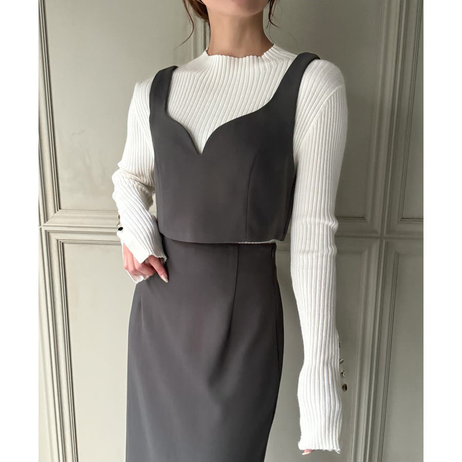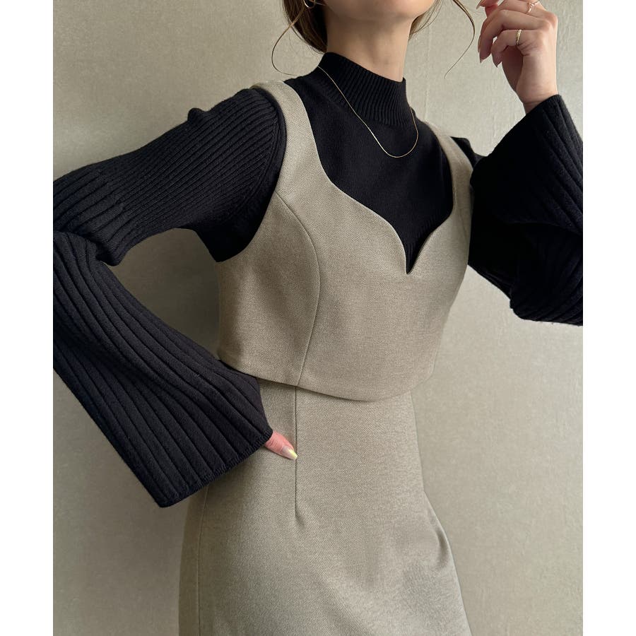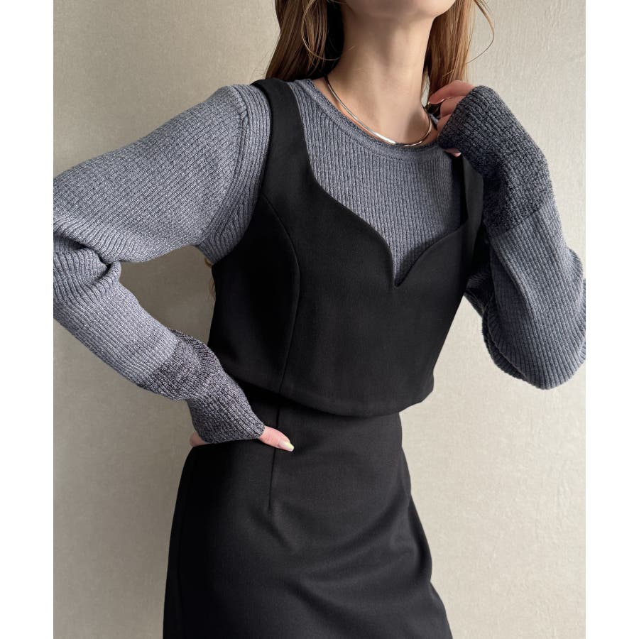 ウールライクビスチェ&タイトスカートSET【秋冬もっちり素材】