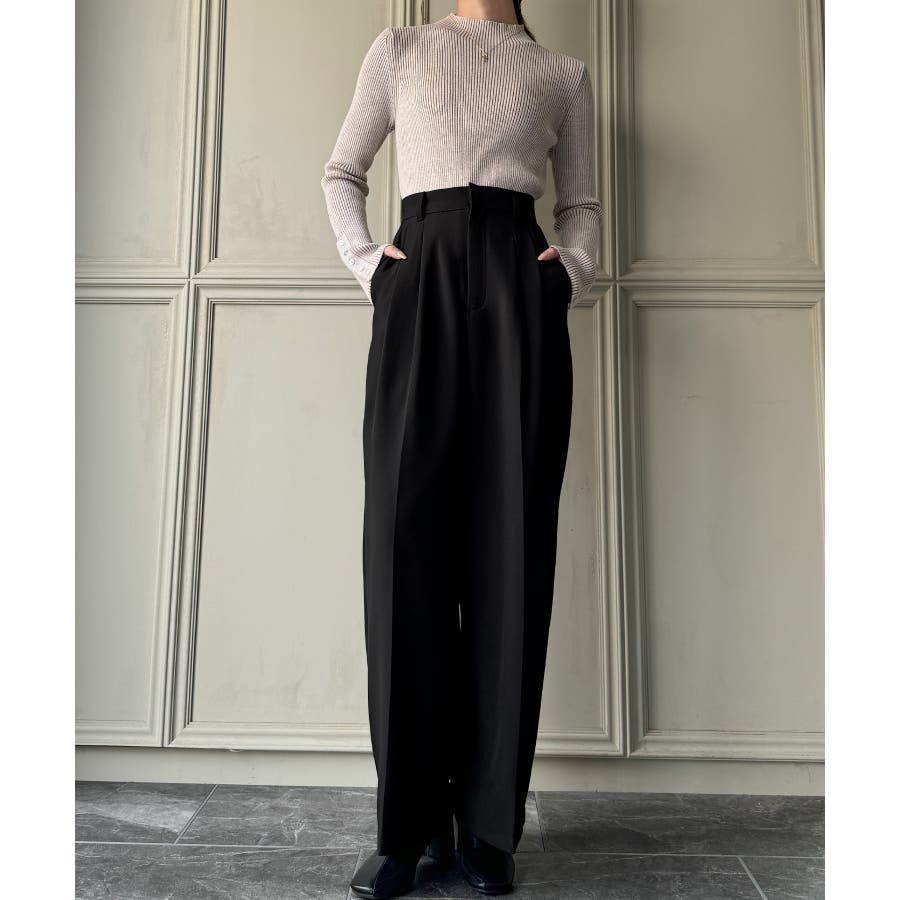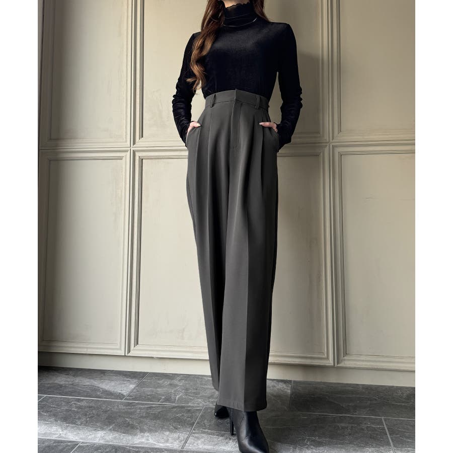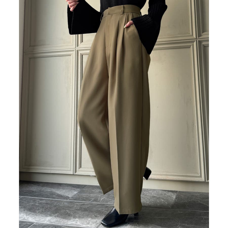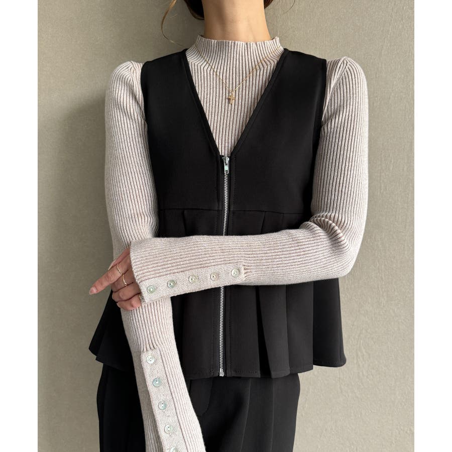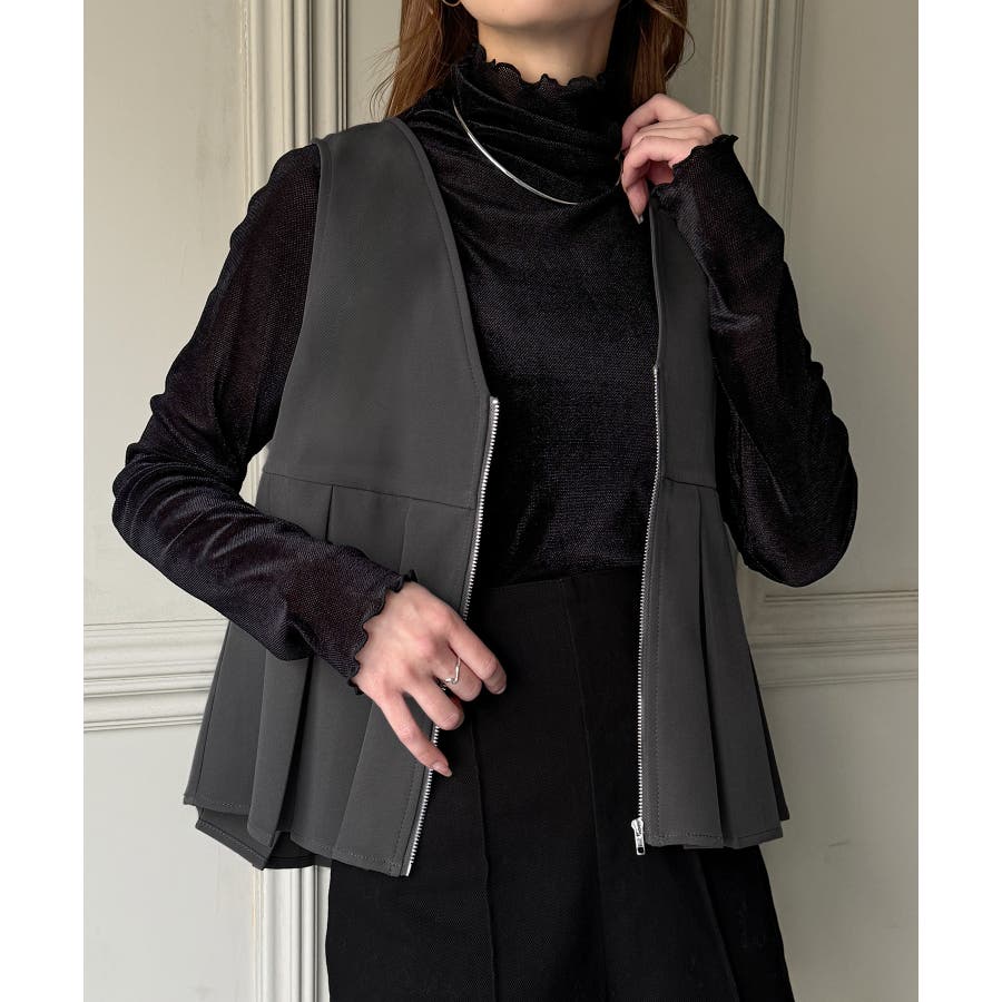 フロントジッププリーツペプラムジレ+タックワイドパンツセットアップ