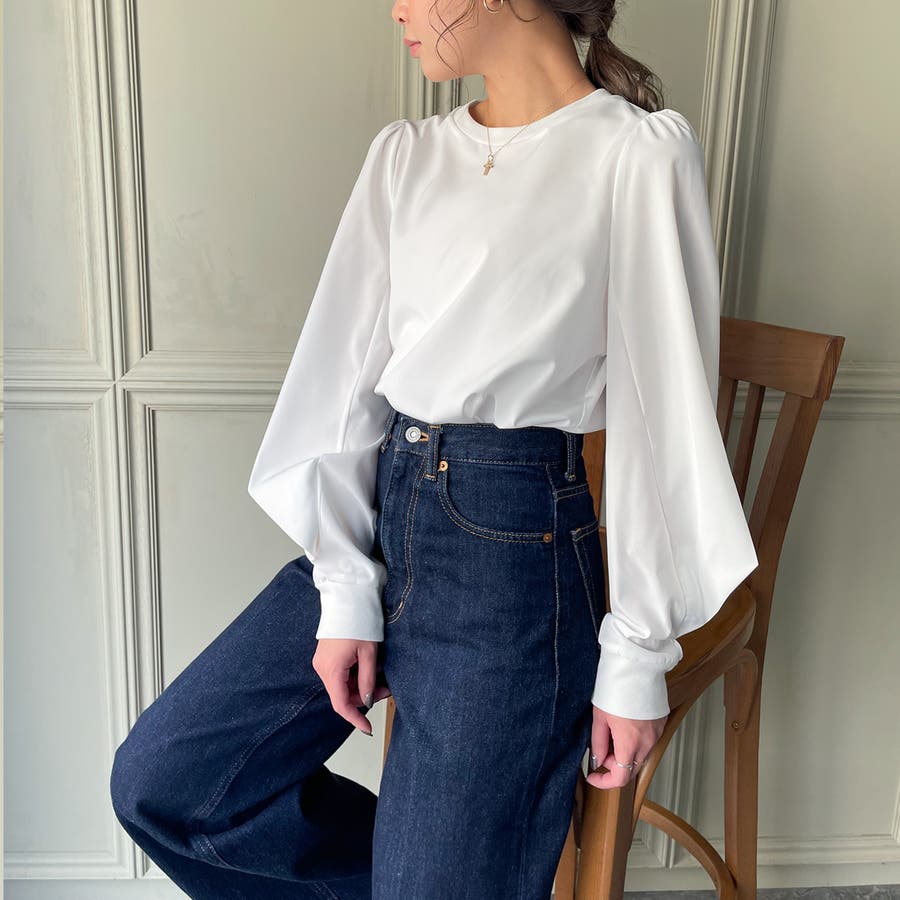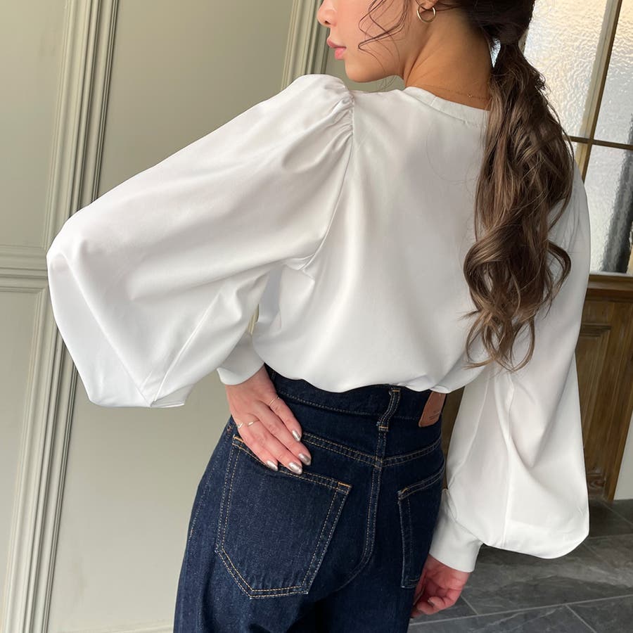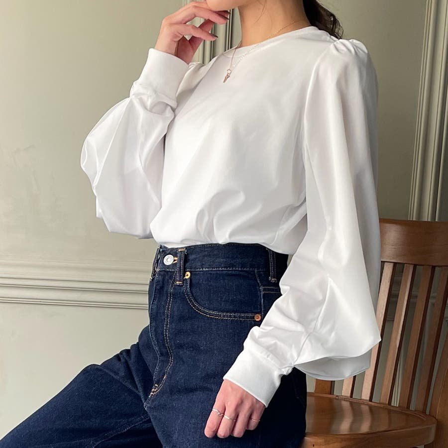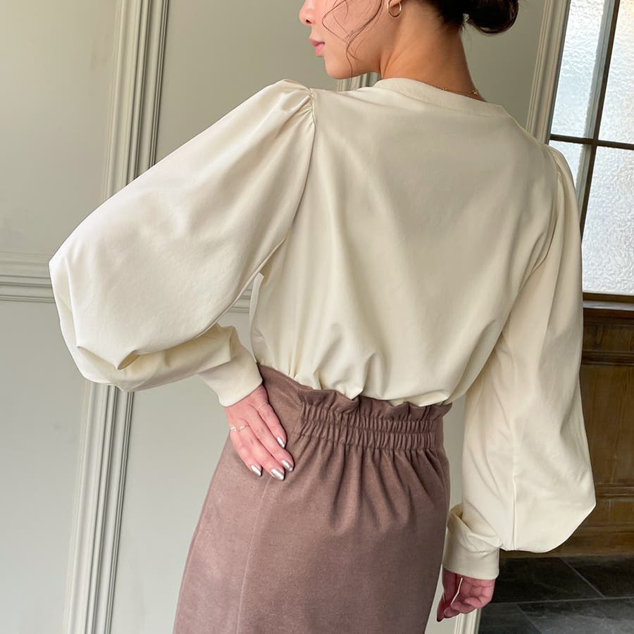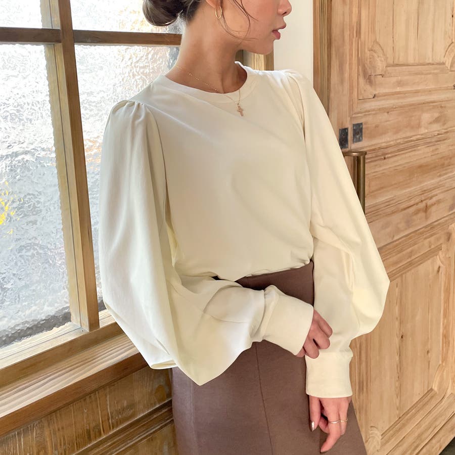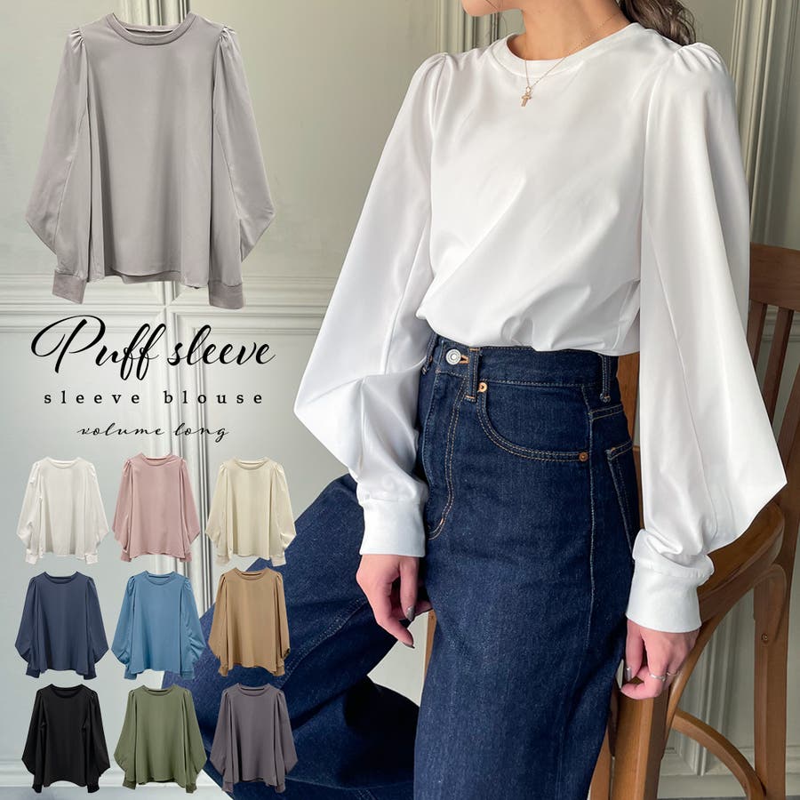 【アイボリー】パフスリーブボリューム長袖ブラウス