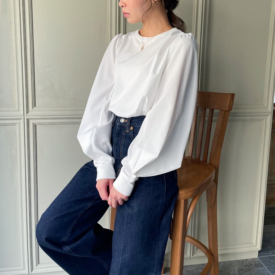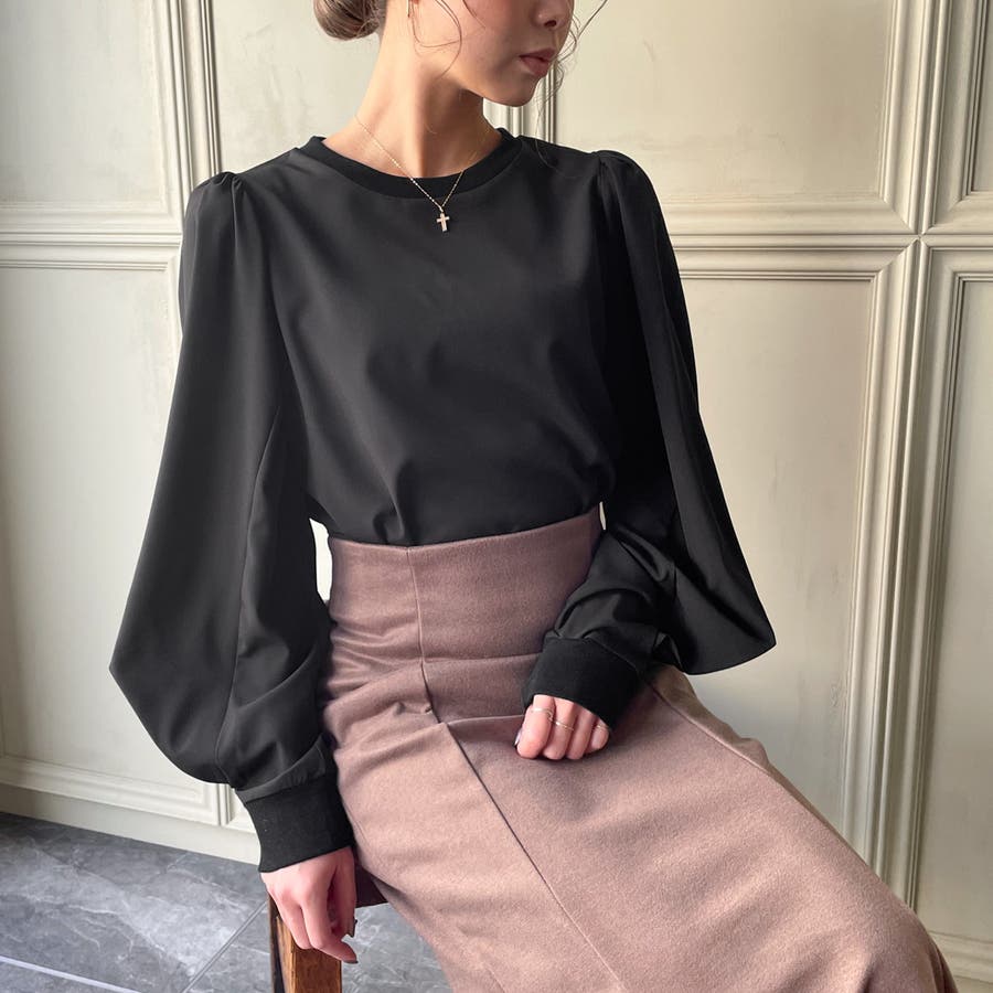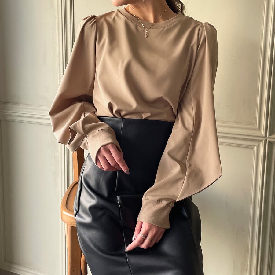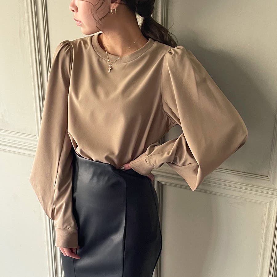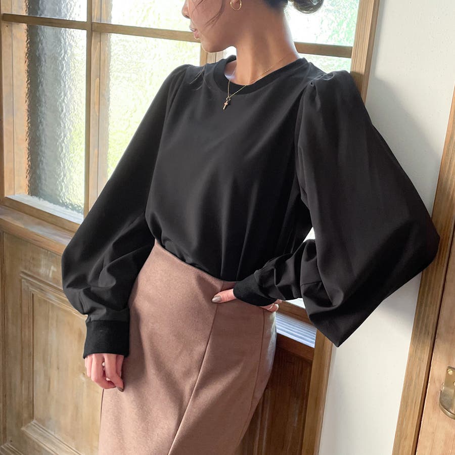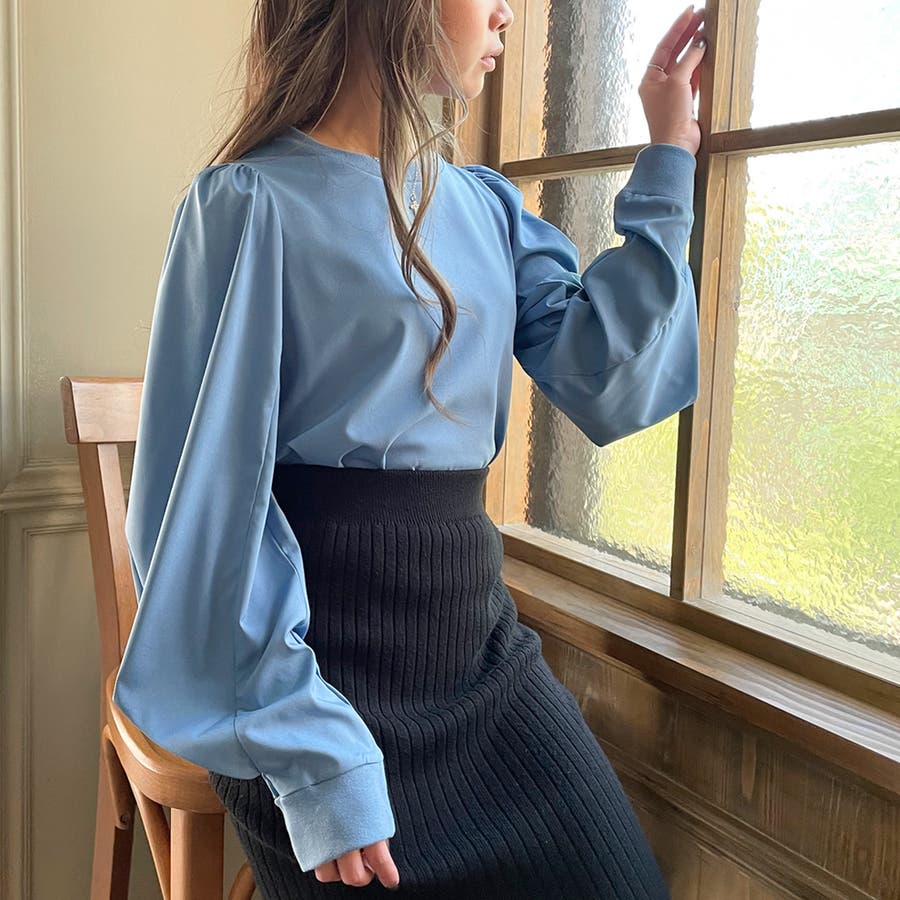 【アイボリー】パフスリーブボリューム長袖ブラウス