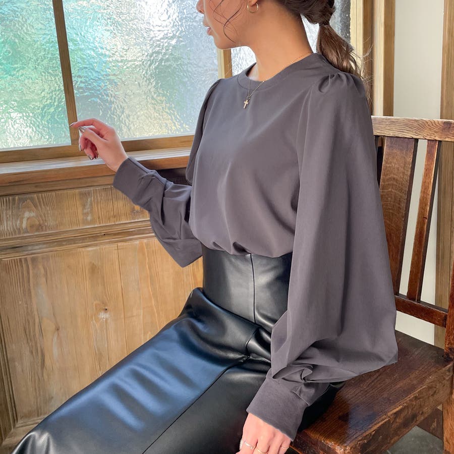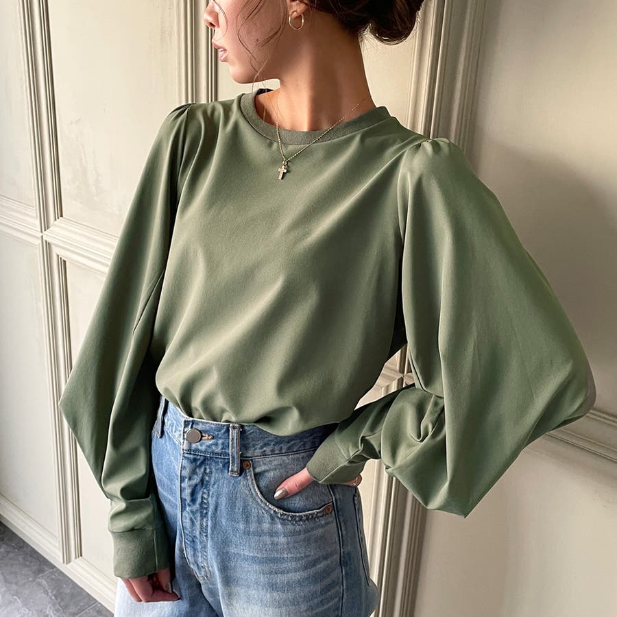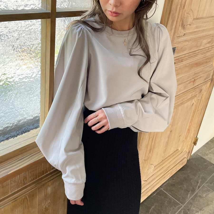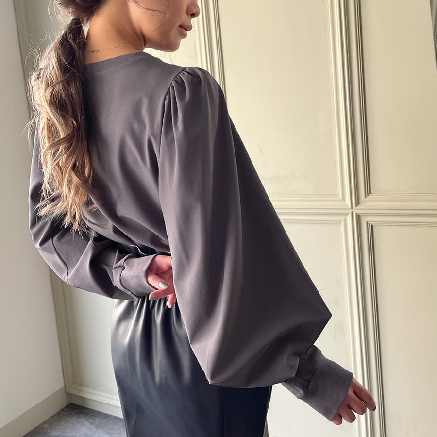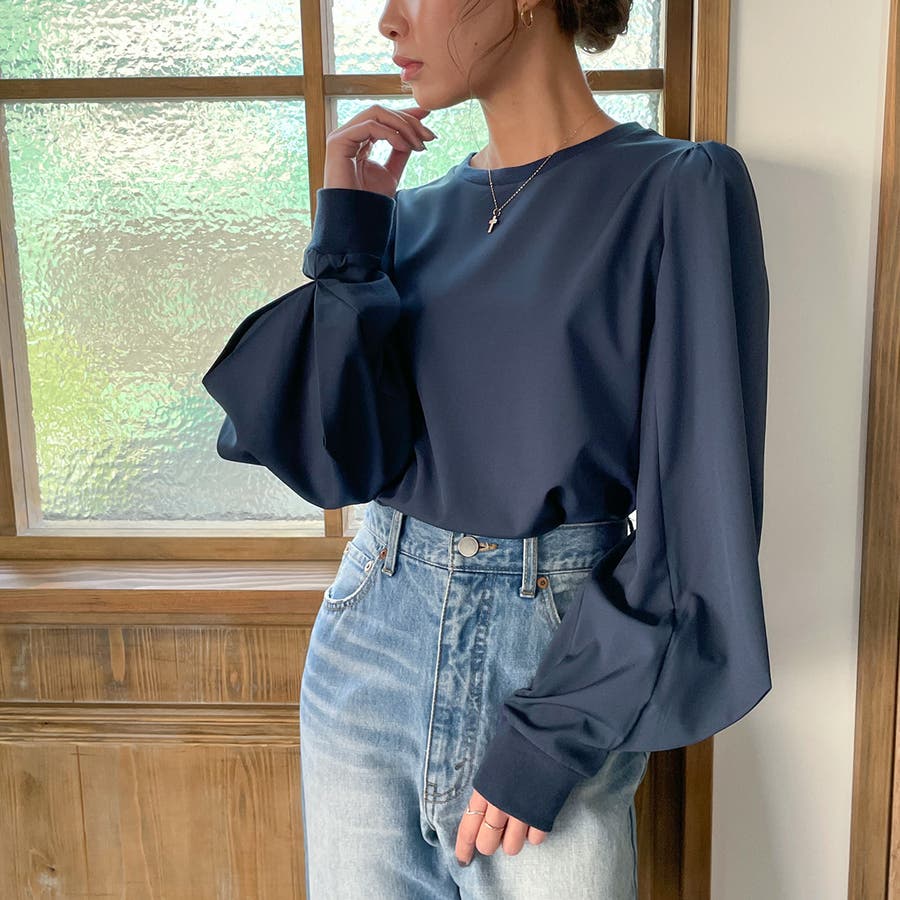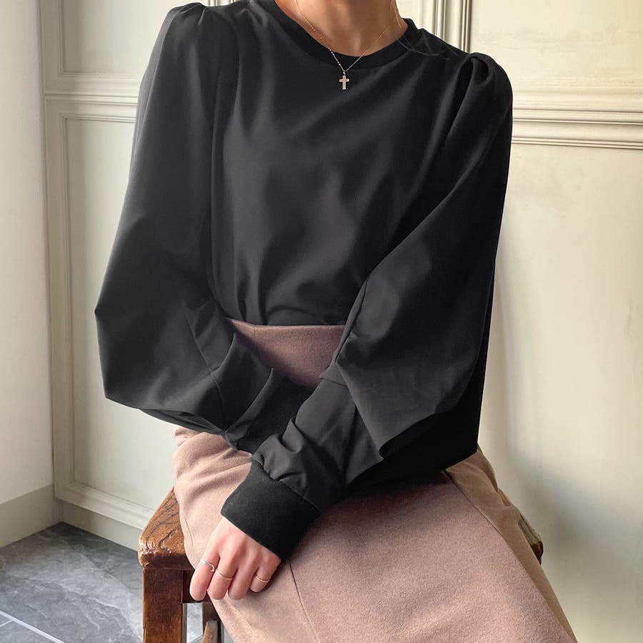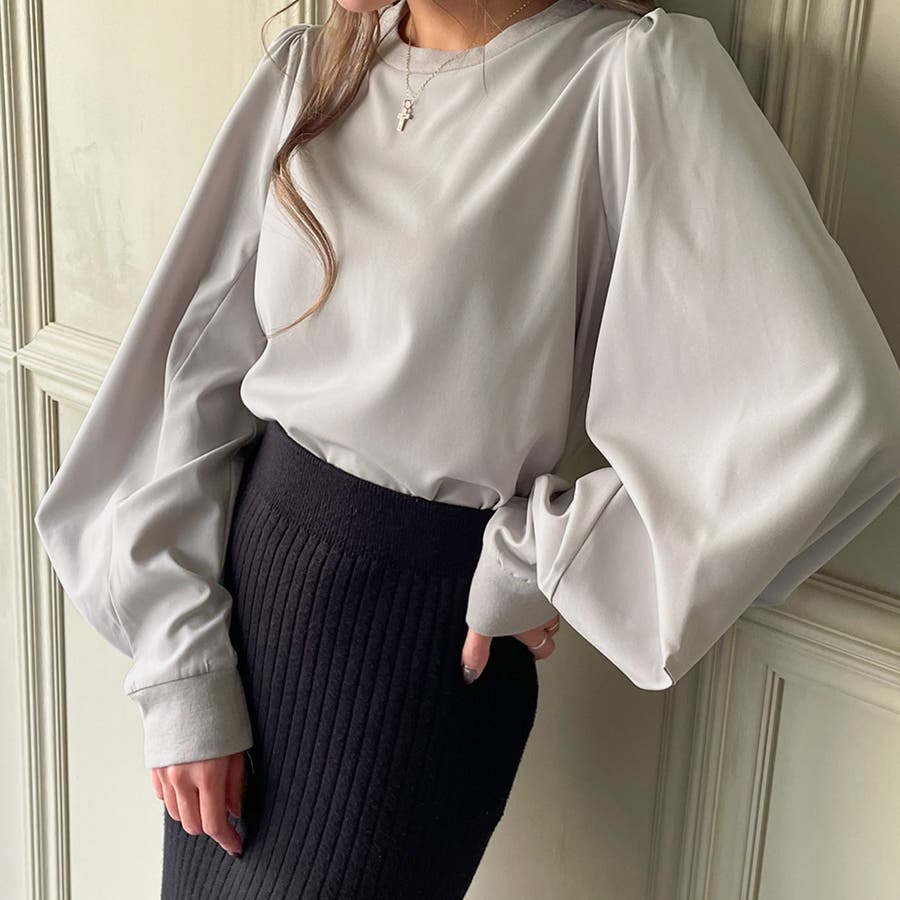 【アイボリー】パフスリーブボリューム長袖ブラウス