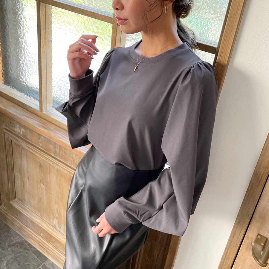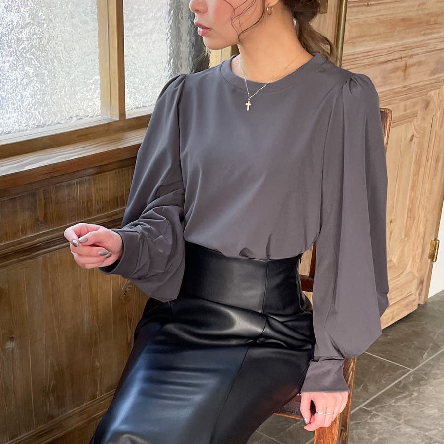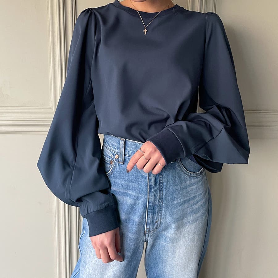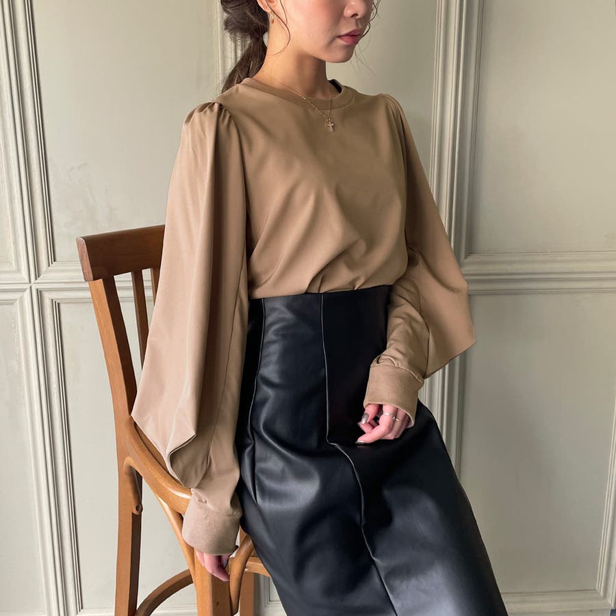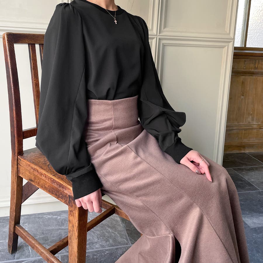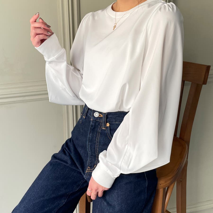 【アイボリー】パフスリーブボリューム長袖ブラウス