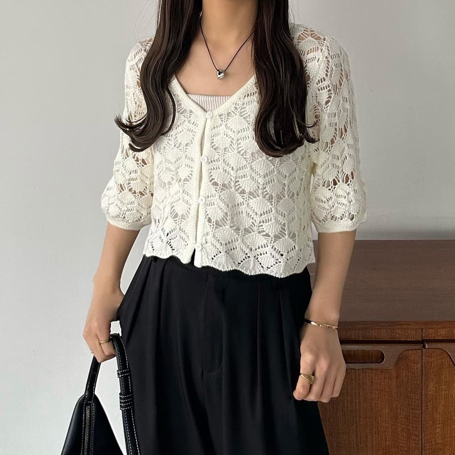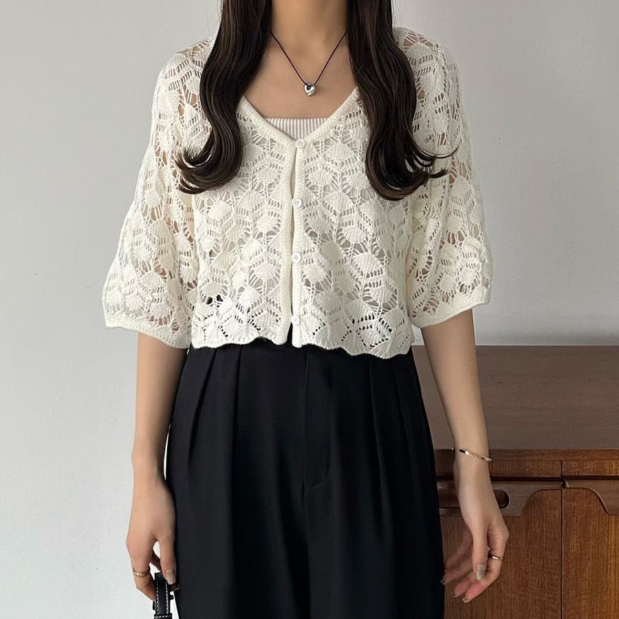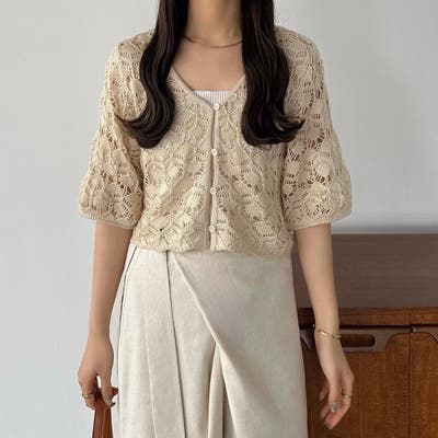 callautia 半袖クロシェニット