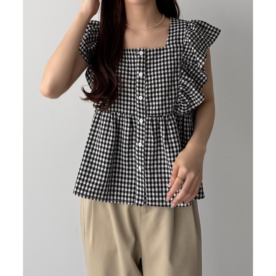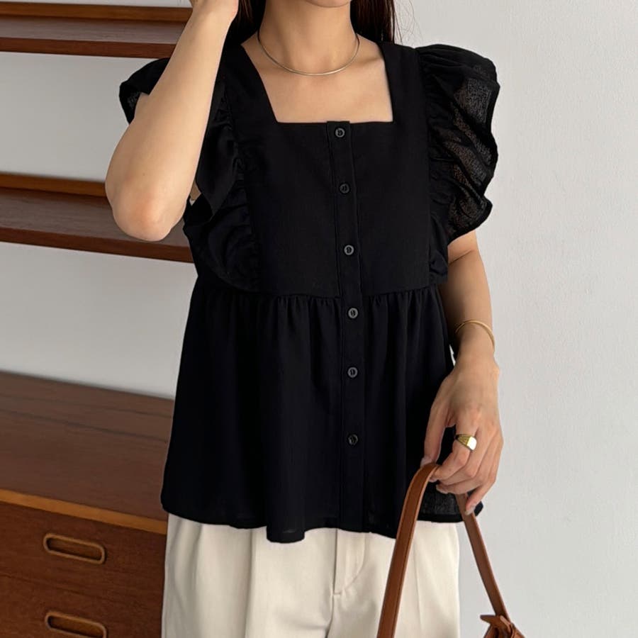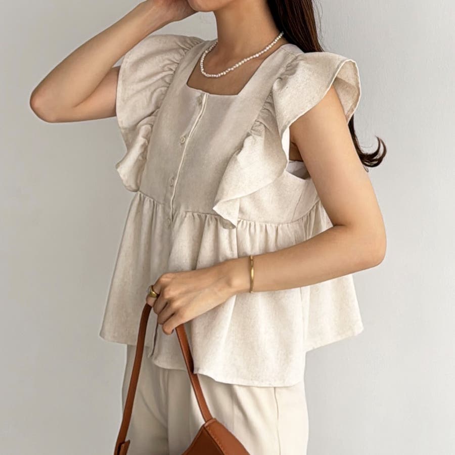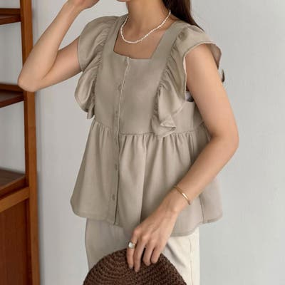 callautia フリルノースリーブブラウス