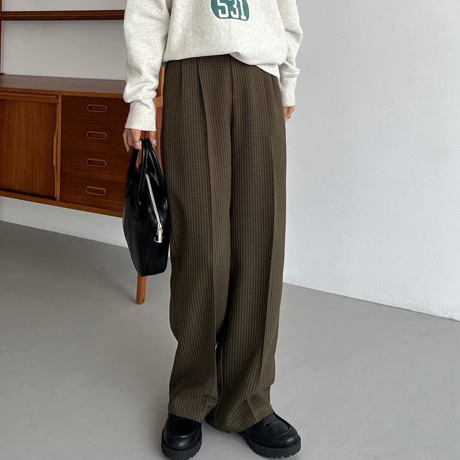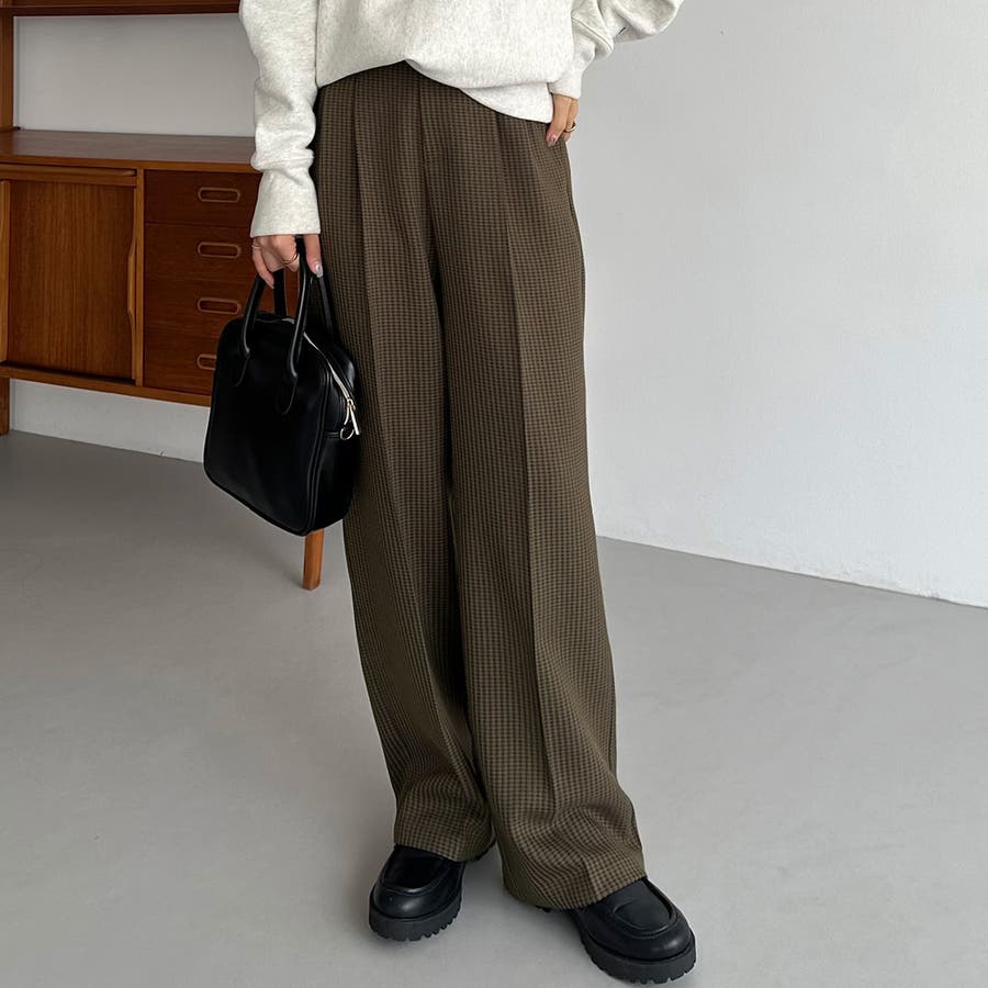 callautia チェックワイドスラックスパンツ