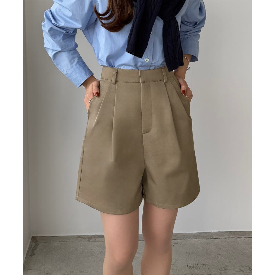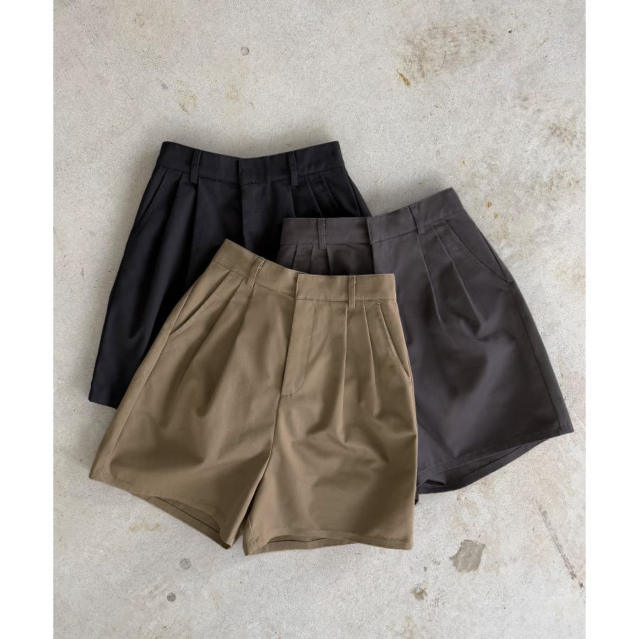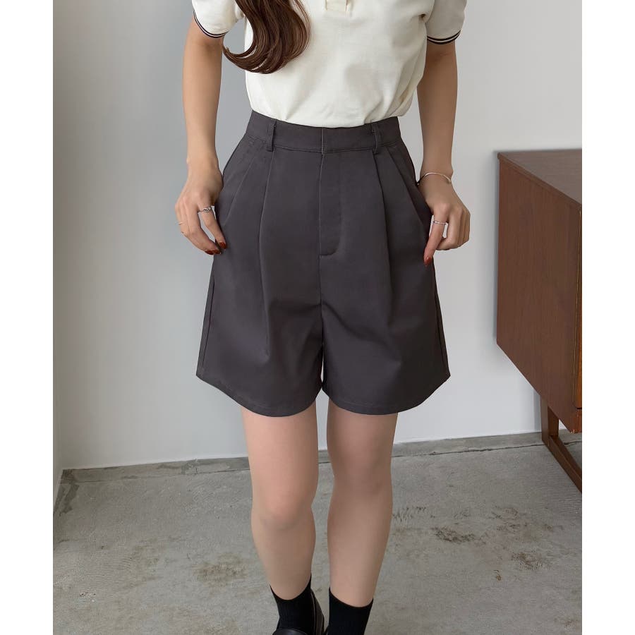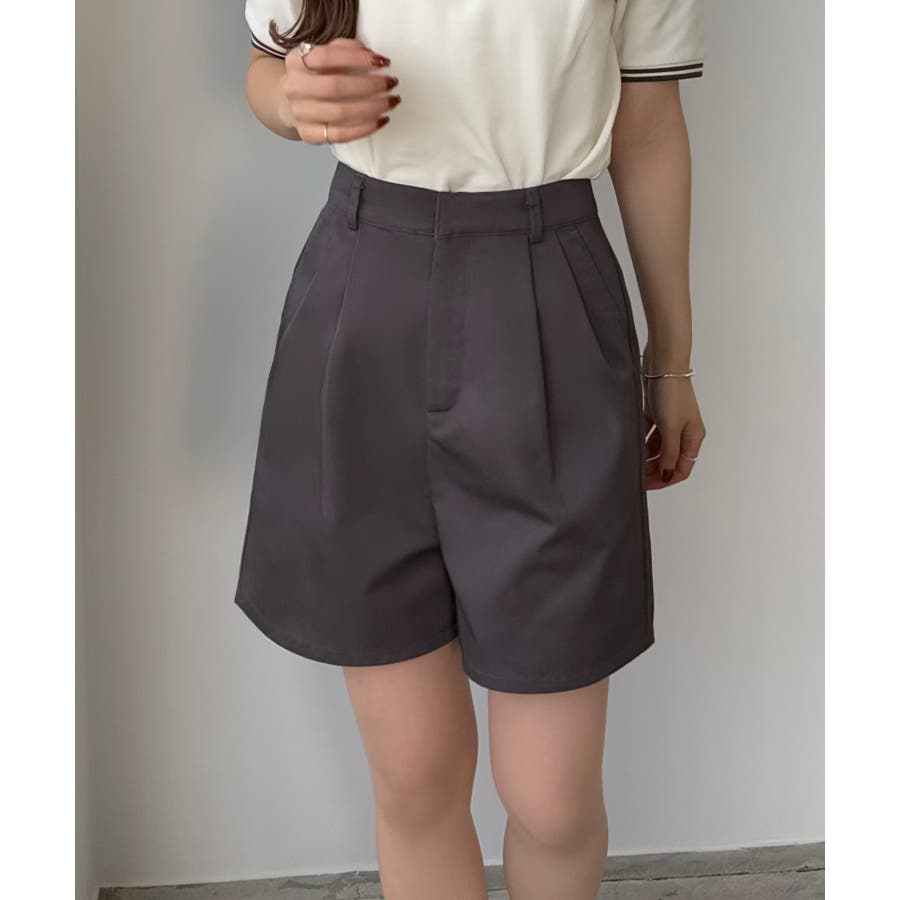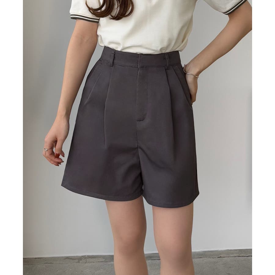【グレー】callautia ツイルツータックハイウエストショートハ?ンツ