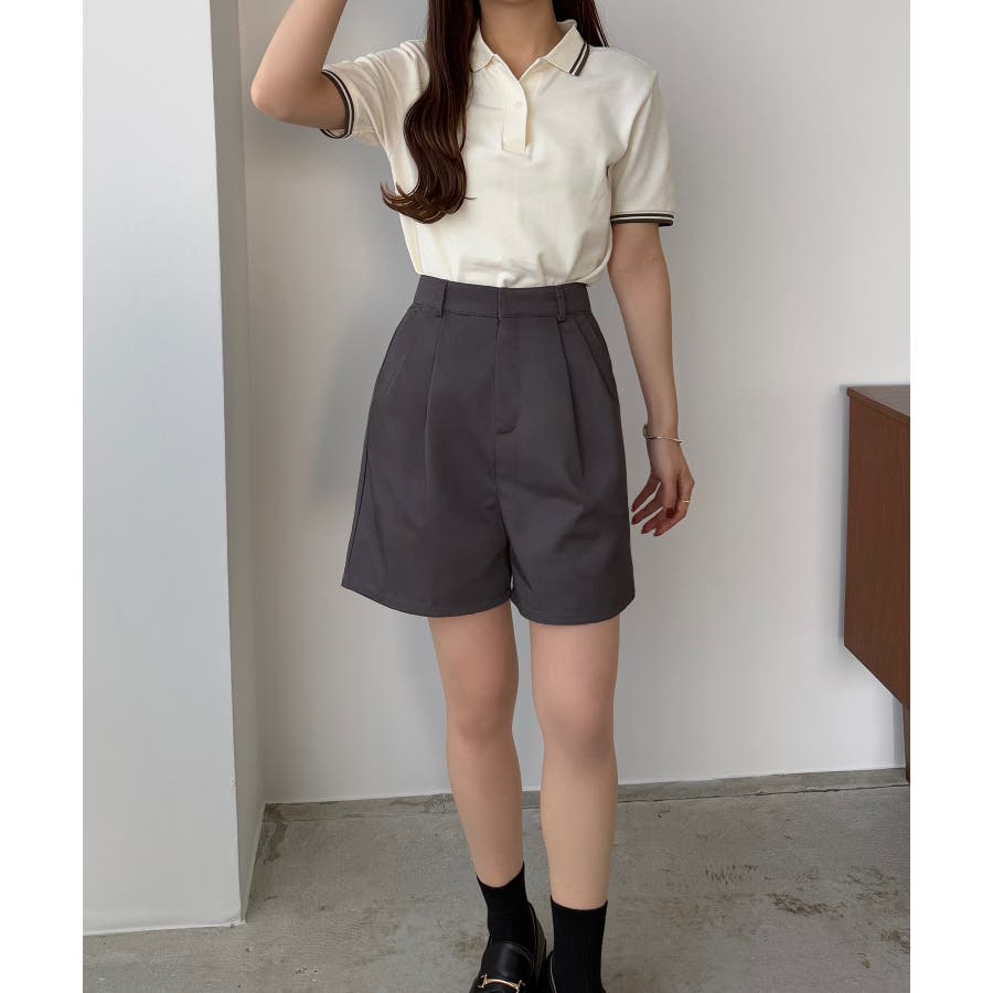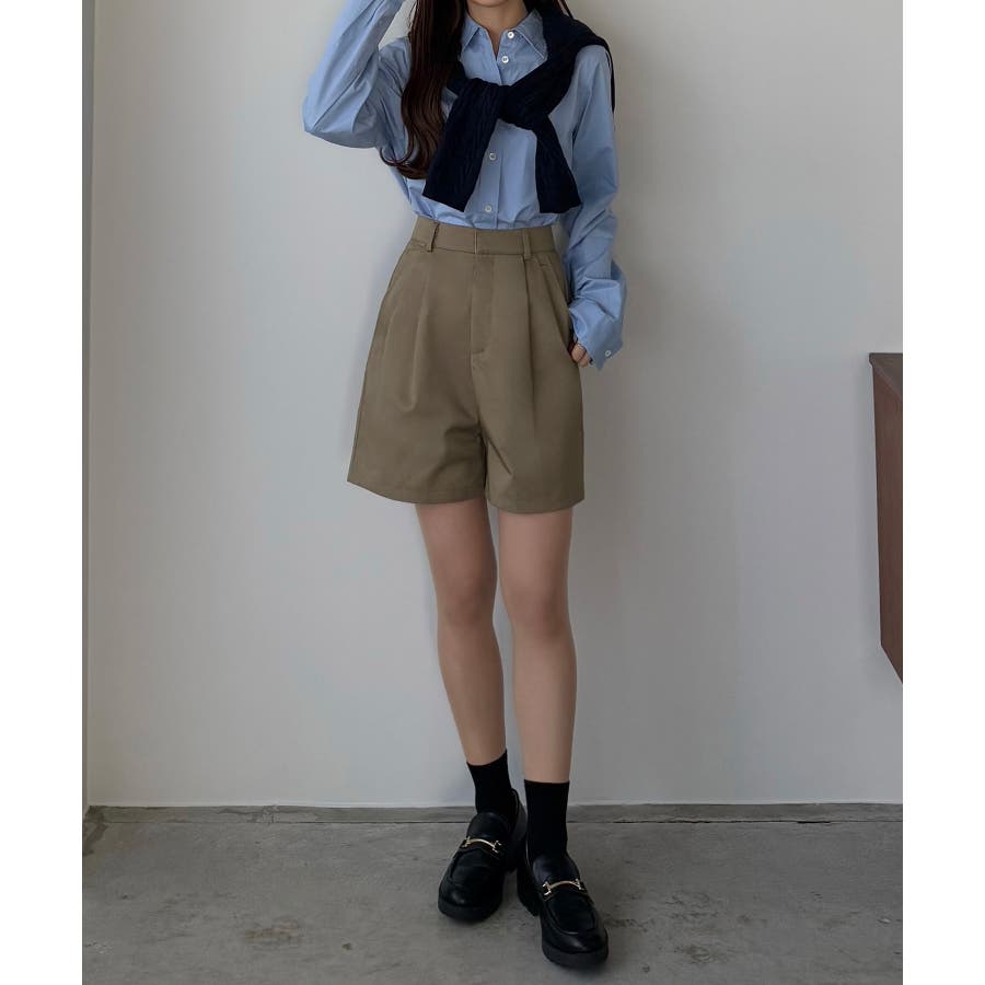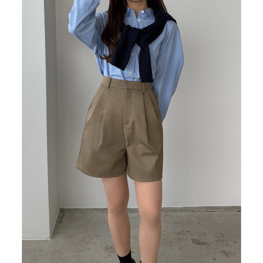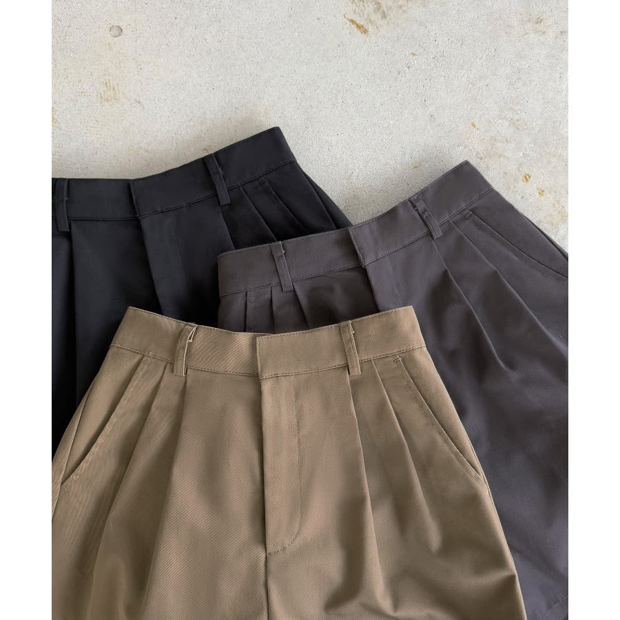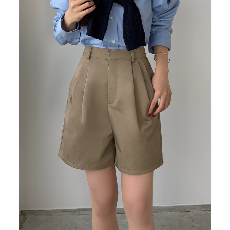 【グレー】callautia ツイルツータックハイウエストショートハ?ンツ