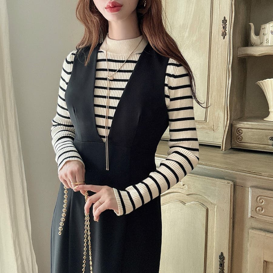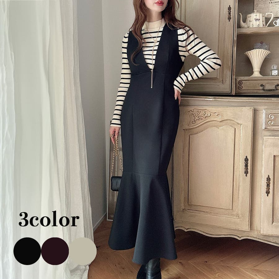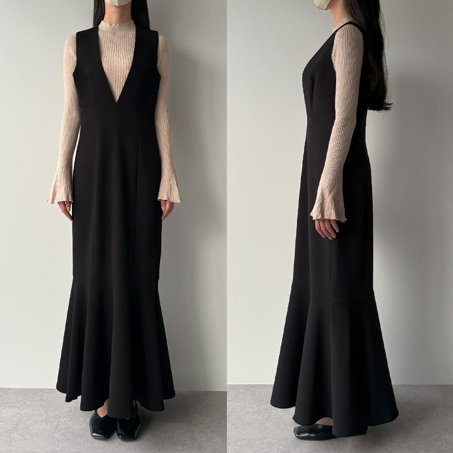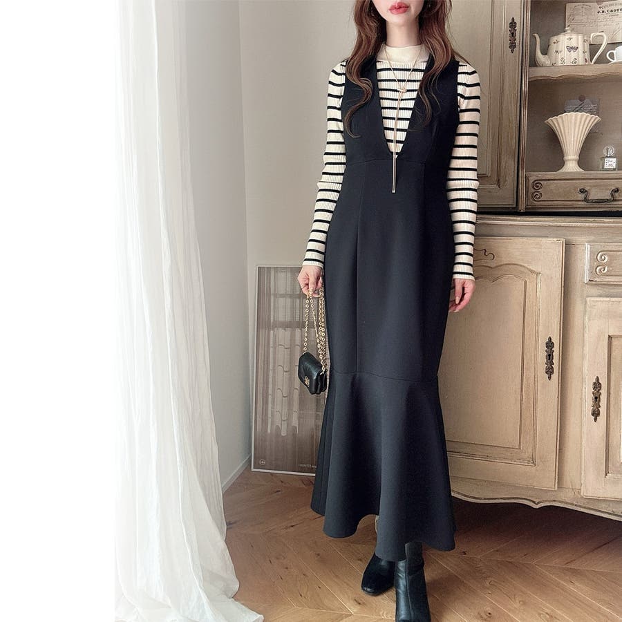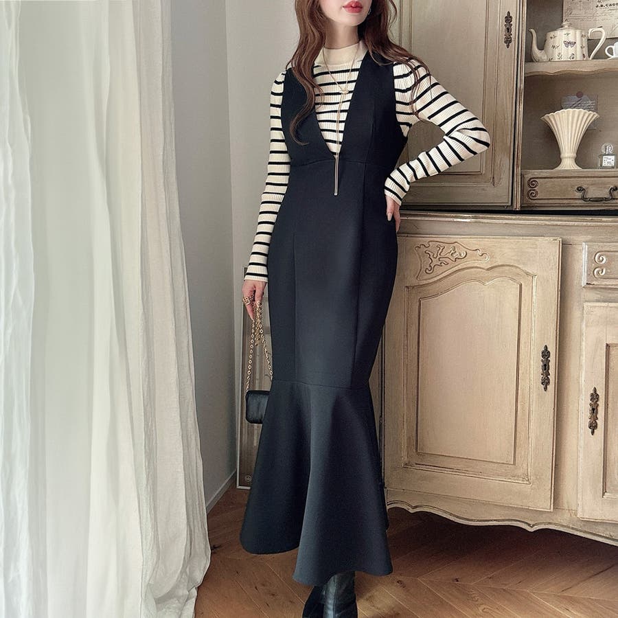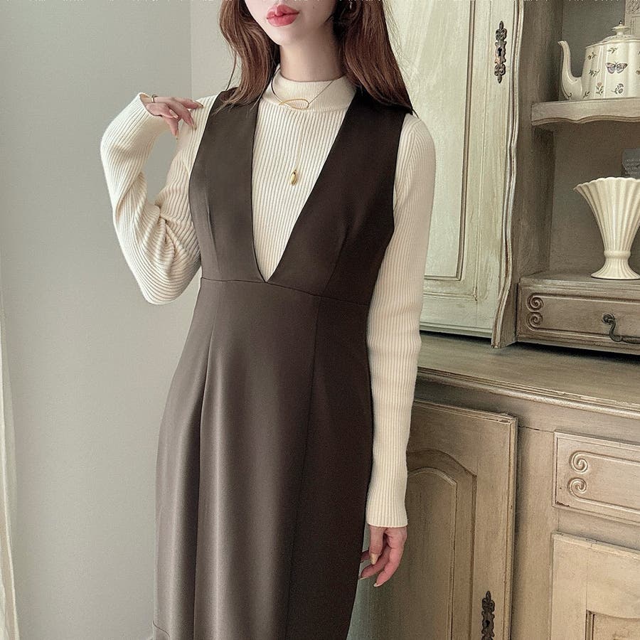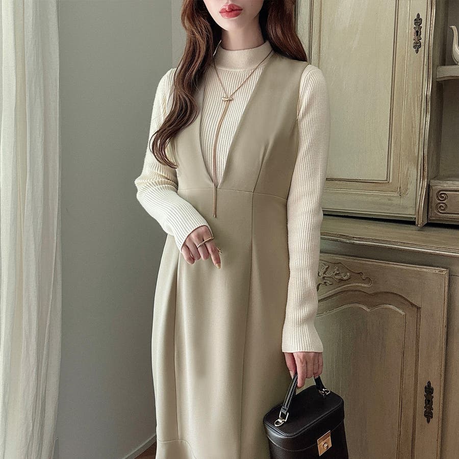 【ダスティピンク】Meiru 深Vネックジャンパーマーメイドスカート