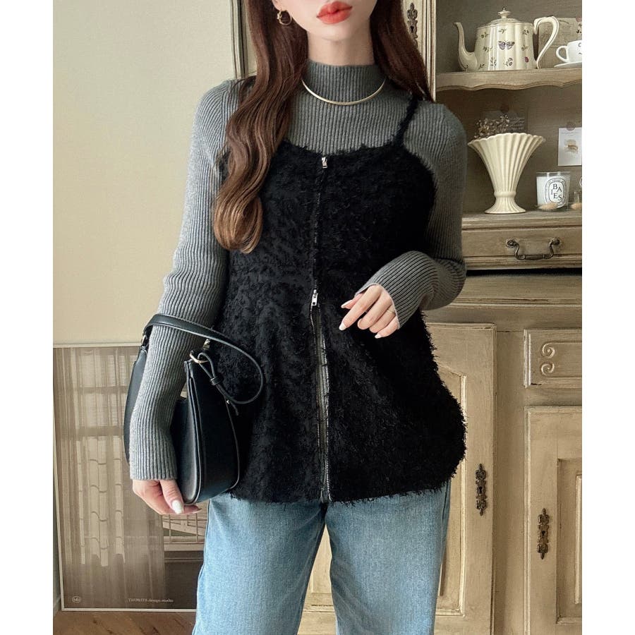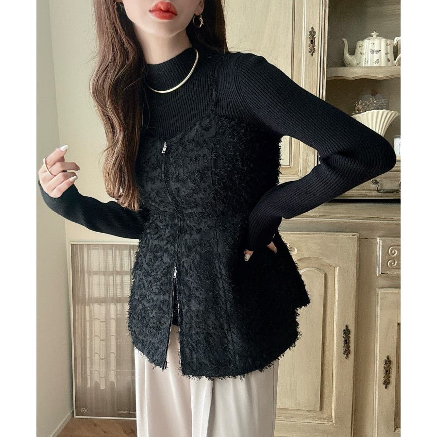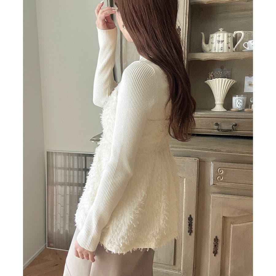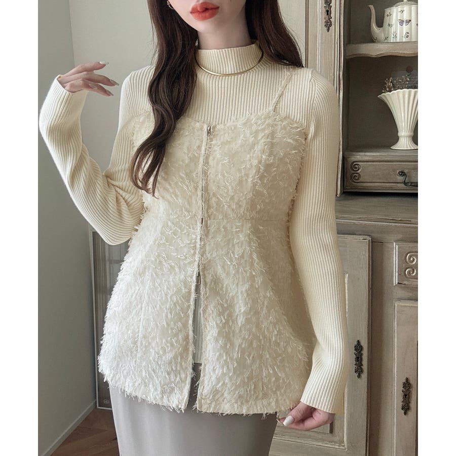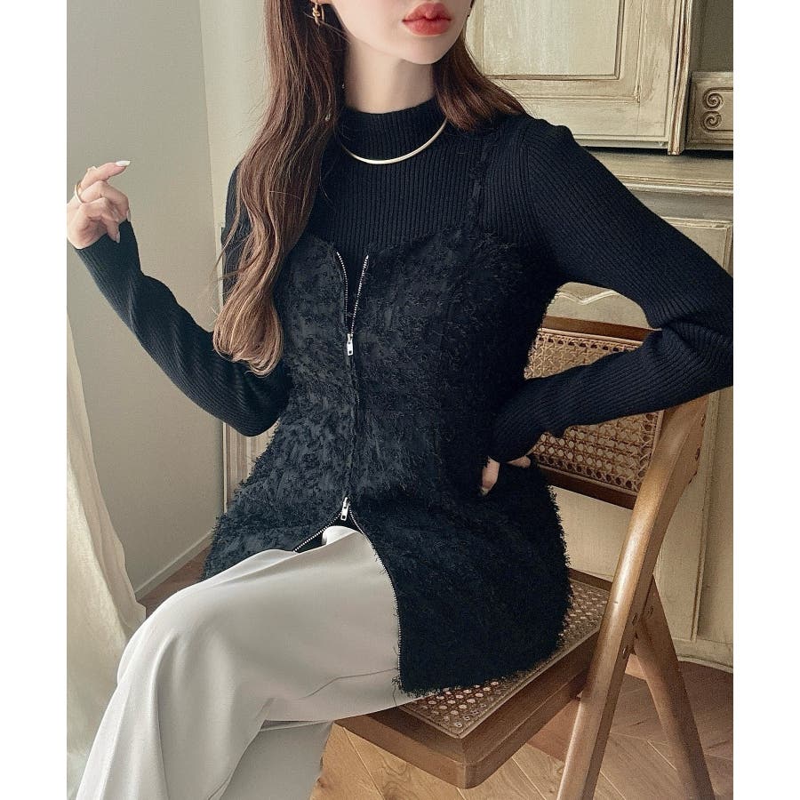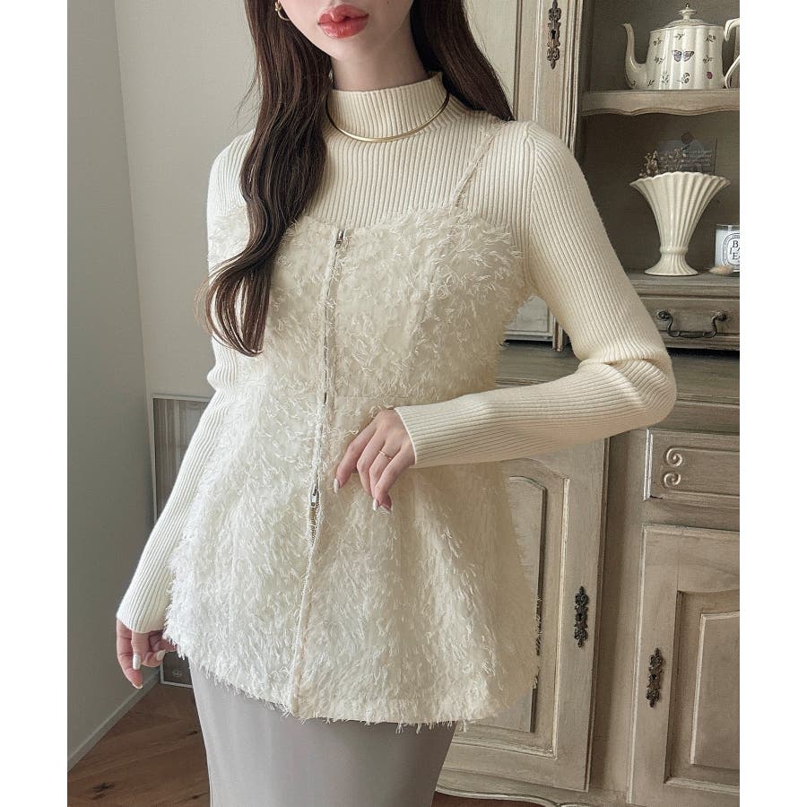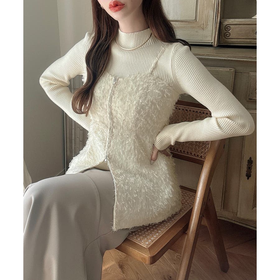 Meiru シャギービスチェ+ニットトップス