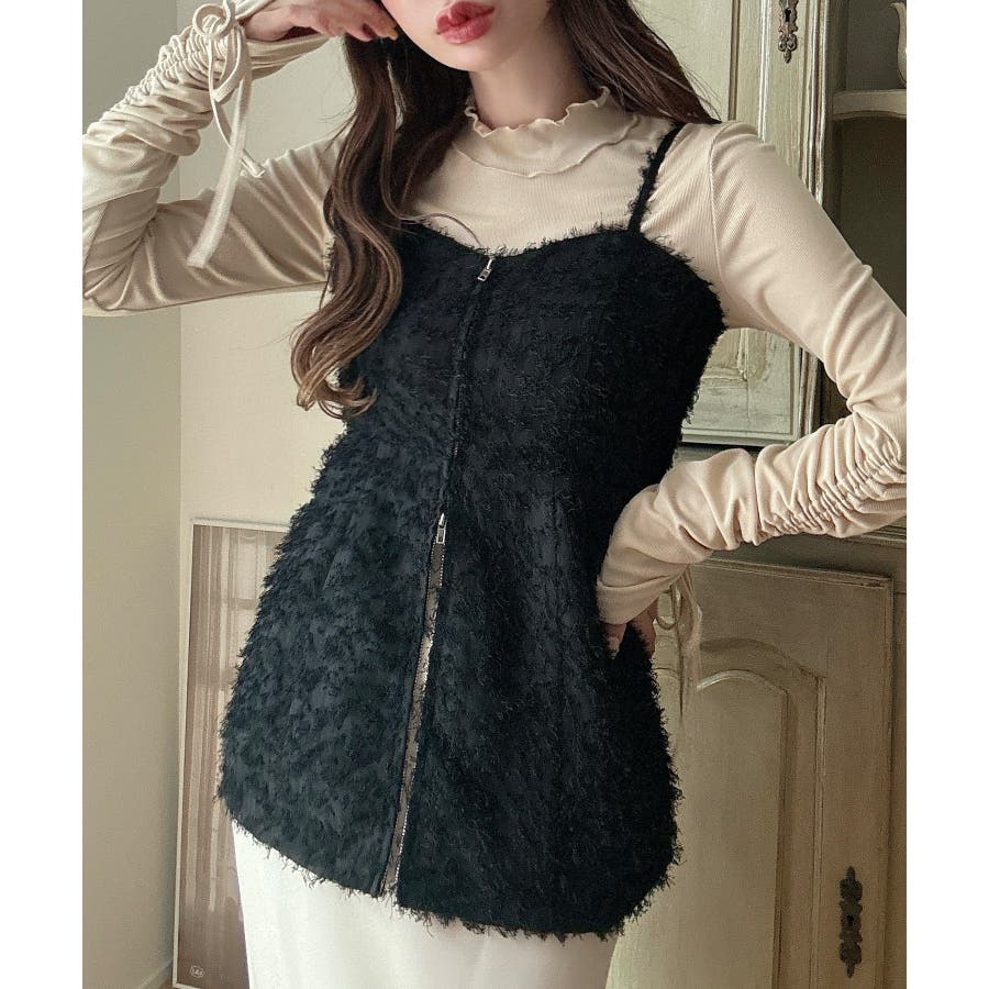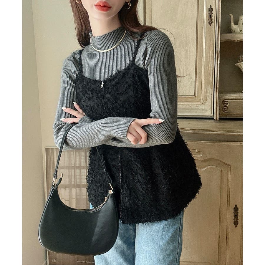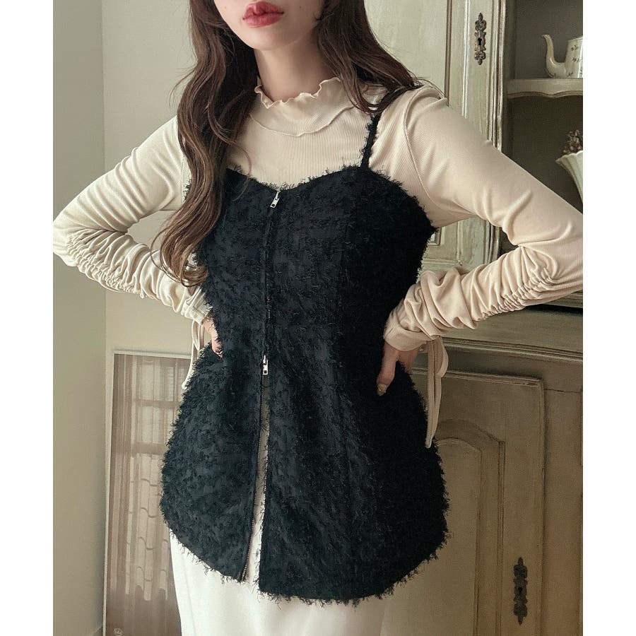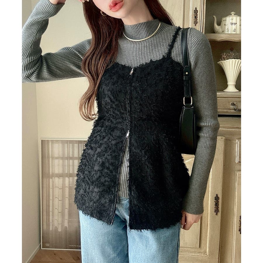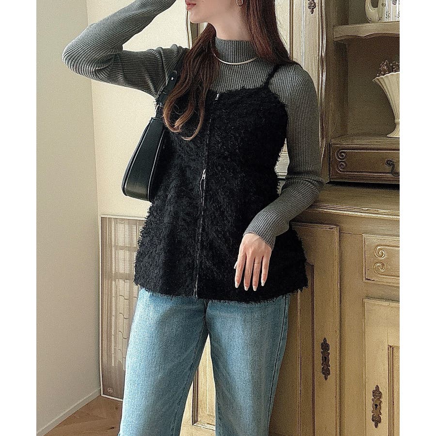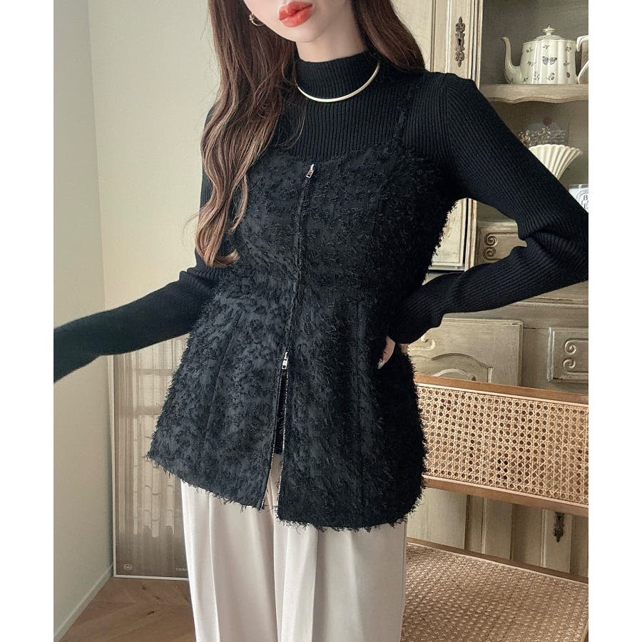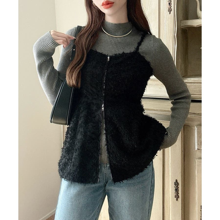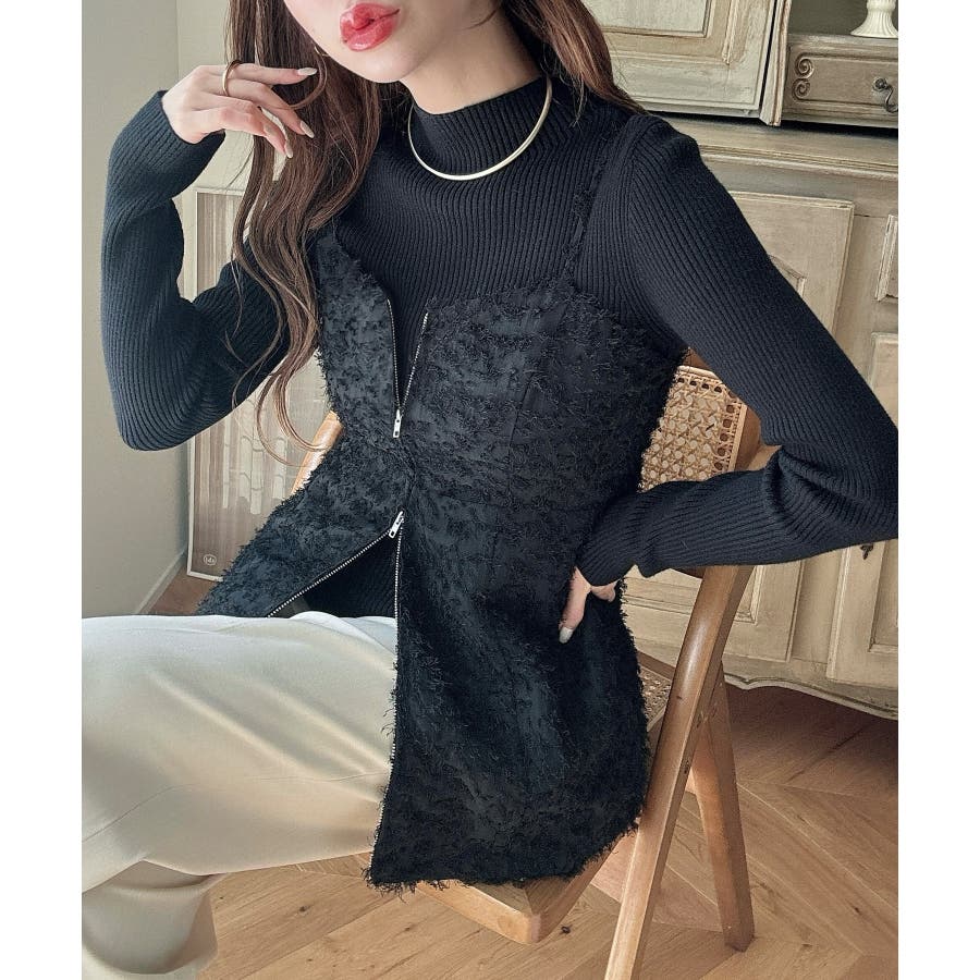 Meiru シャギービスチェ+ニットトップス