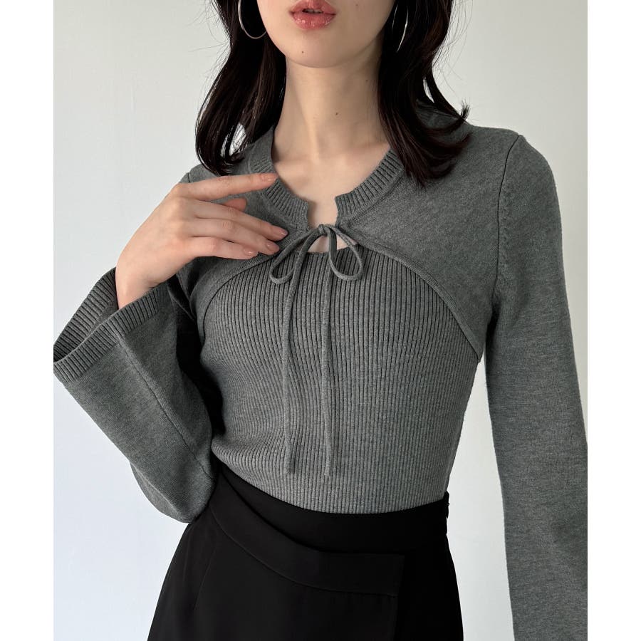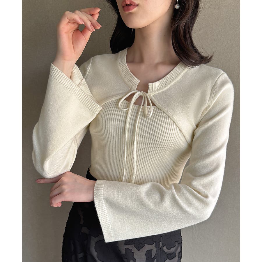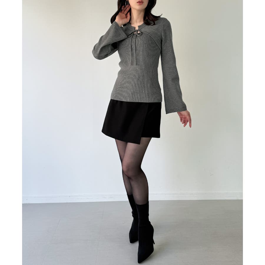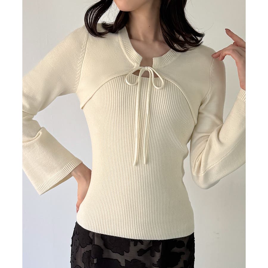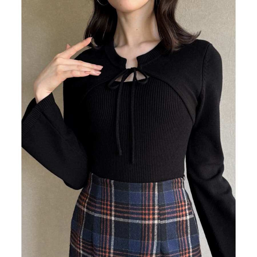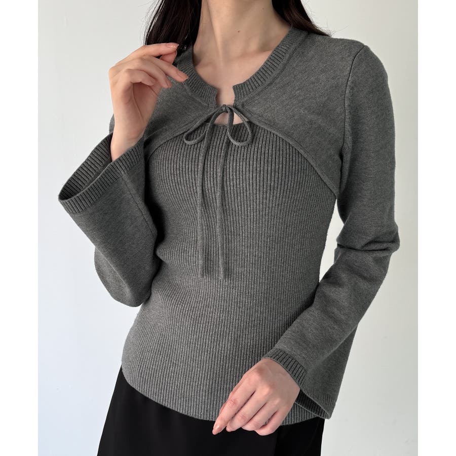 リボンフレアスリーブニット