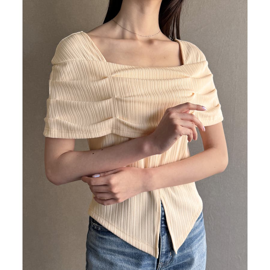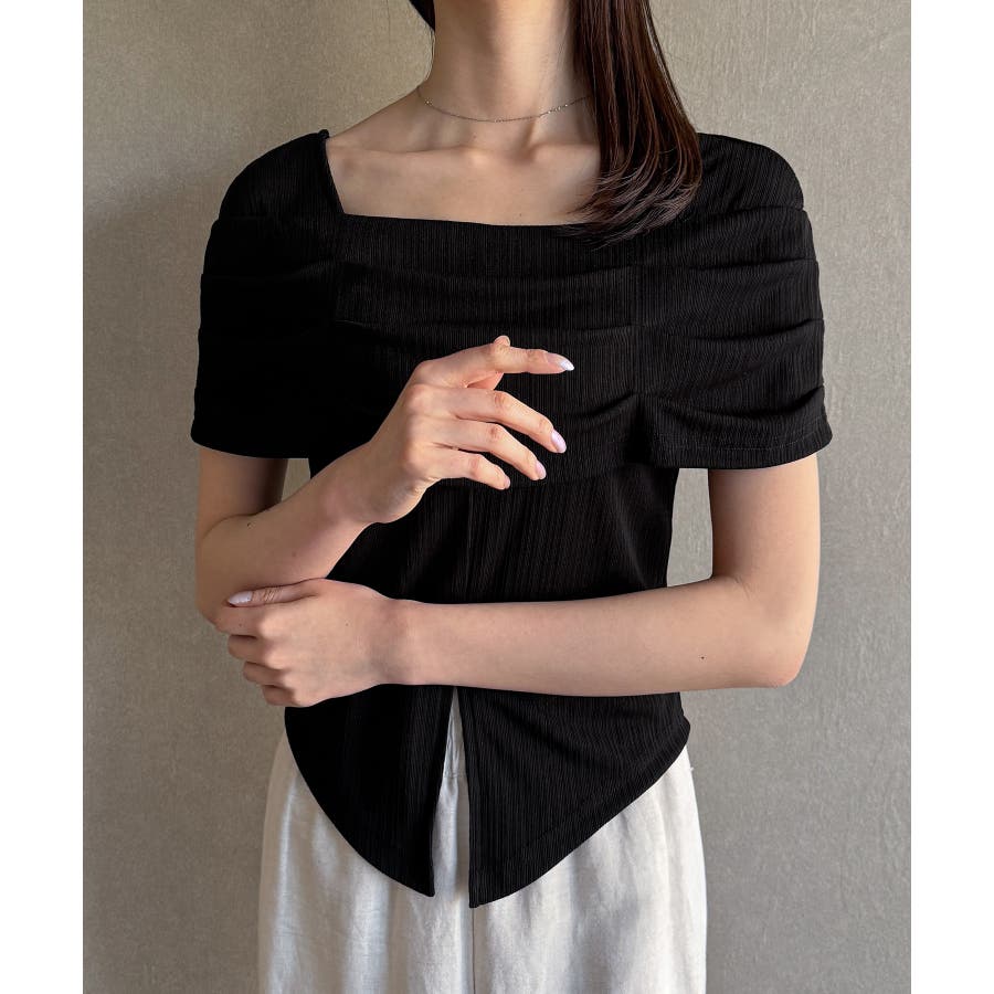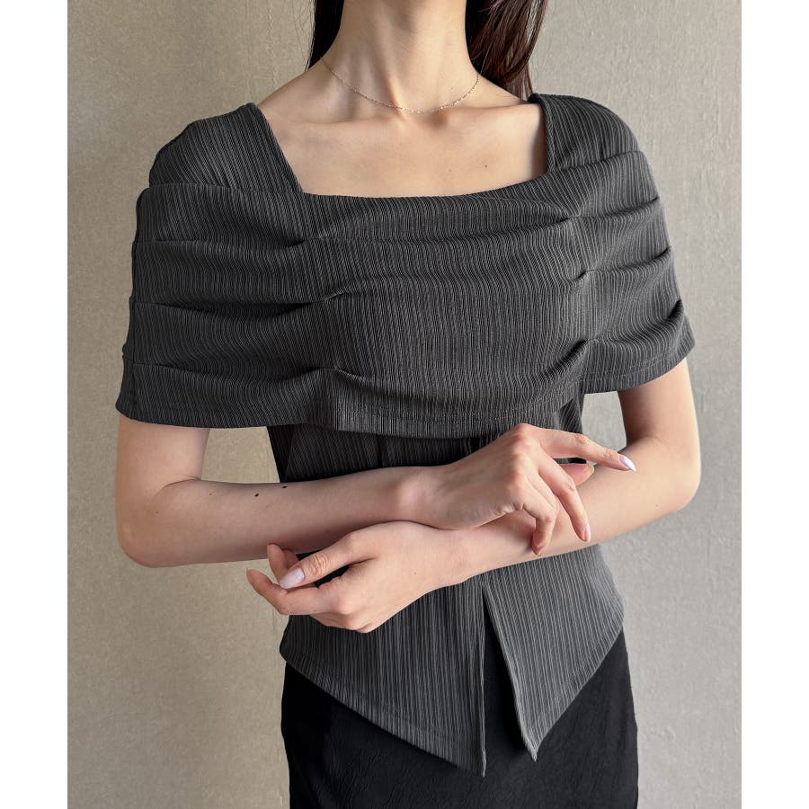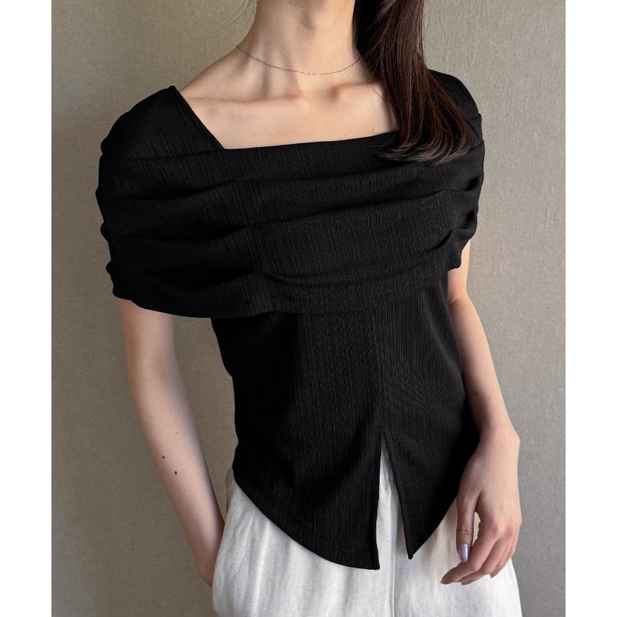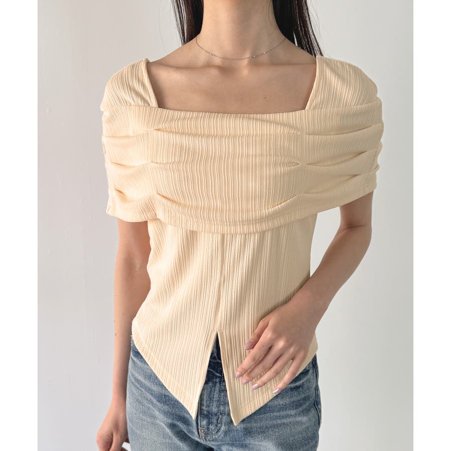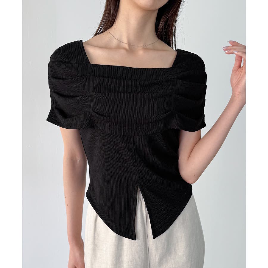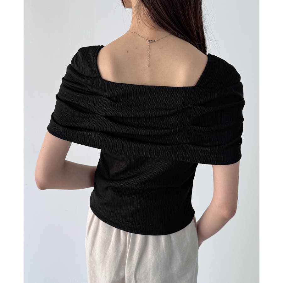オフショル風スクエアネックドレープリブカットソー