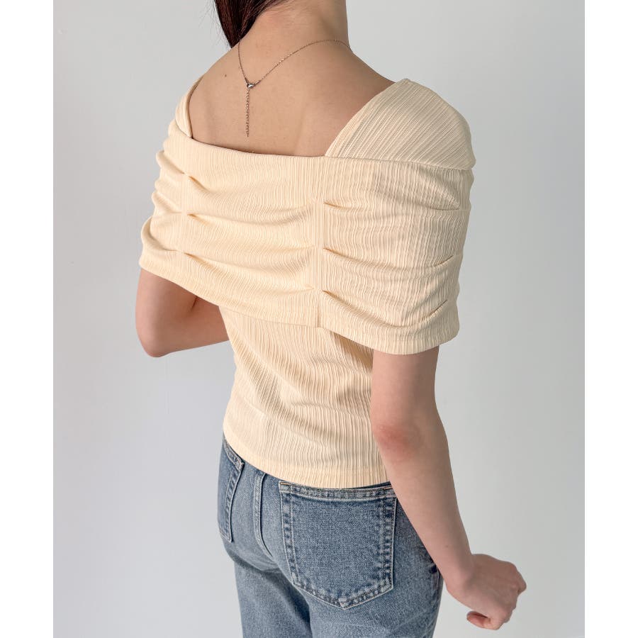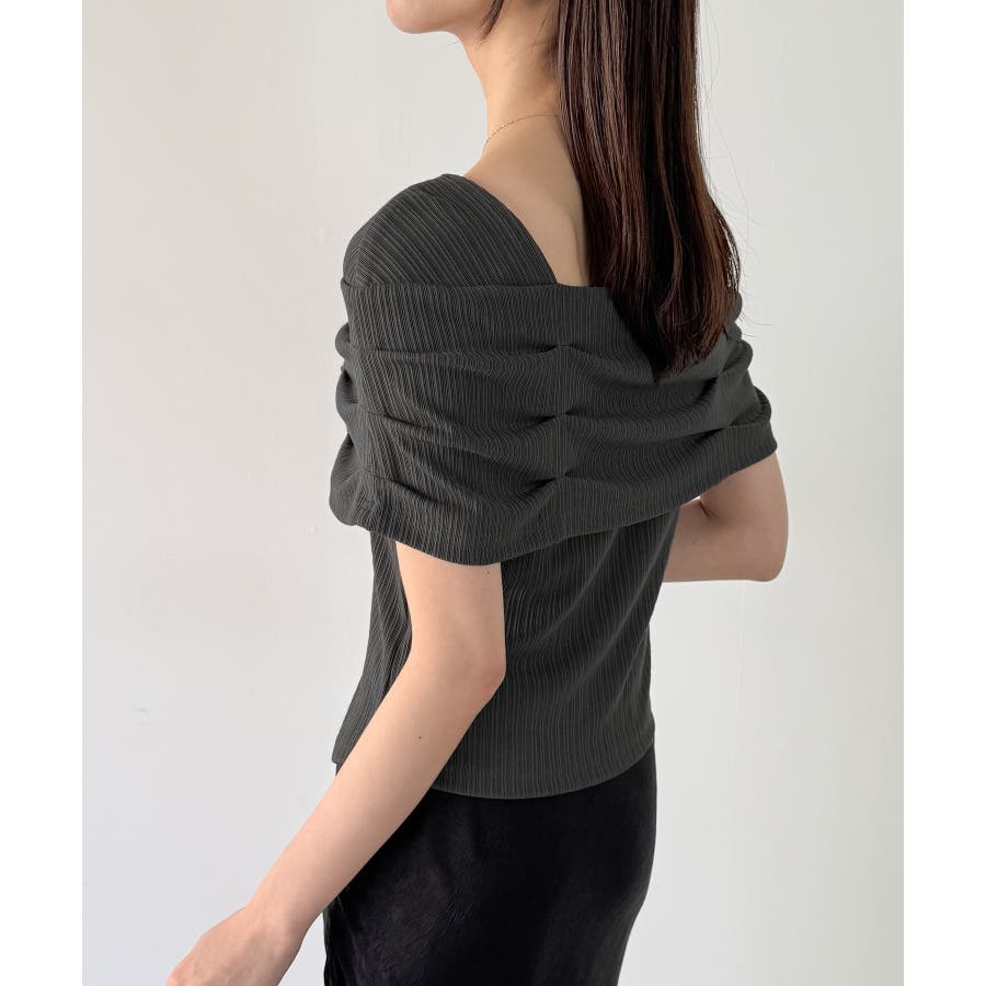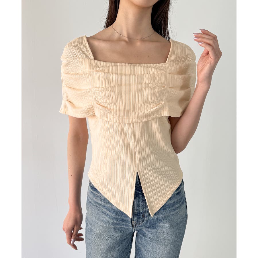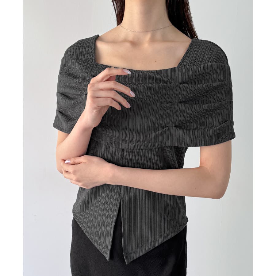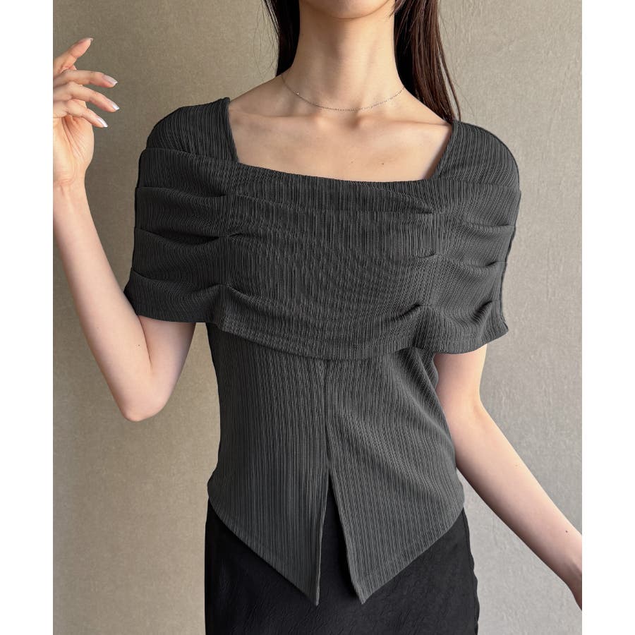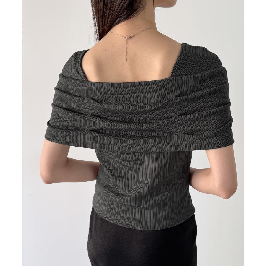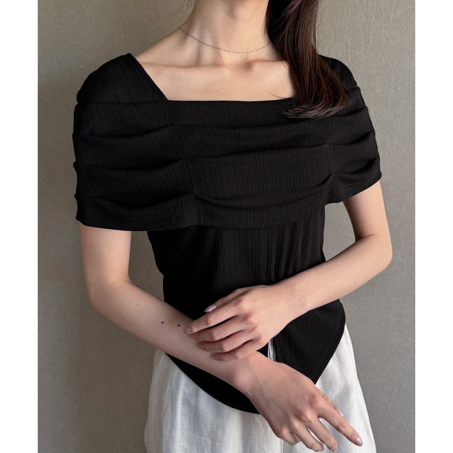 オフショル風スクエアネックドレープリブカットソー
