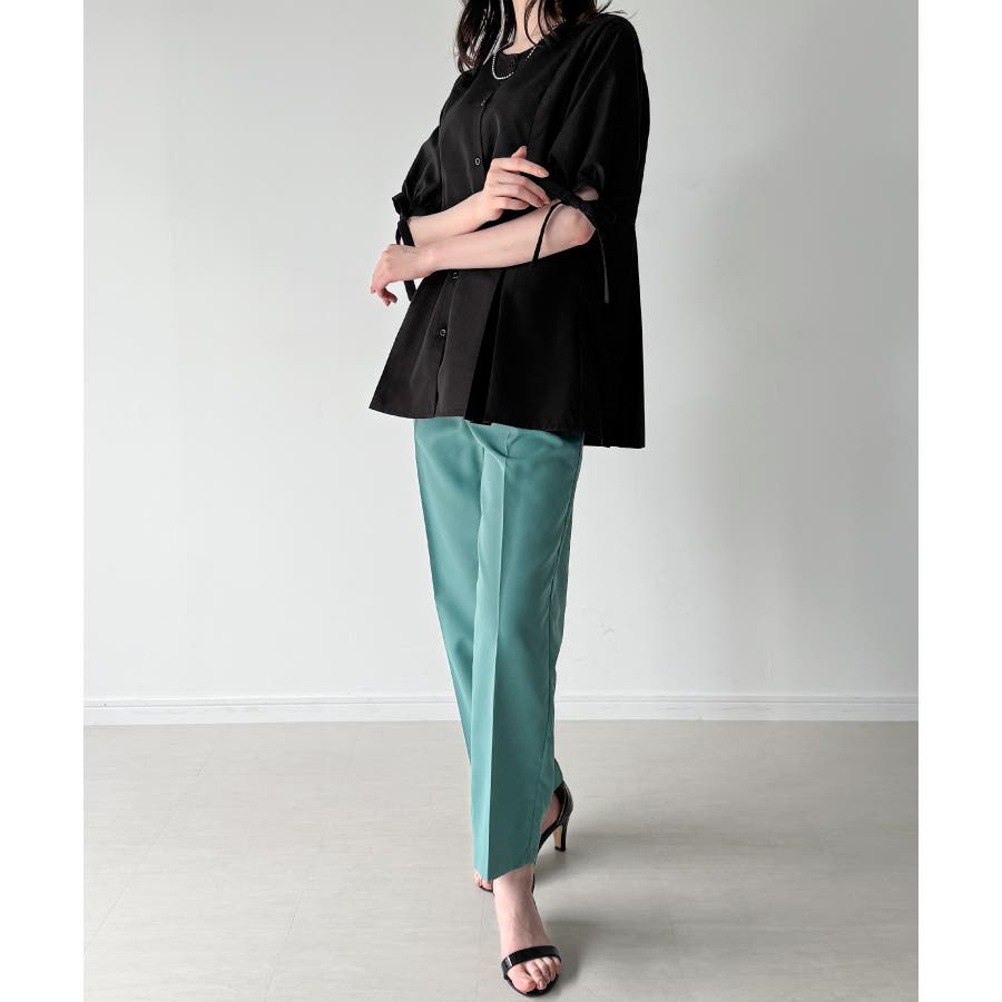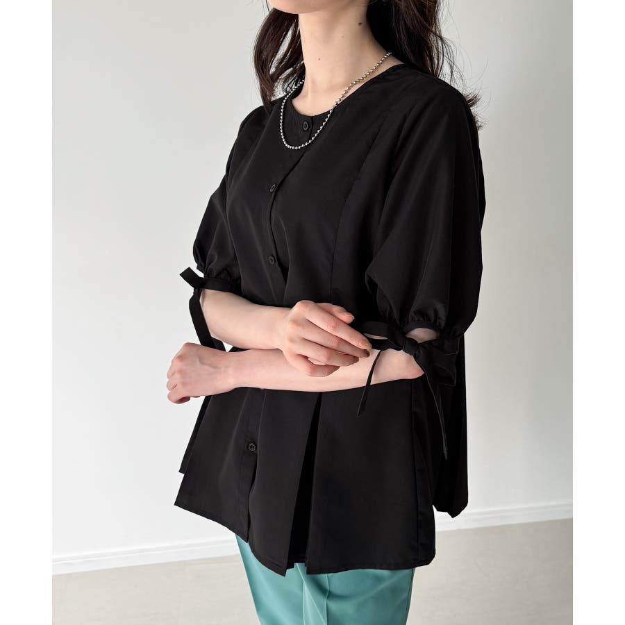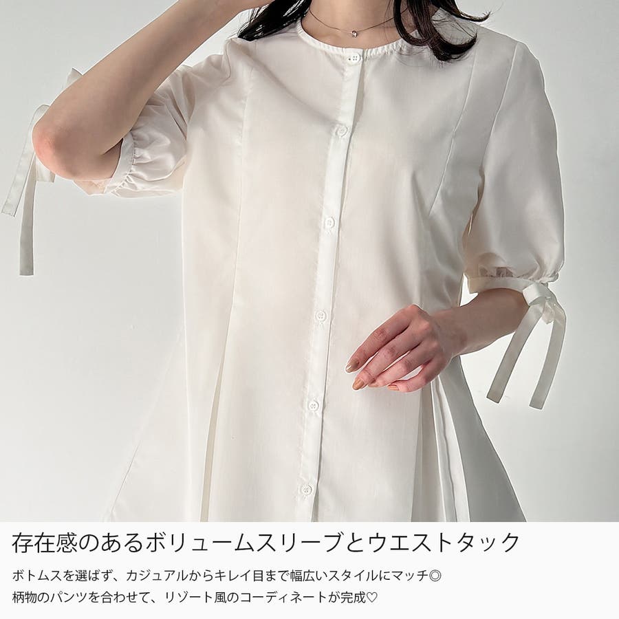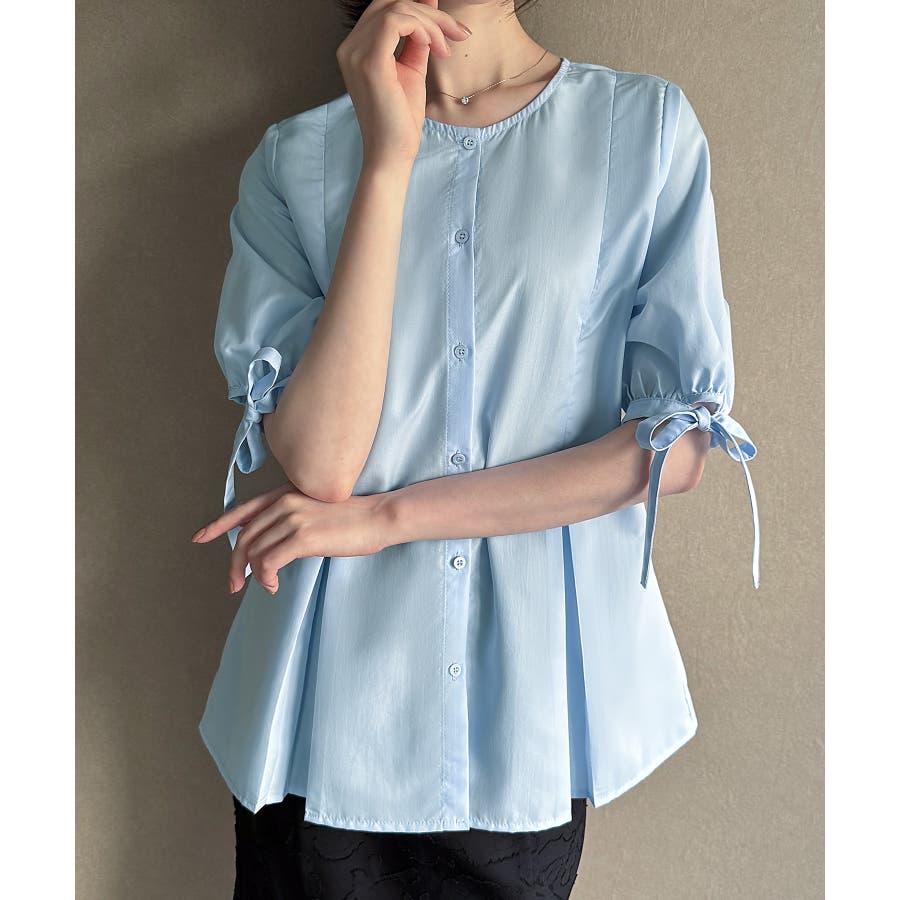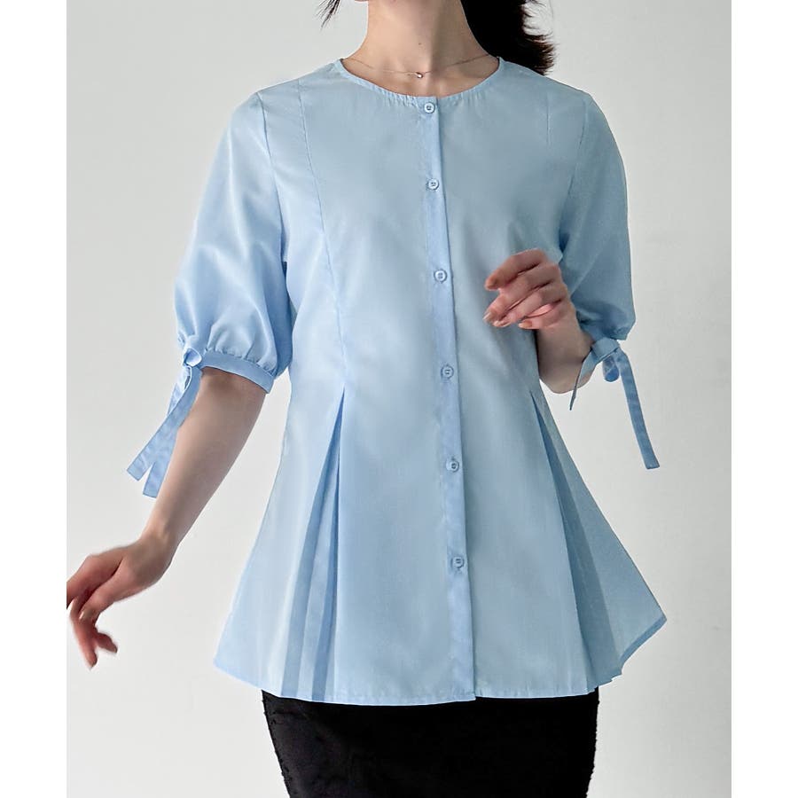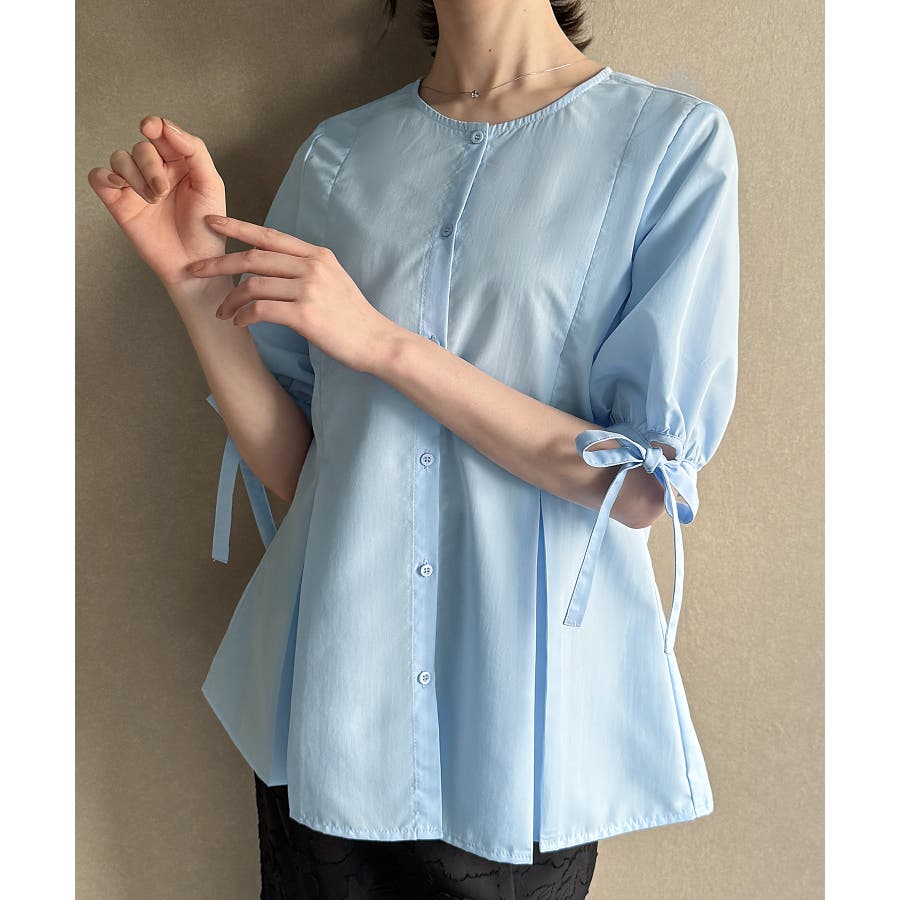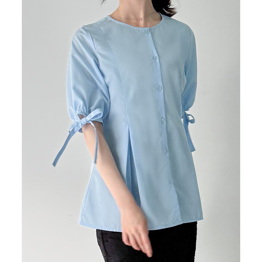 ボリュームスリーブウエストタックブラウス