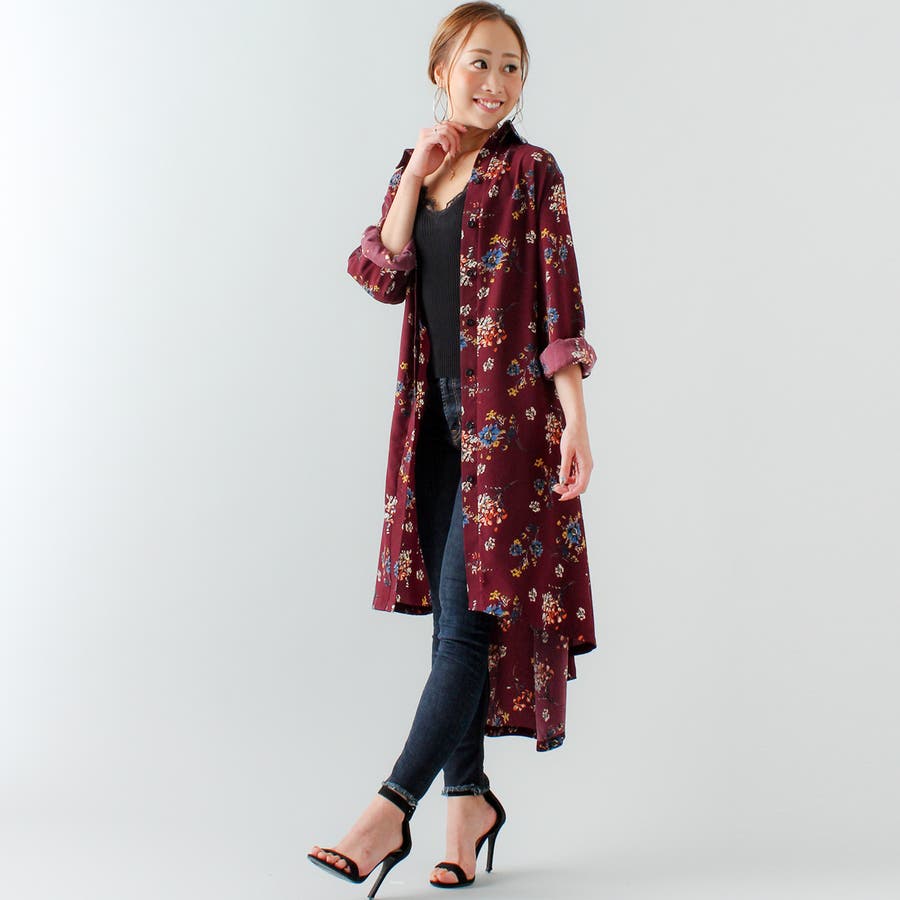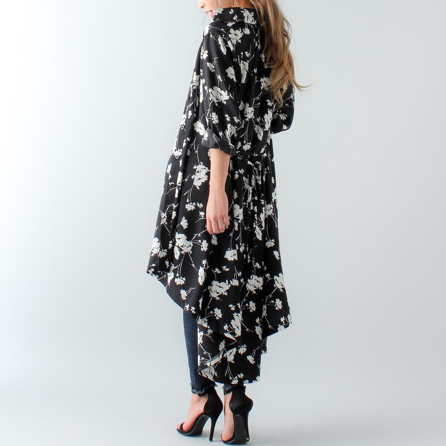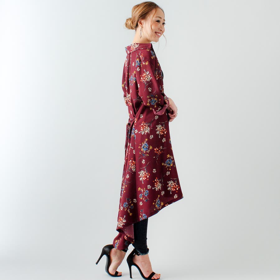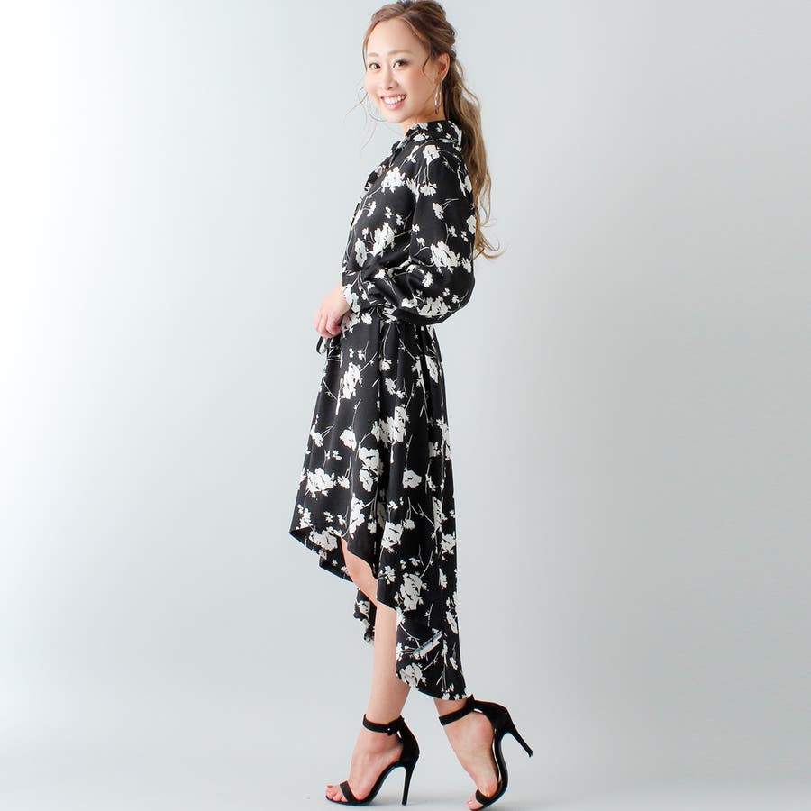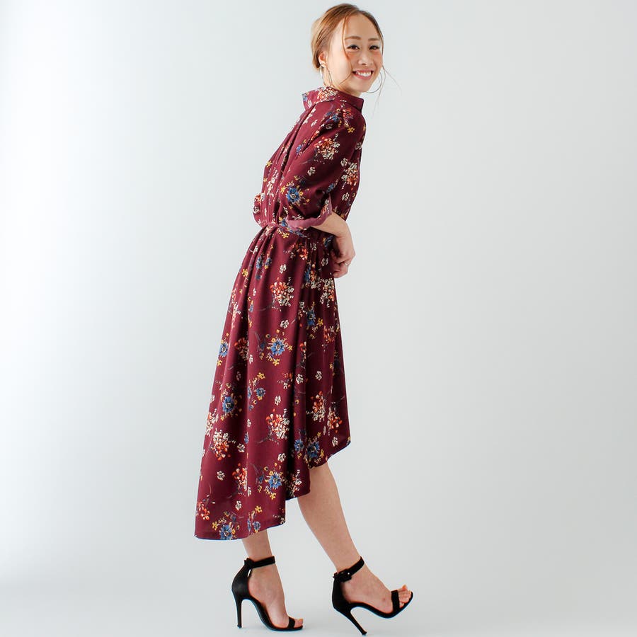 裾フレア花柄シャツワンピース ふんわり とろみ