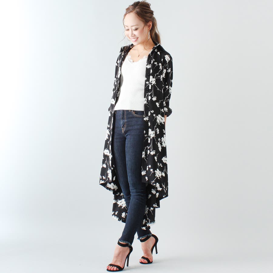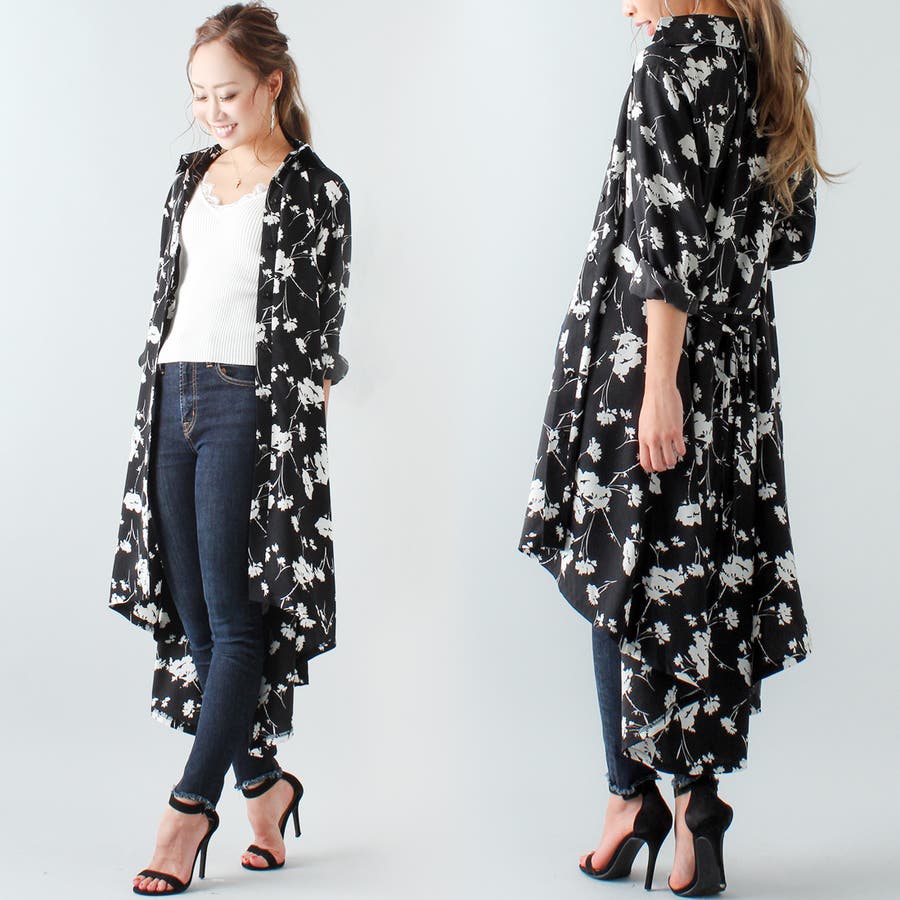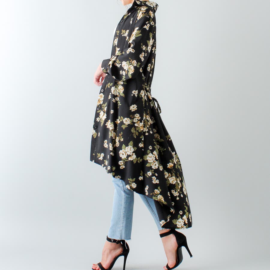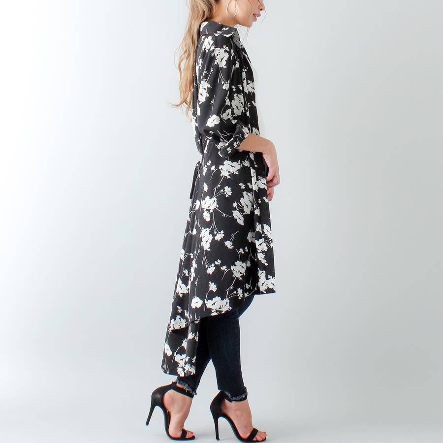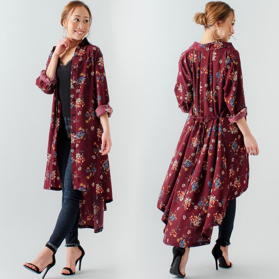 裾フレア花柄シャツワンピース ふんわり とろみ