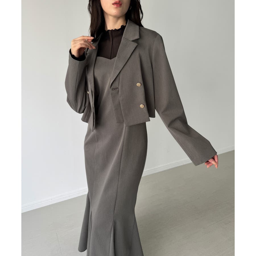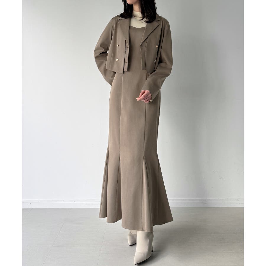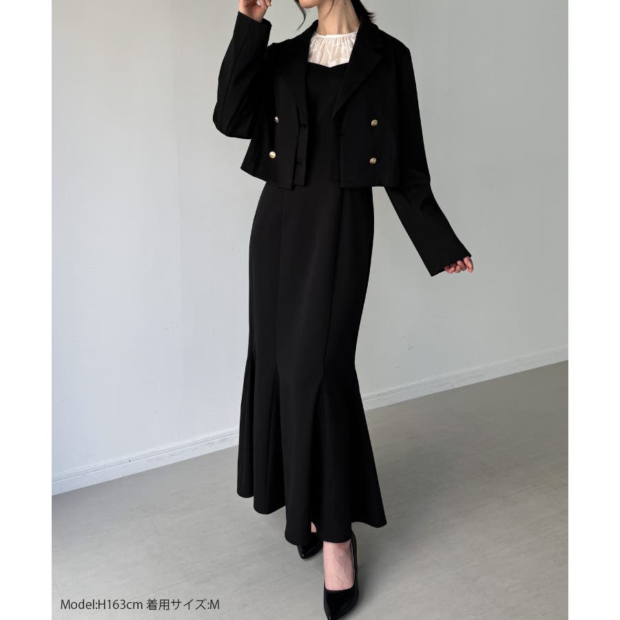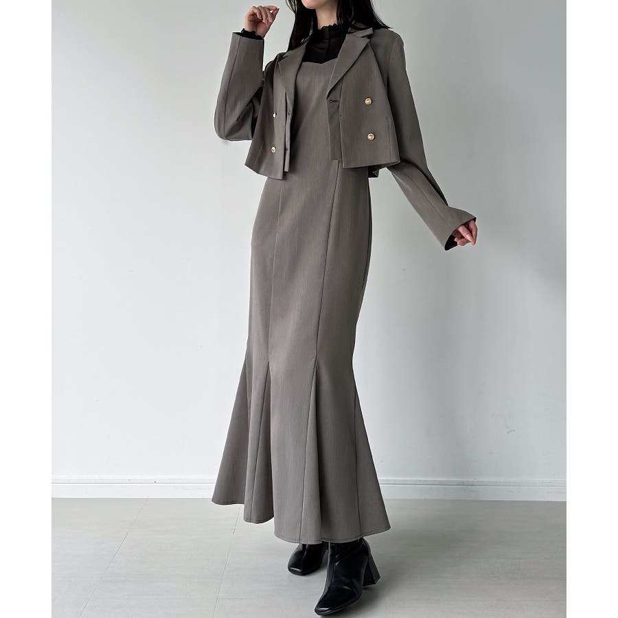 レイヤードデザインショートジャケット+マーメイドキャミワンピースset
