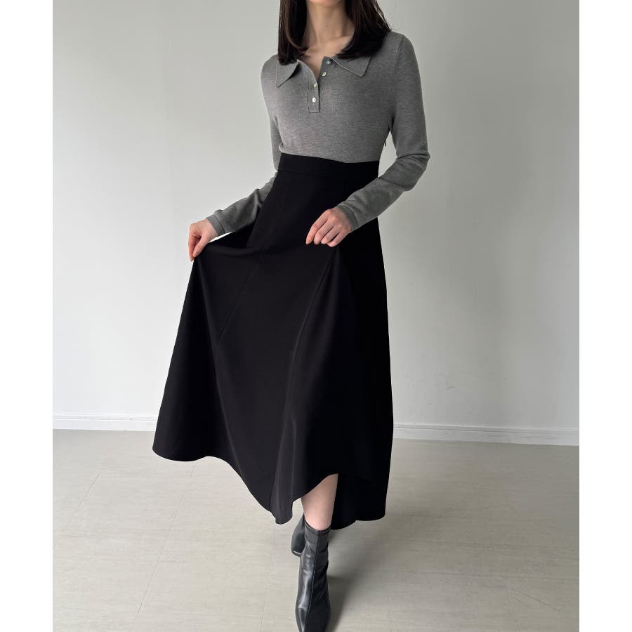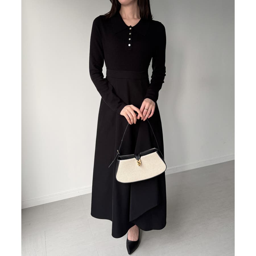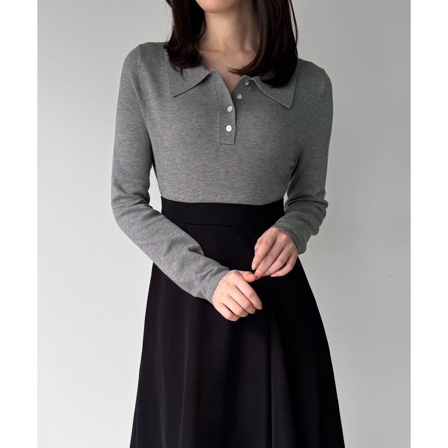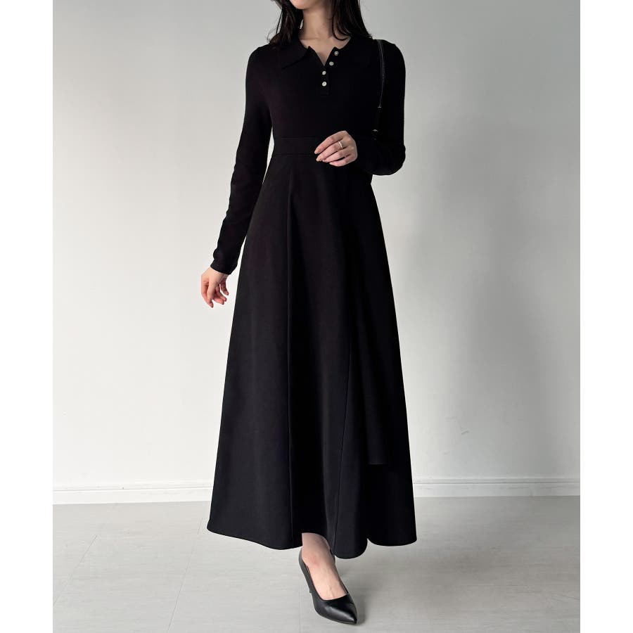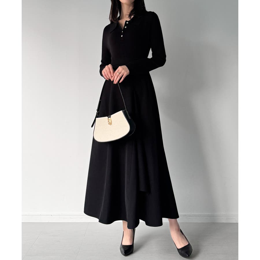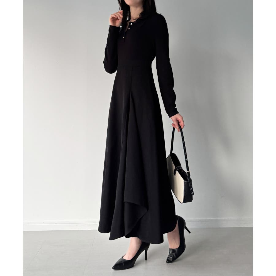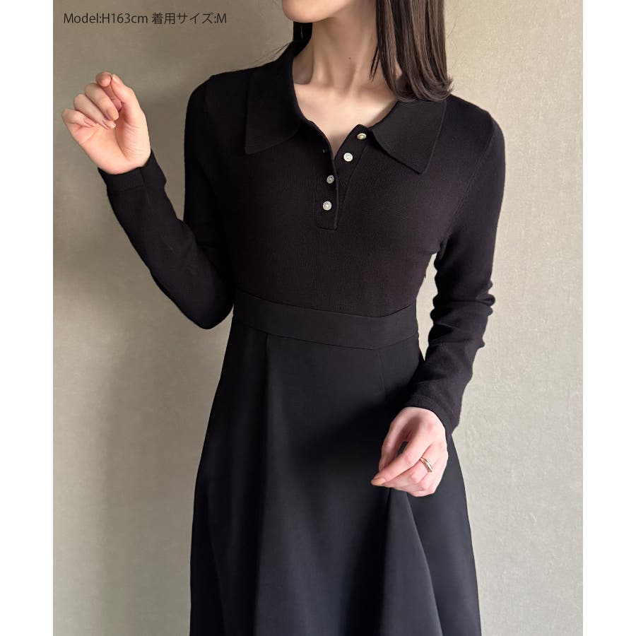 ポロニットドッキングラッフルフレアワンピース(薄手、裏地なし)