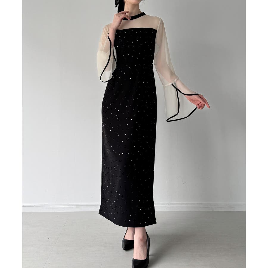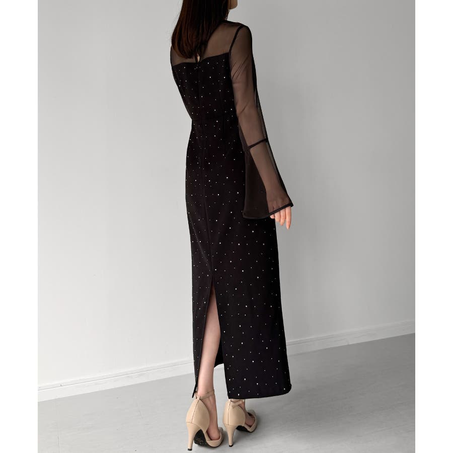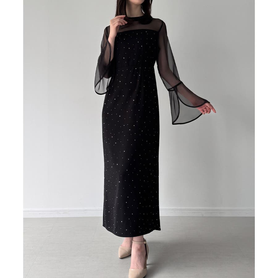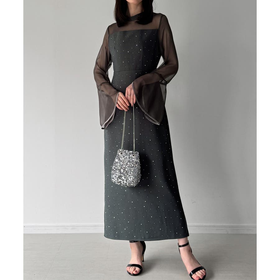 ベルスリーブキラキラタイトドレス