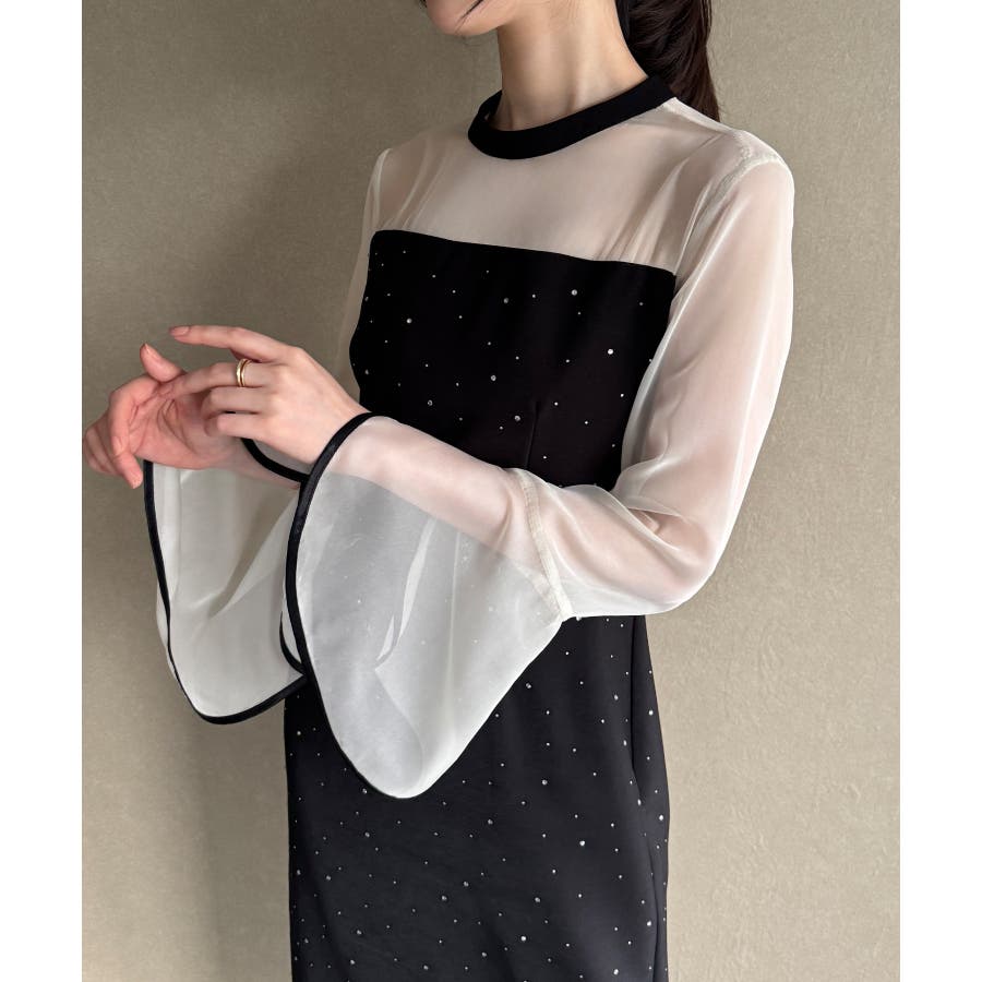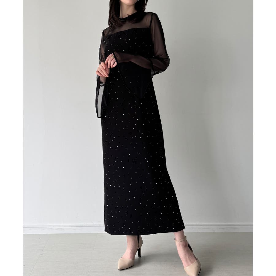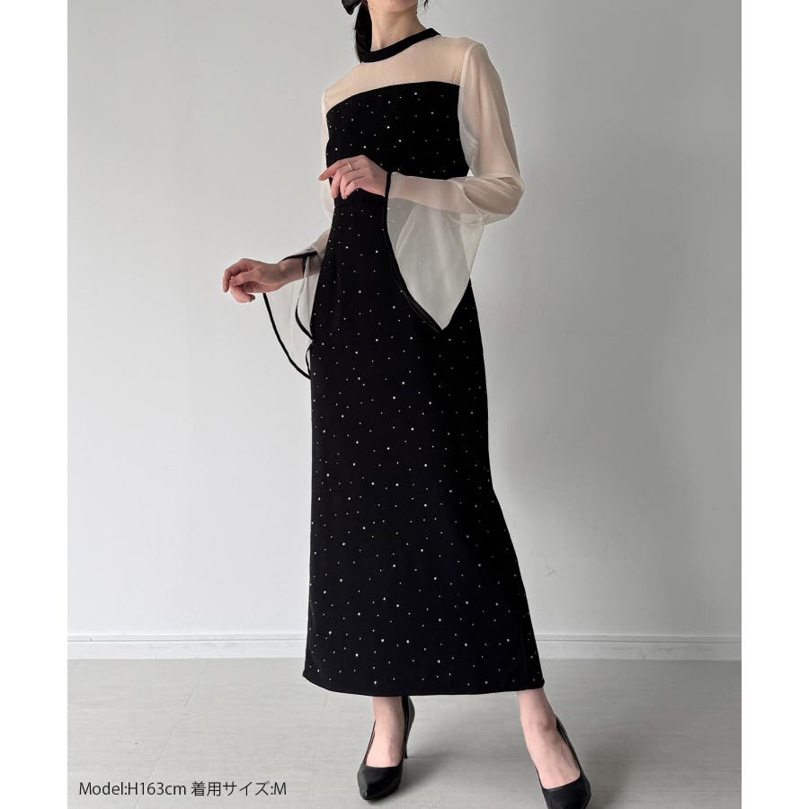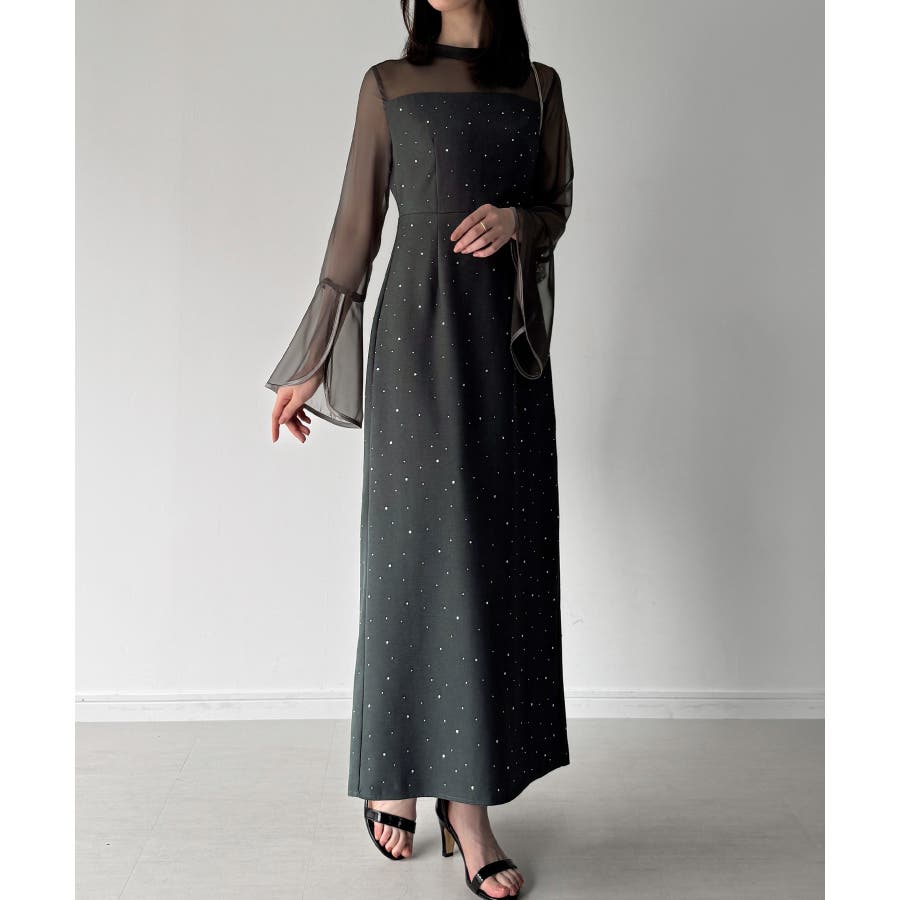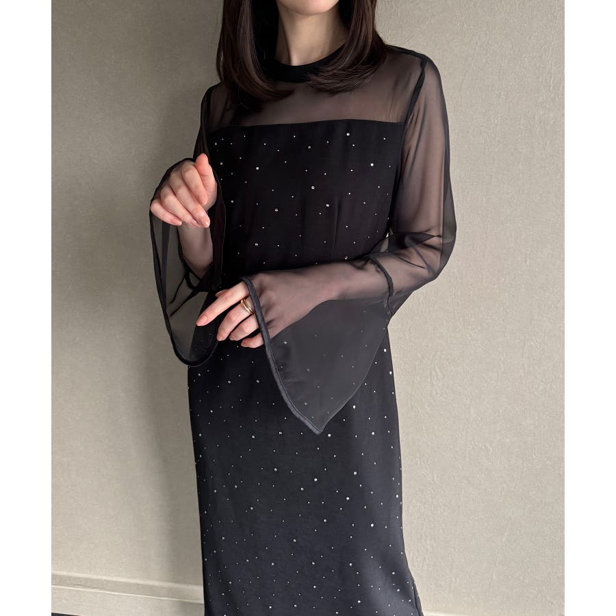 ベルスリーブキラキラタイトドレス
