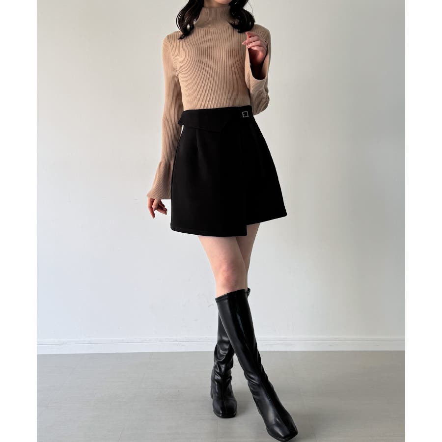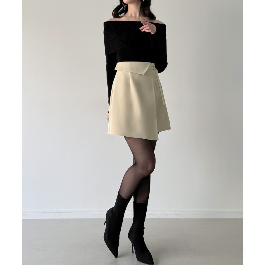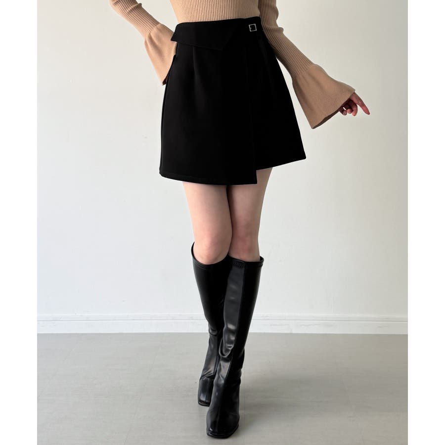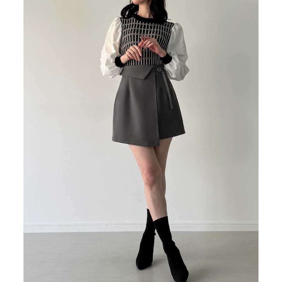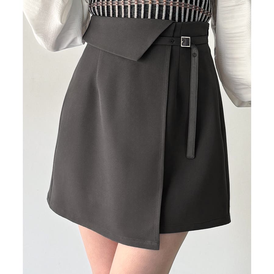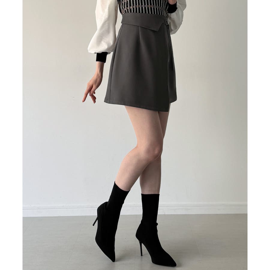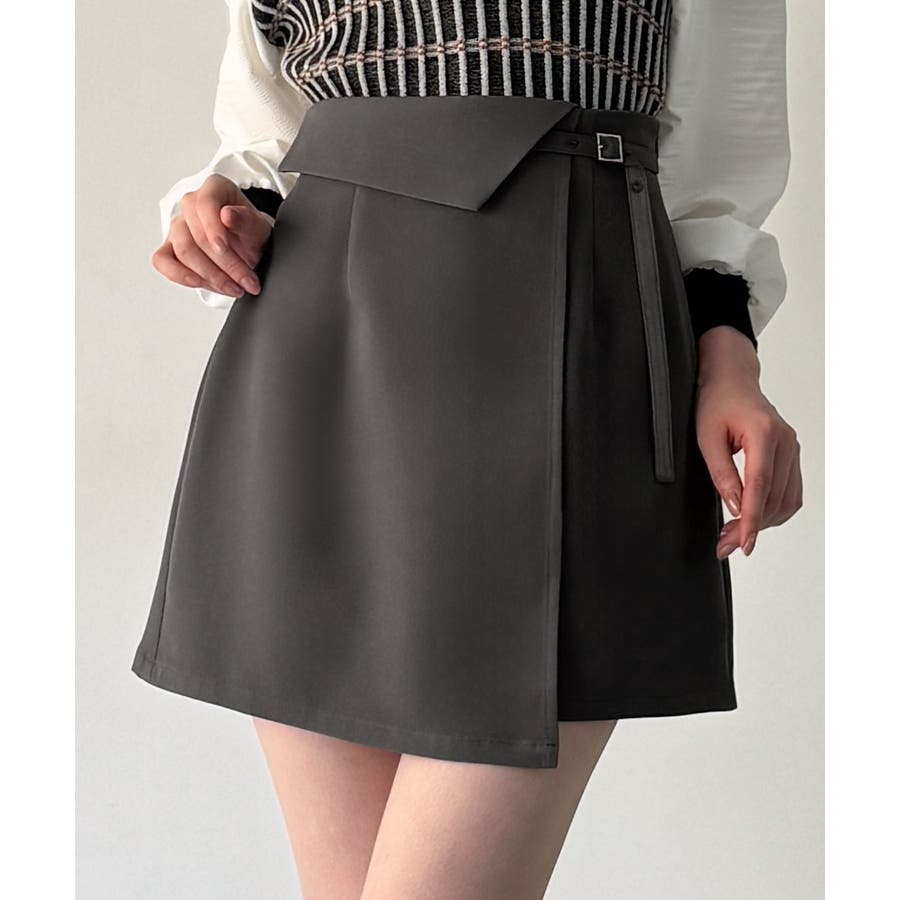 インナーパンツ付きラップデザインミニスカート