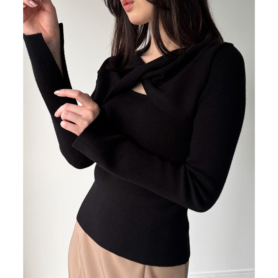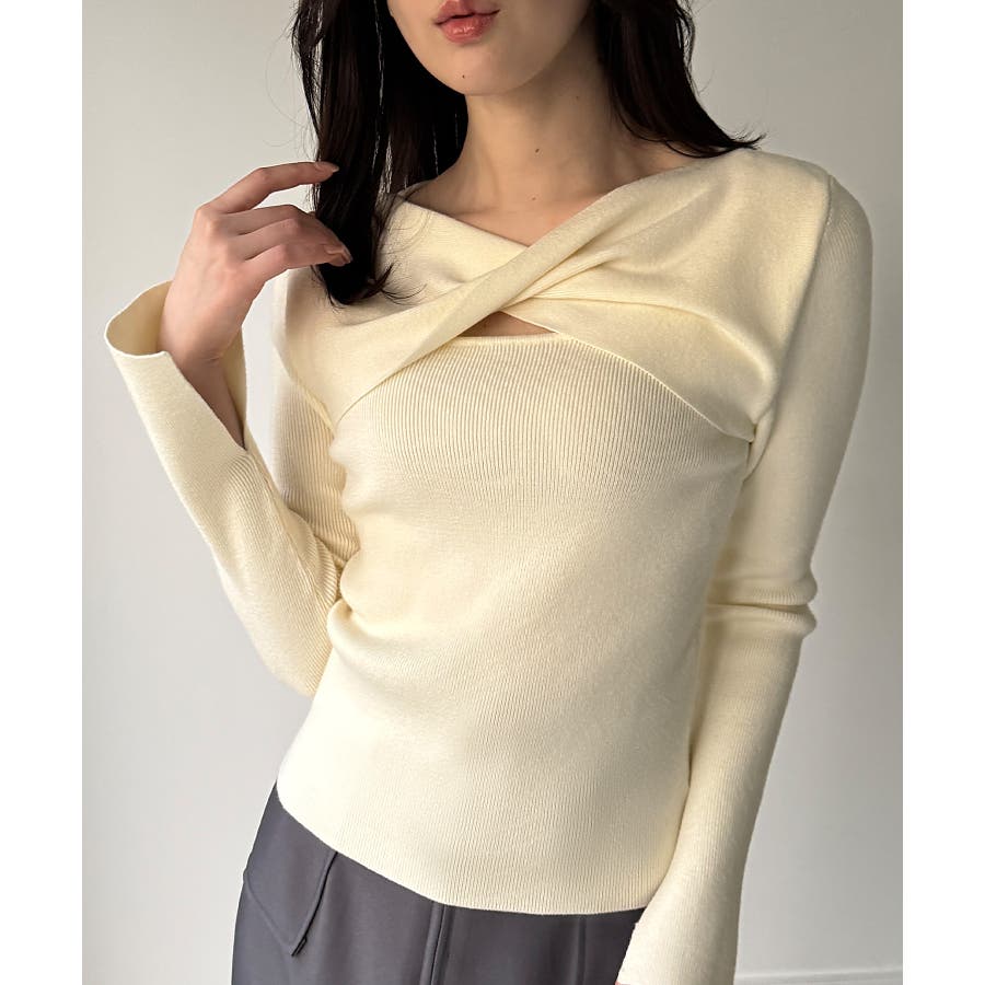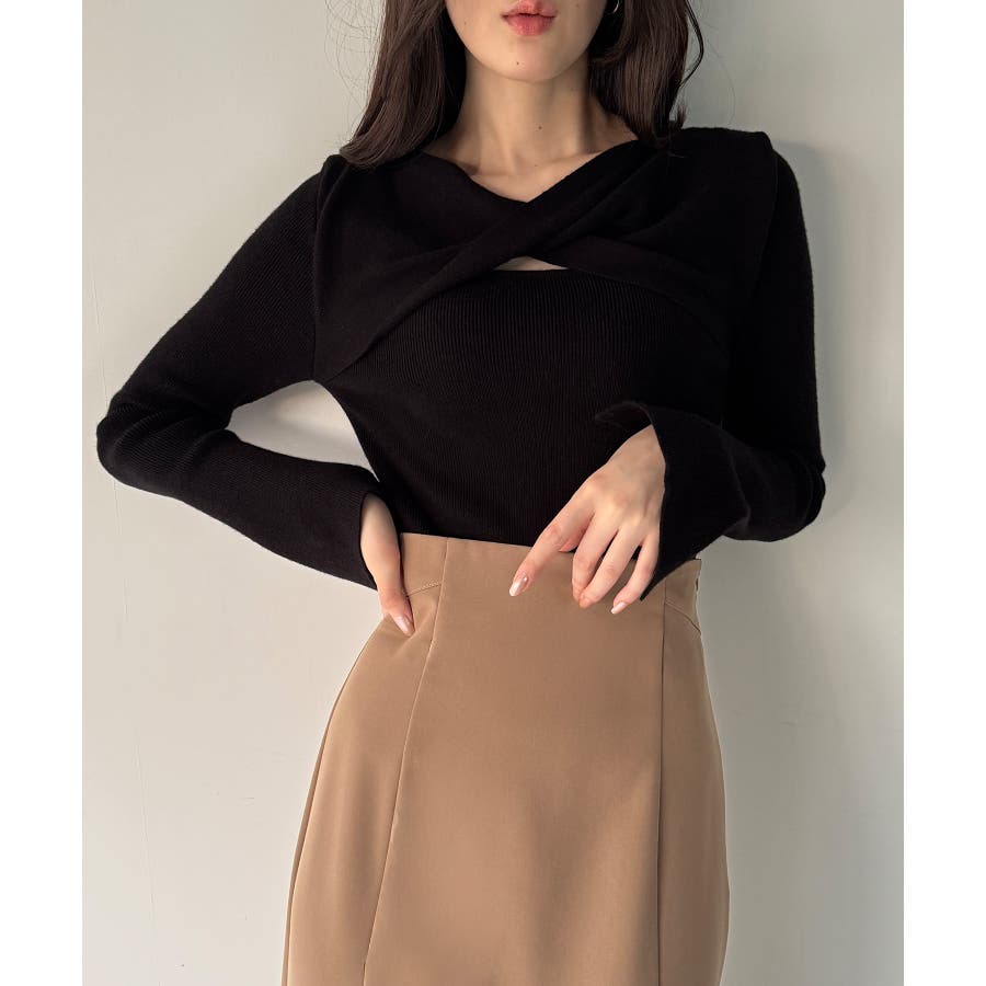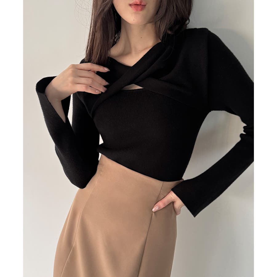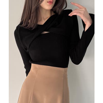 クロスドレープニットトップス