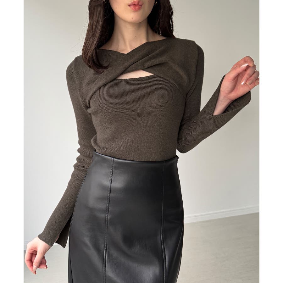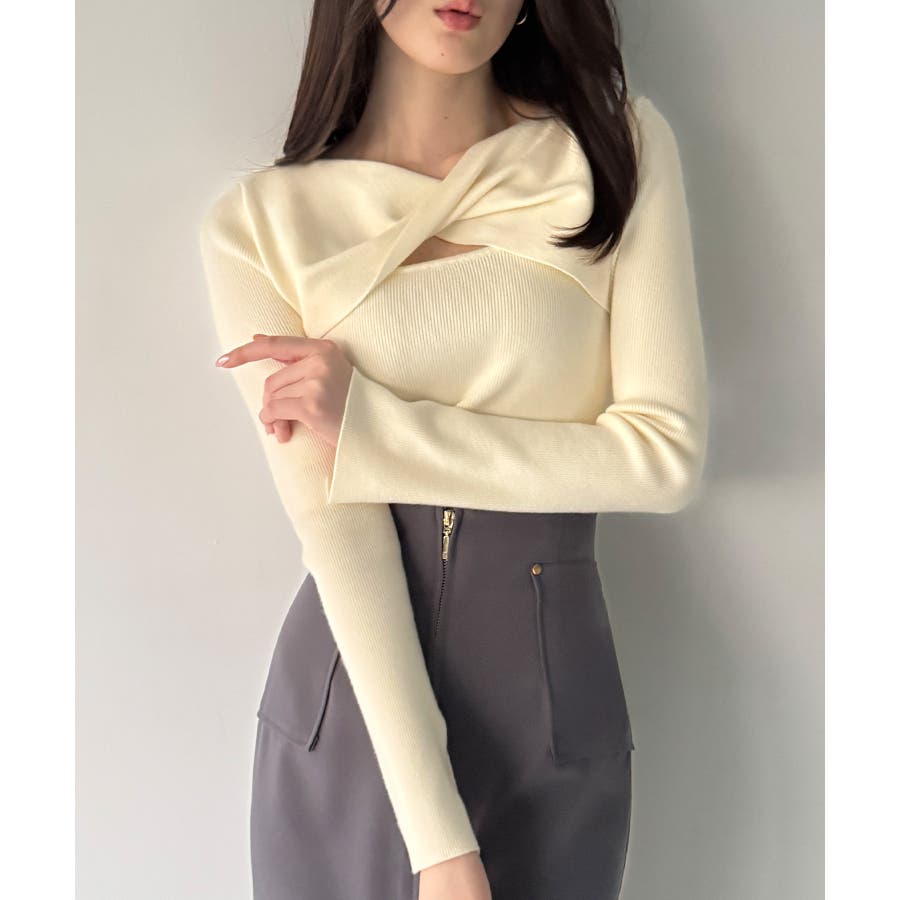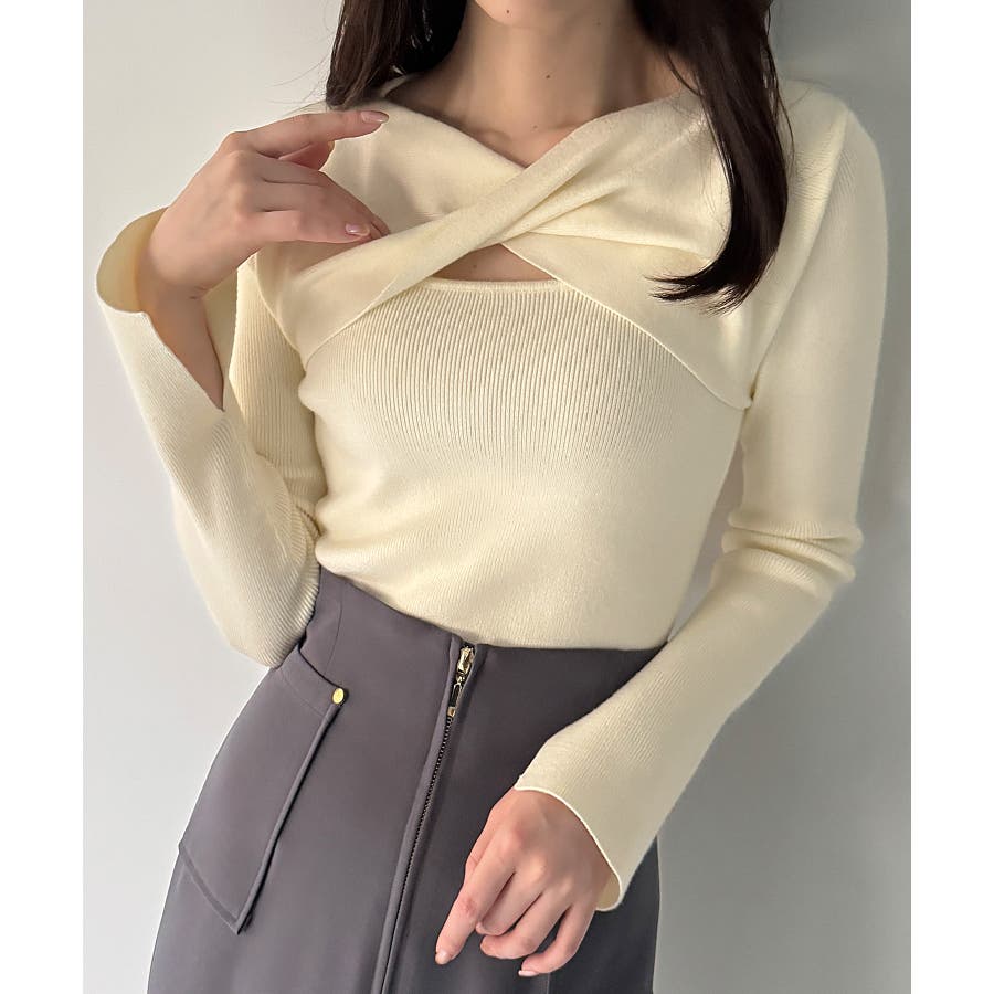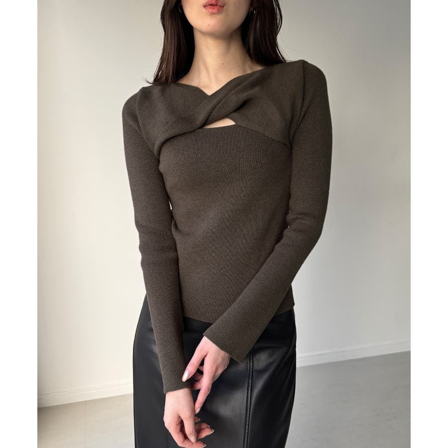 クロスドレープニットトップス