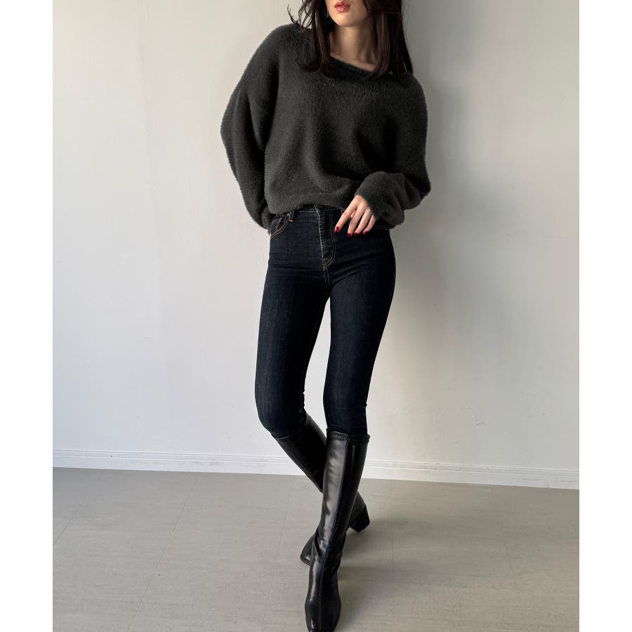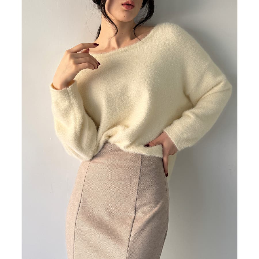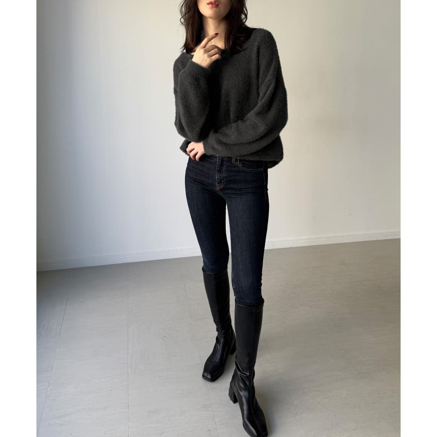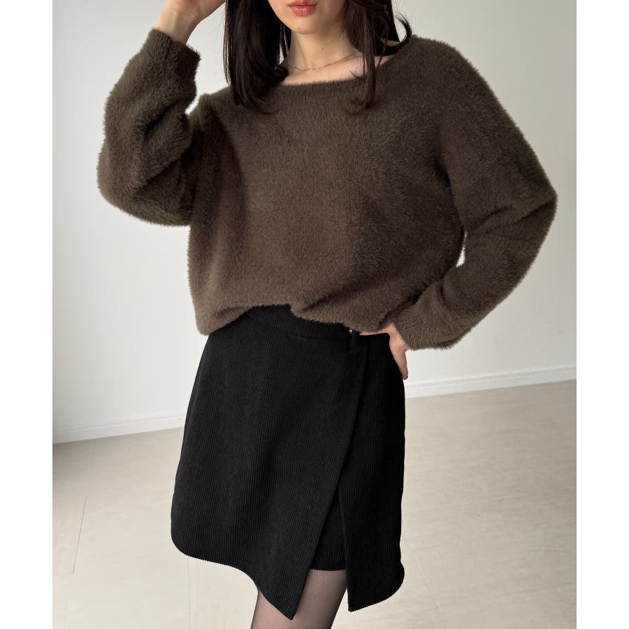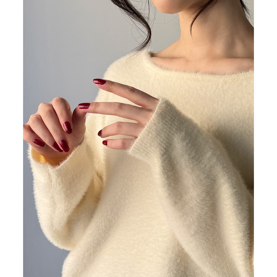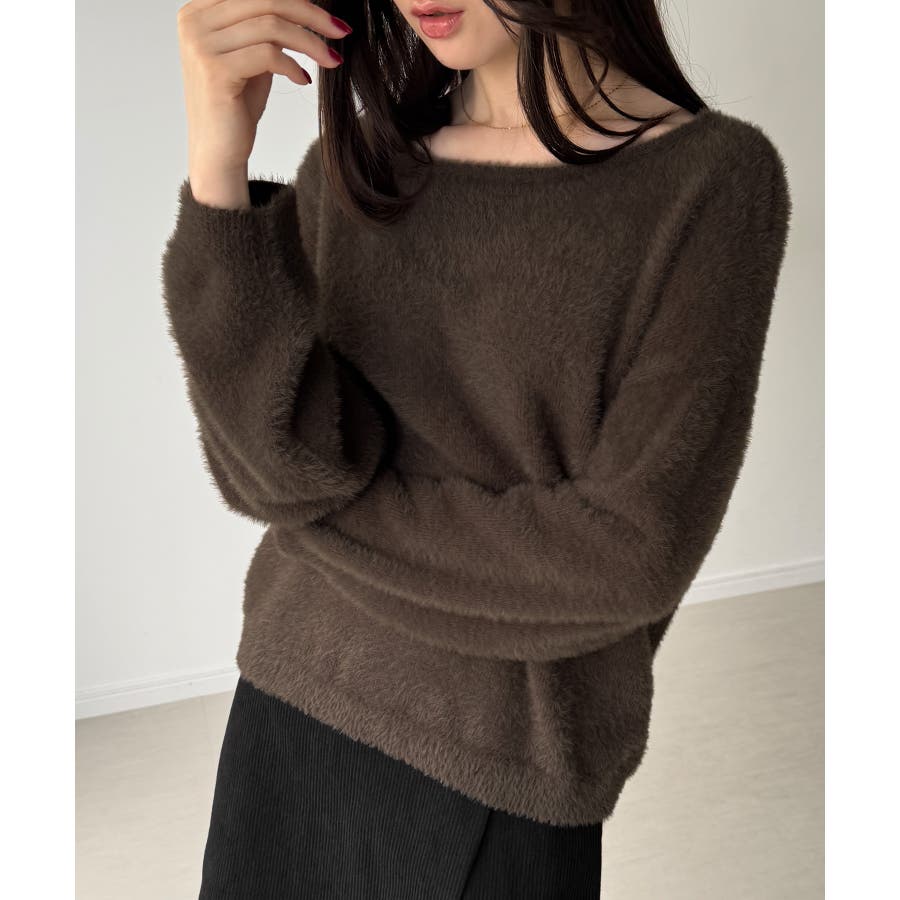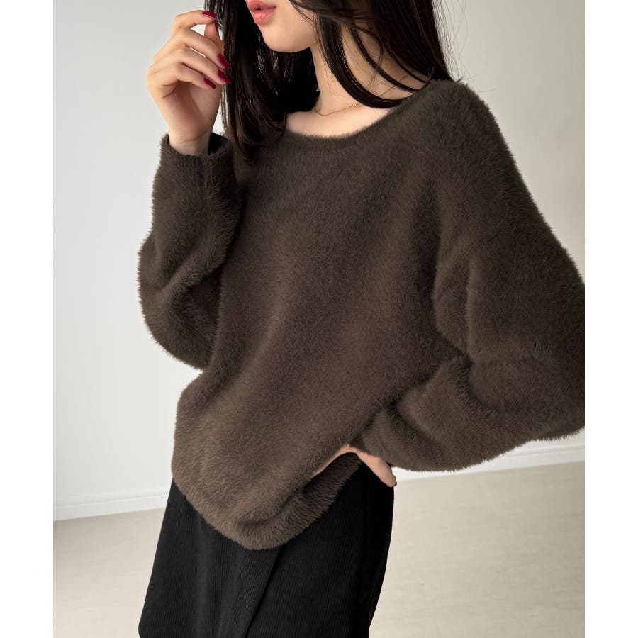 バックベロアリボンシャギーニットトップス