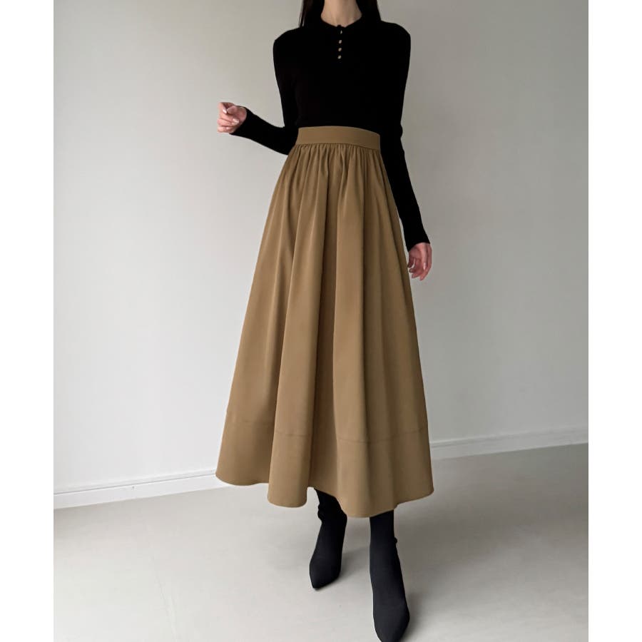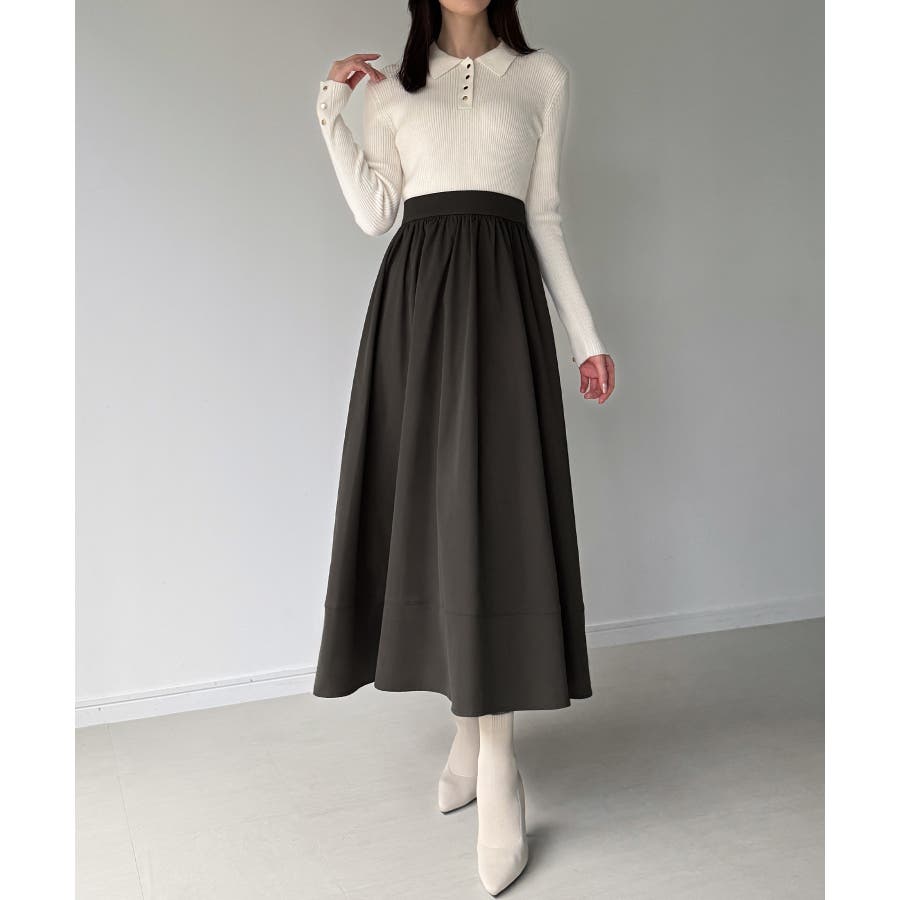 ニット: レーヨン50%, ポリエステル28%, ナイロン22%, スカート: ポリエステル100%