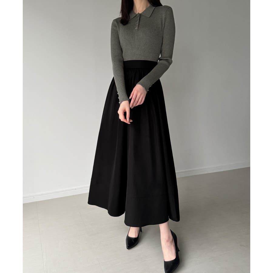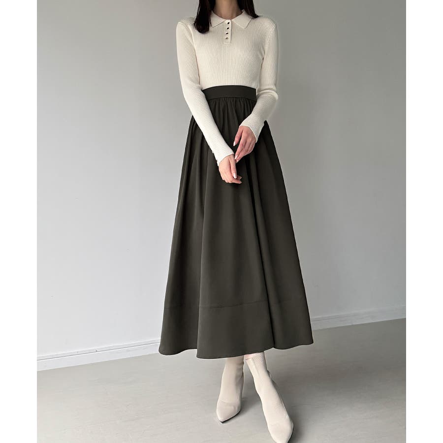 ポロリブニットドッキングワンピース
