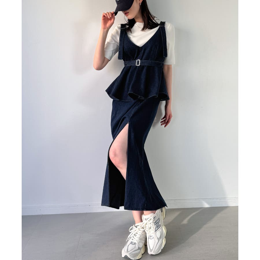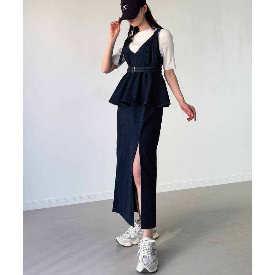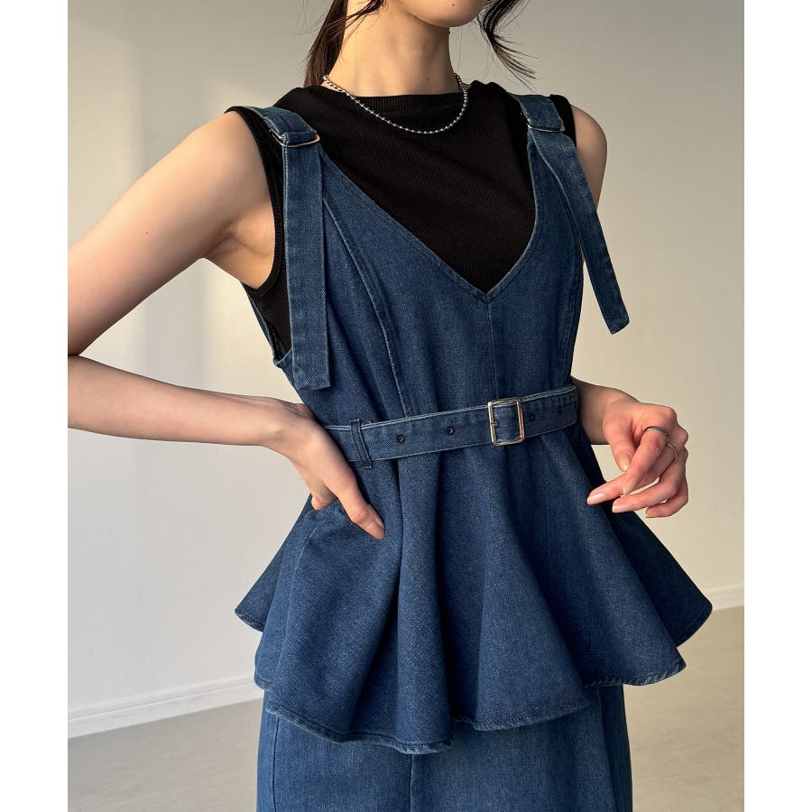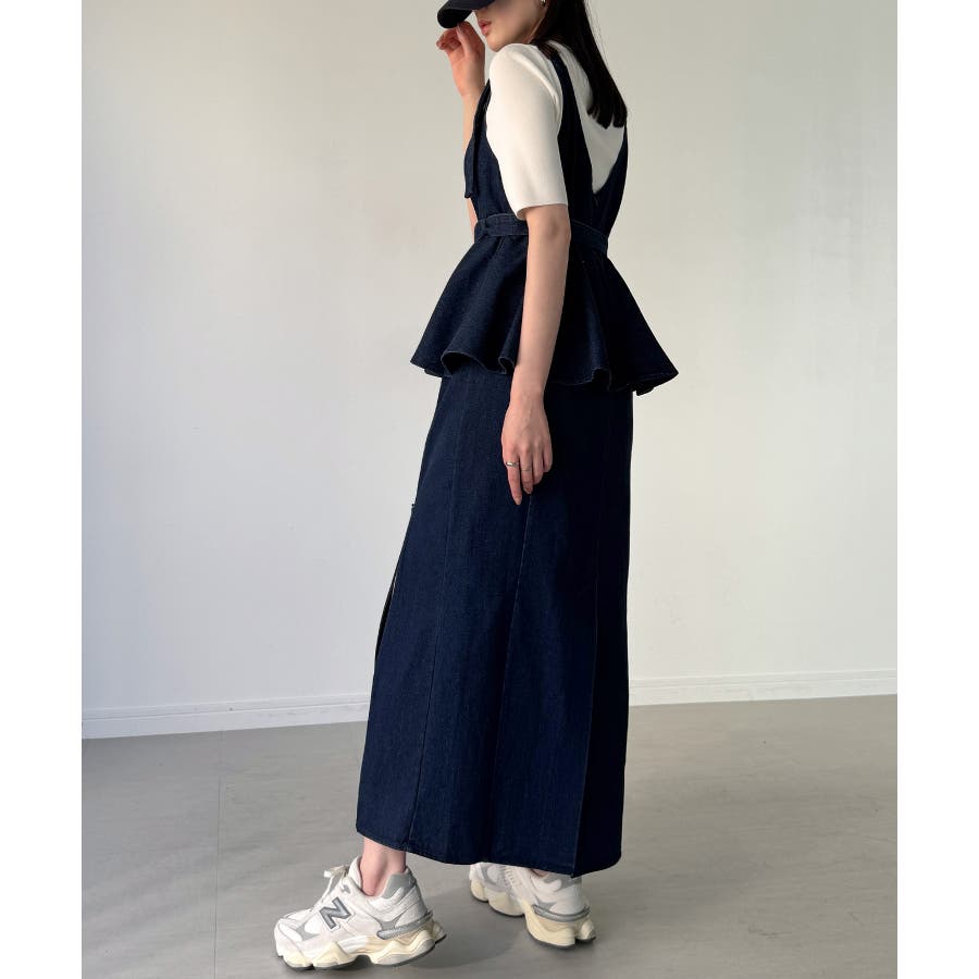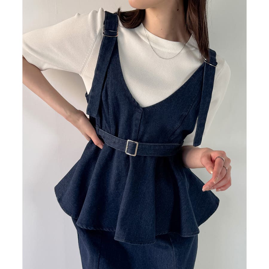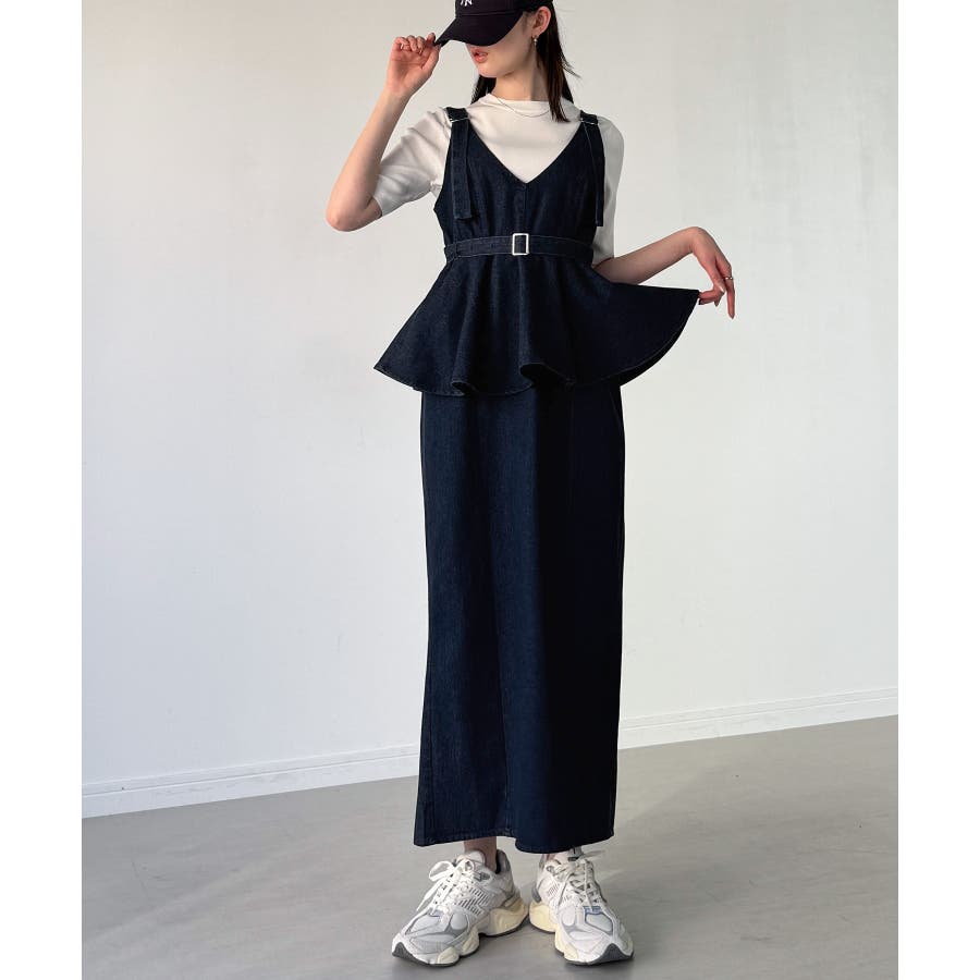 デニムVネックペプラムキャミワンピース