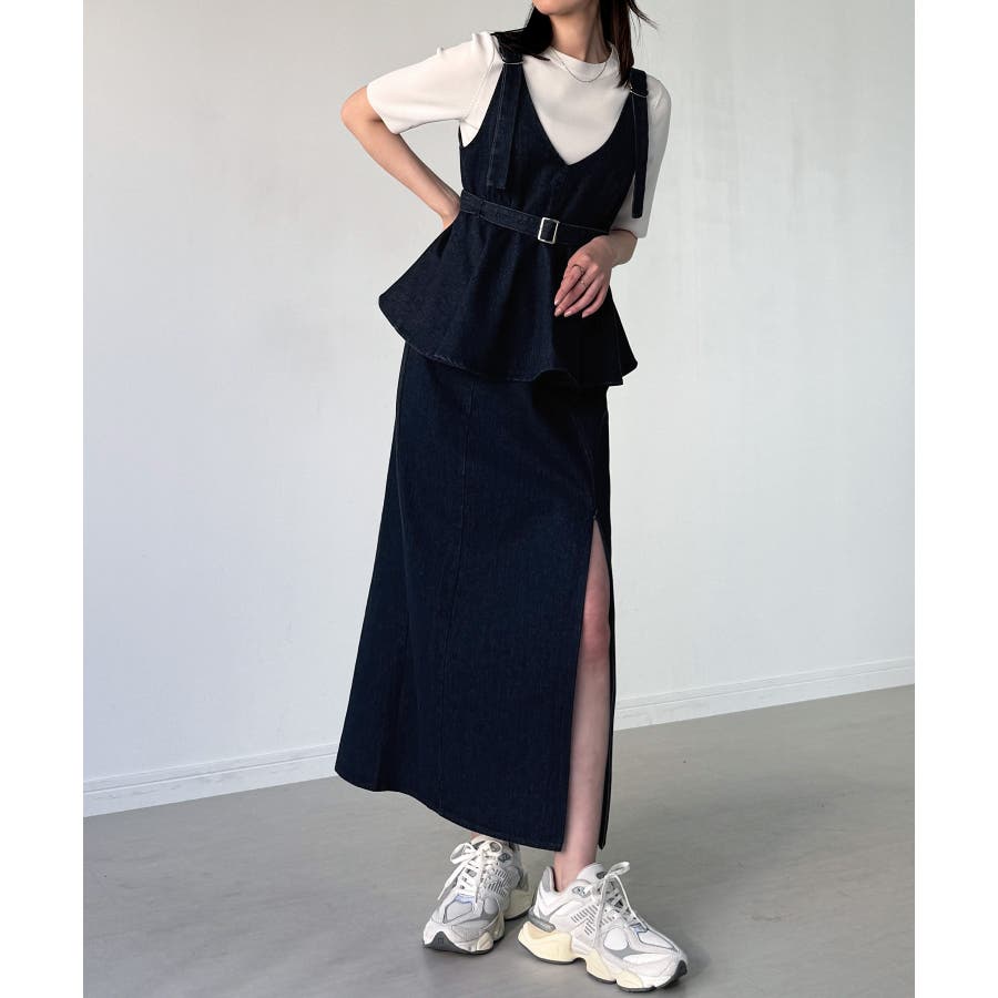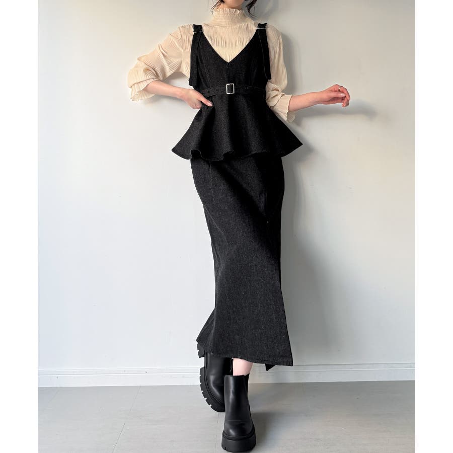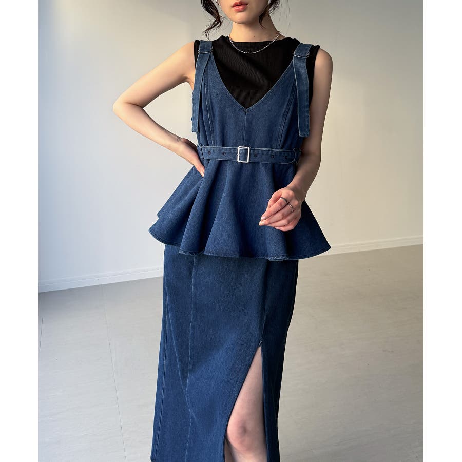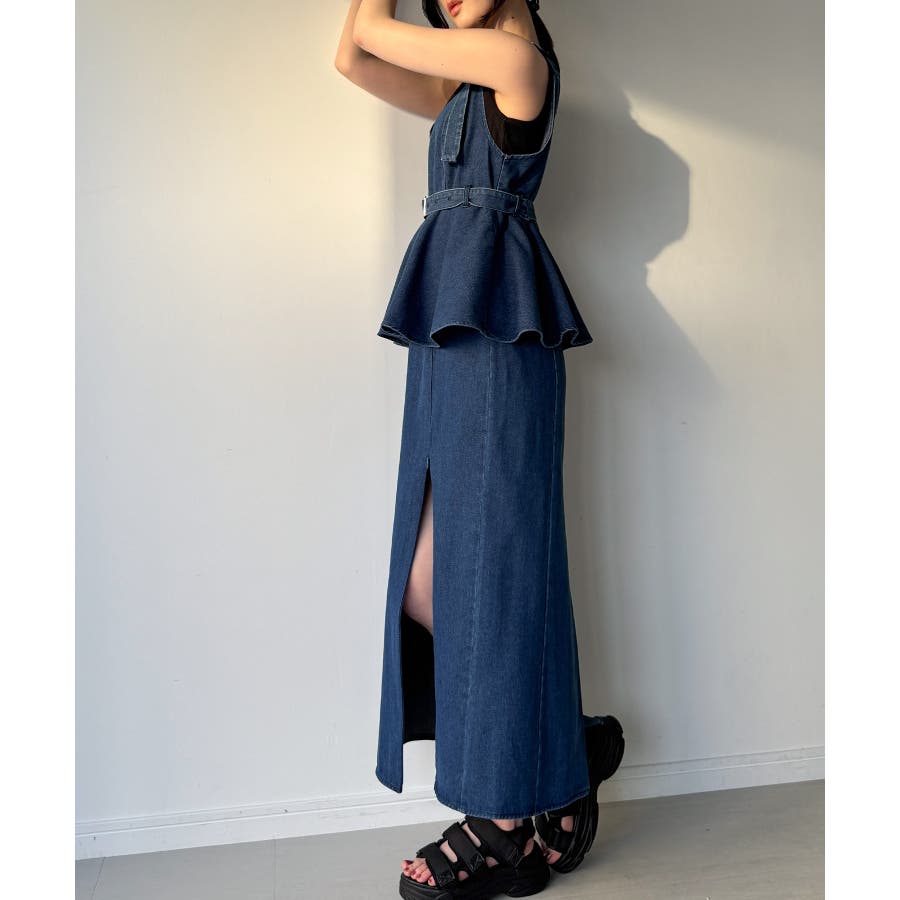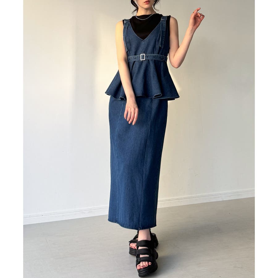 デニムVネックペプラムキャミワンピース