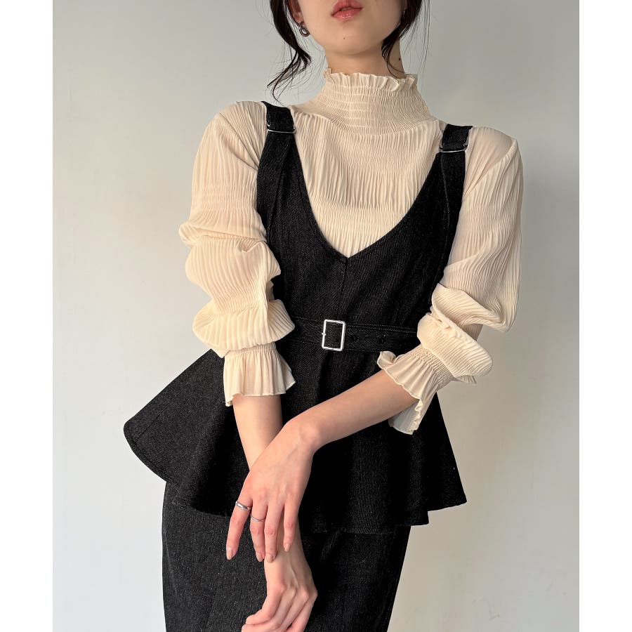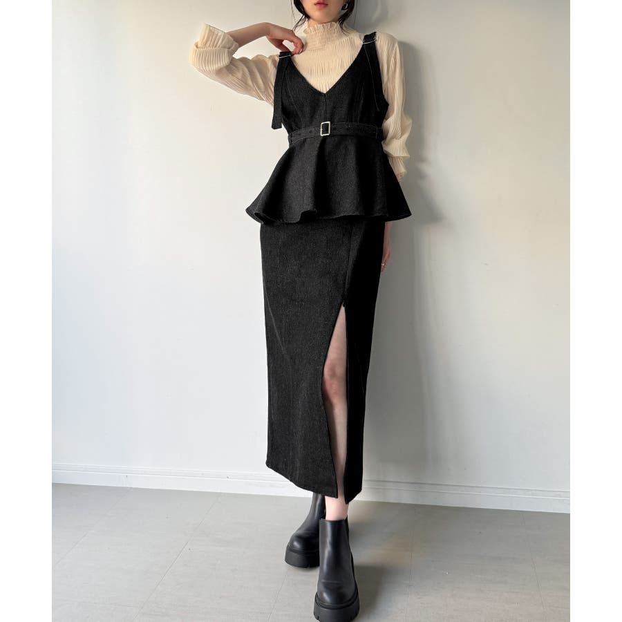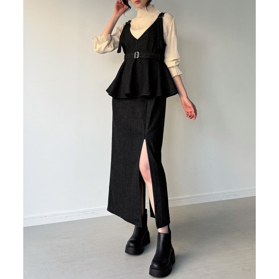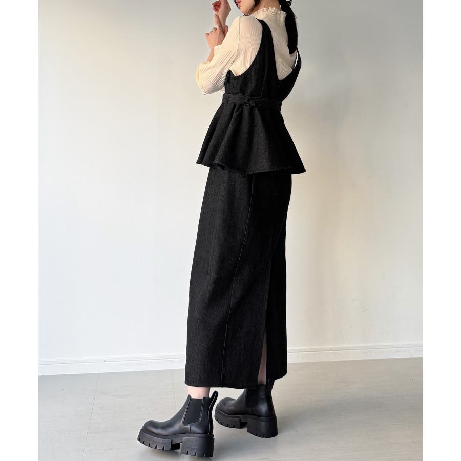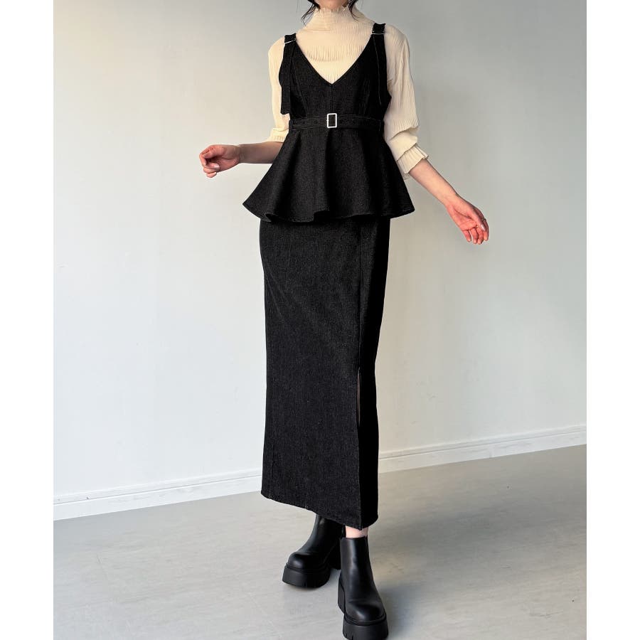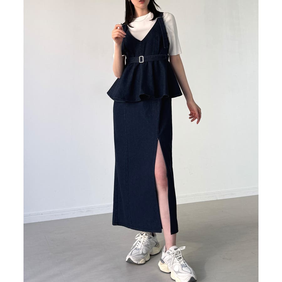 デニムVネックペプラムキャミワンピース