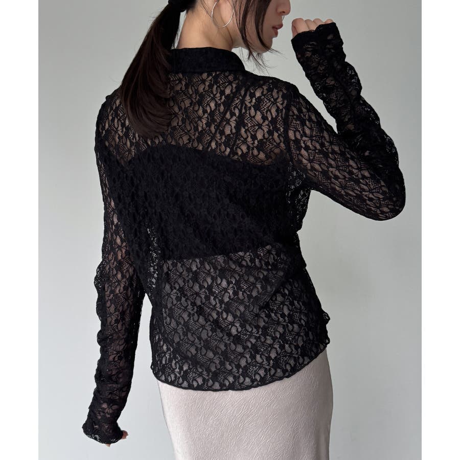カットレースポロ衿カーディガン