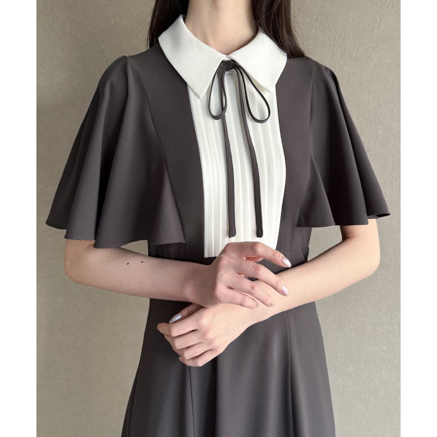 バイカラーピンタックセミフレアワンピース