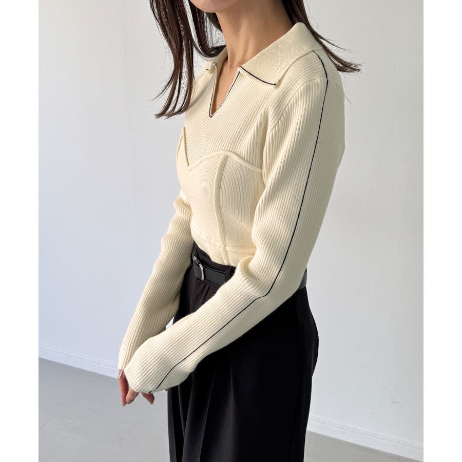 配色ラインビスチェデザインリブニット