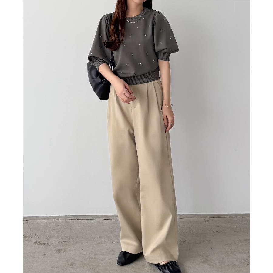 タイトな感じでパンツにもスカートにも合わせやいと思います!ニットなので今の季節にはちょうど良いけど夏は暑いかも