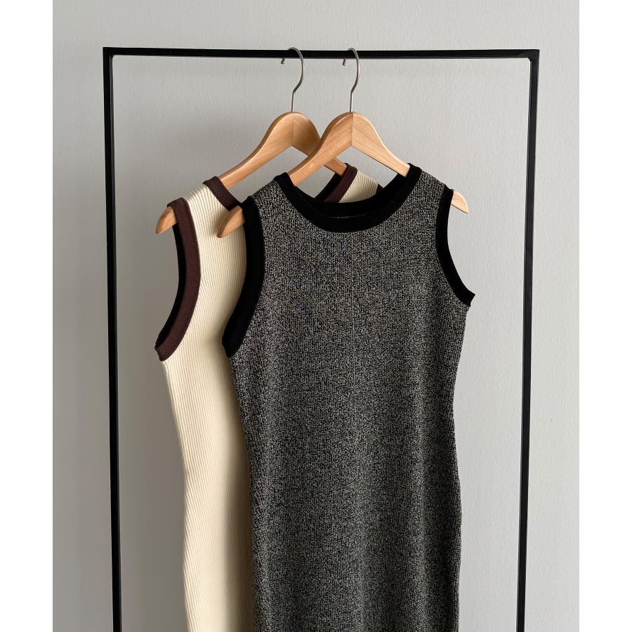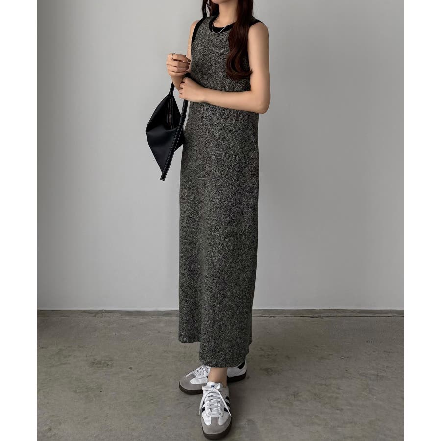 callautia メランジ配色ニットタンクワンピース