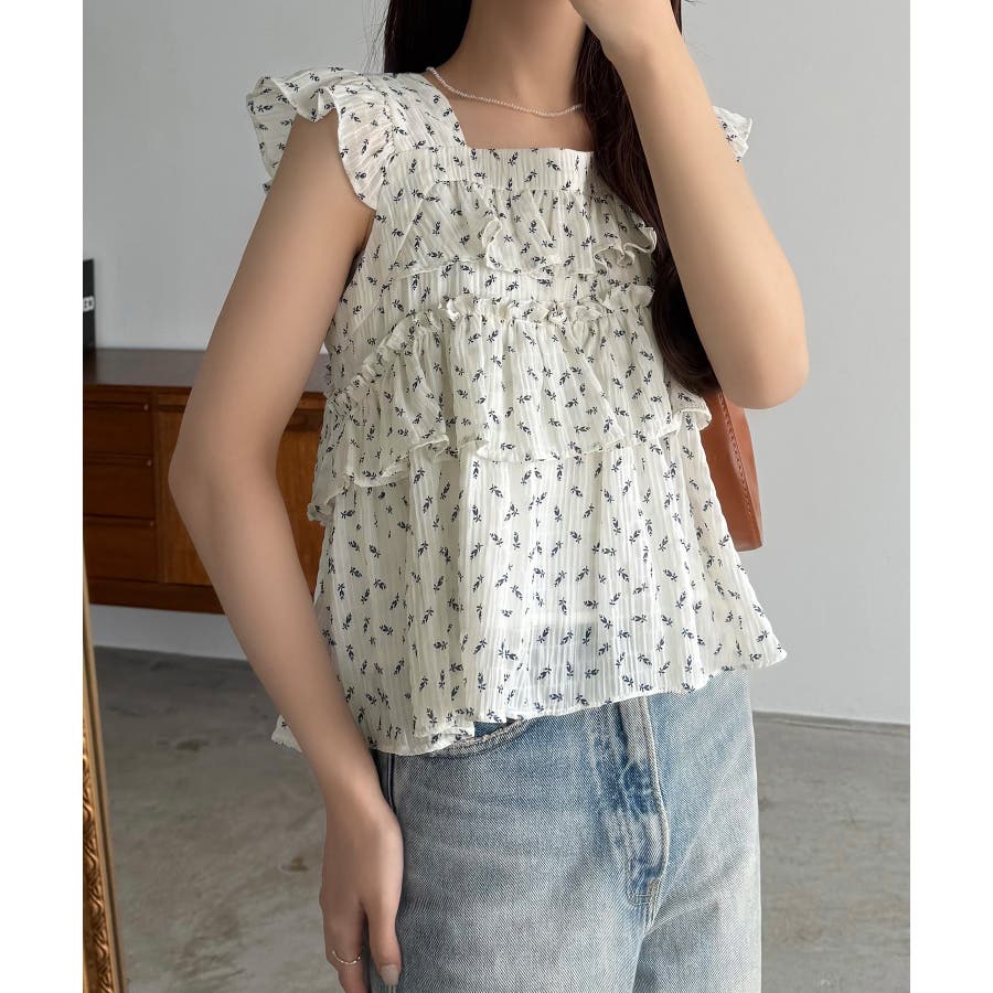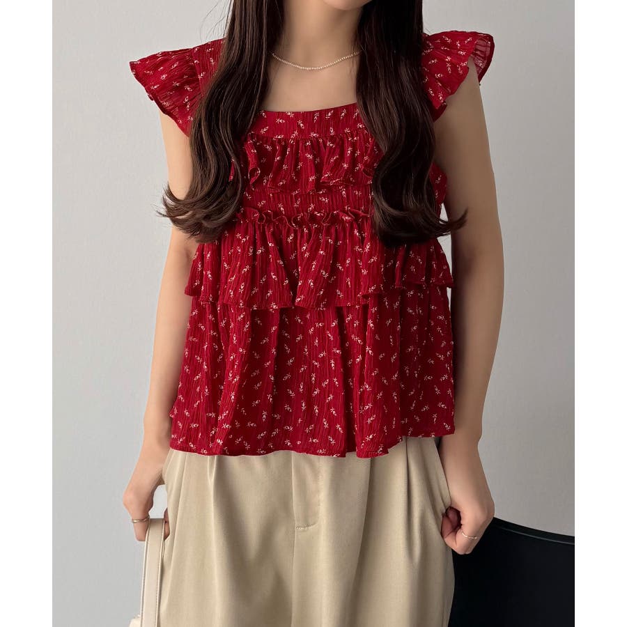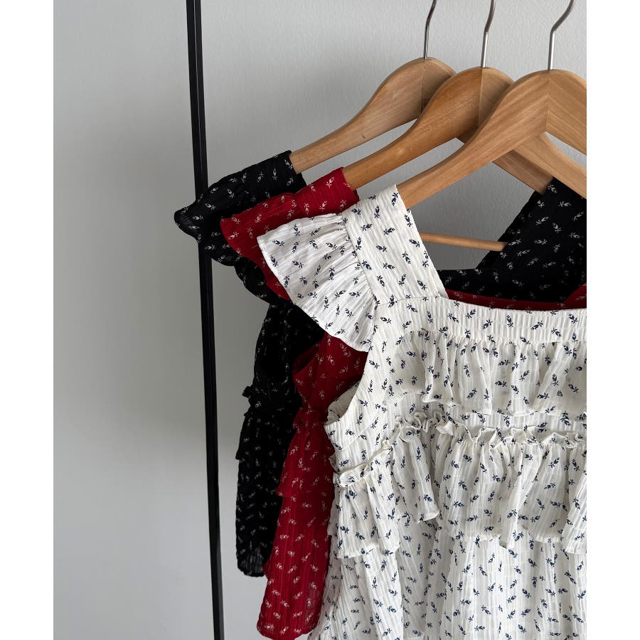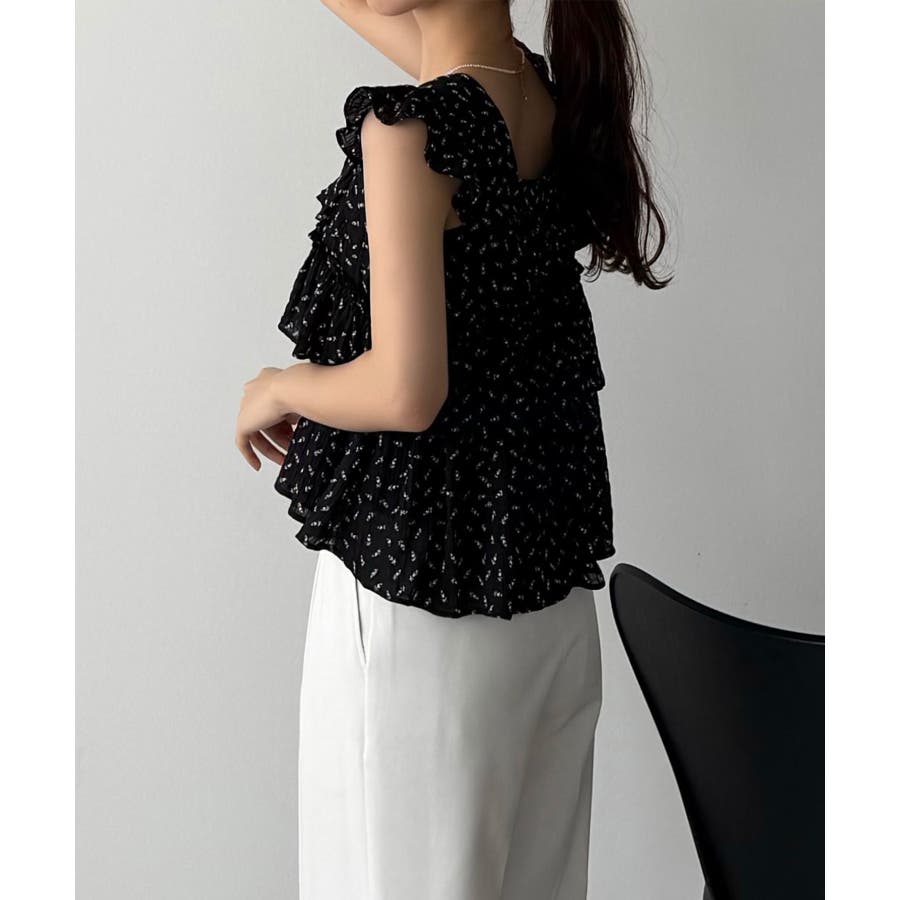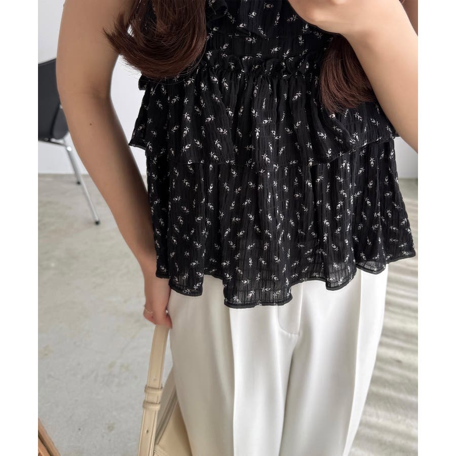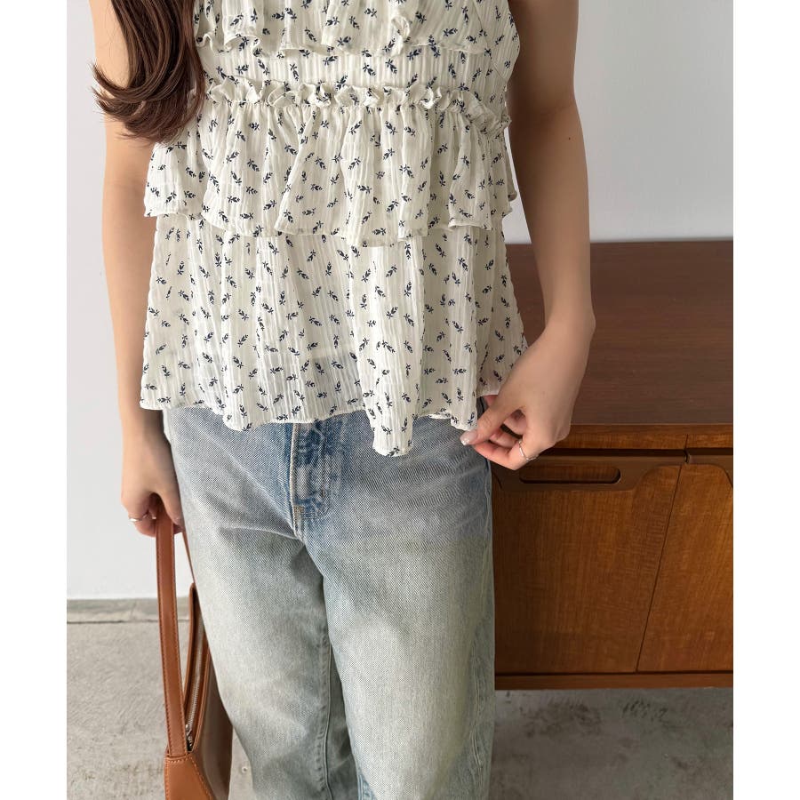 callautia 花柄ノースリーブフリルトップス