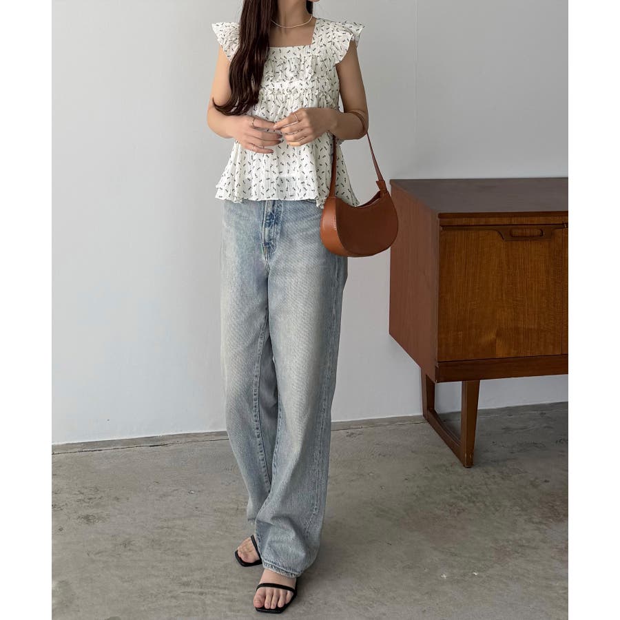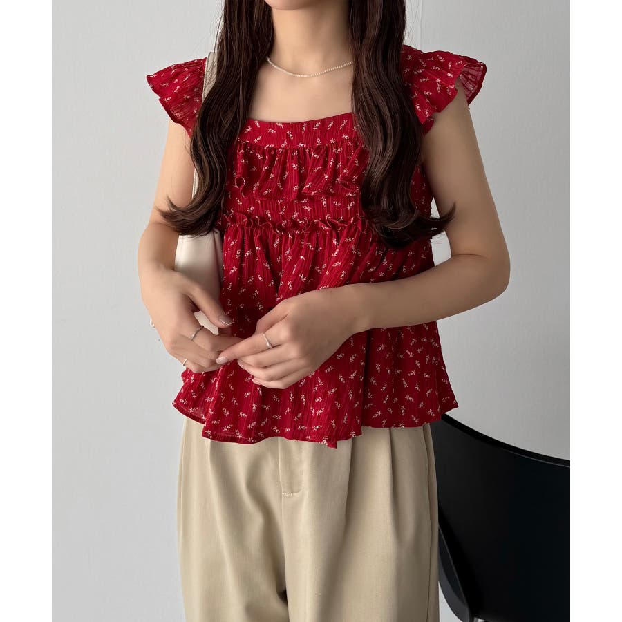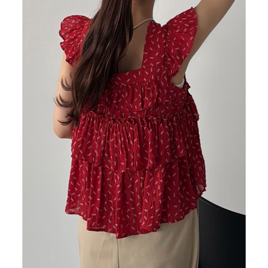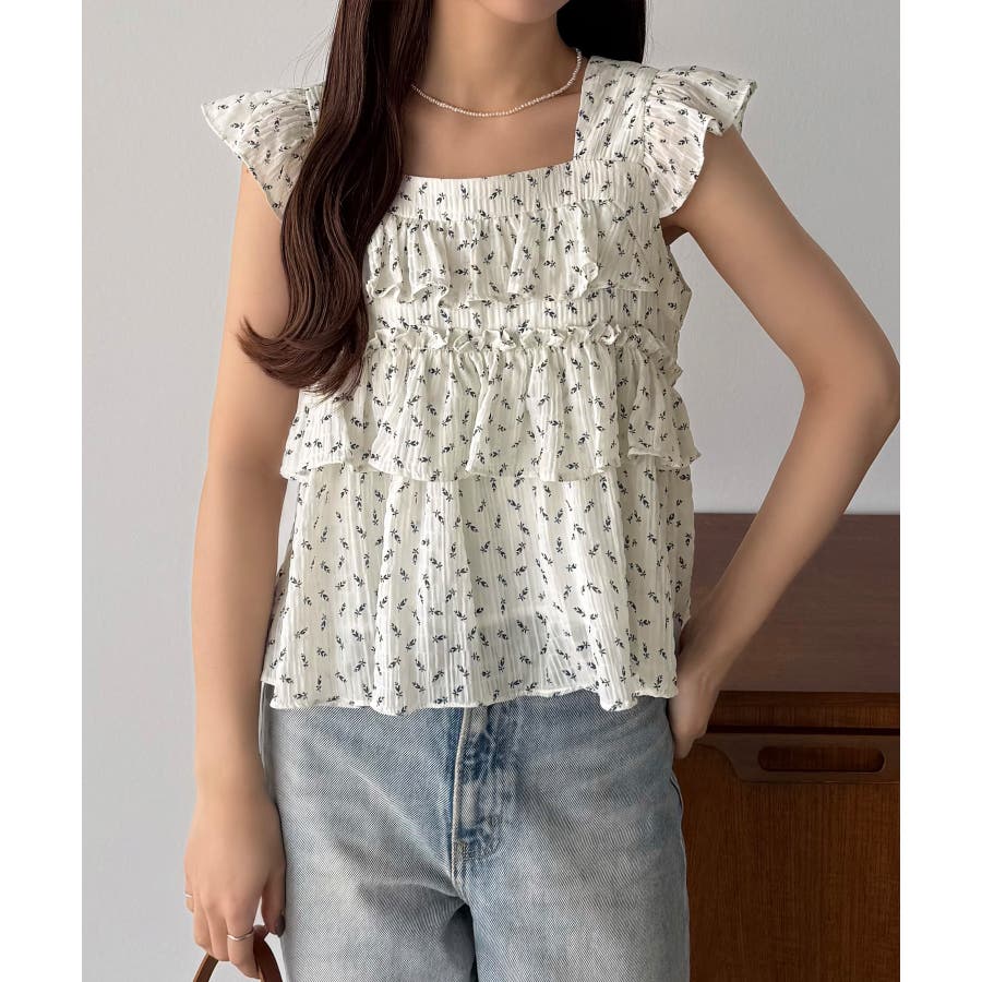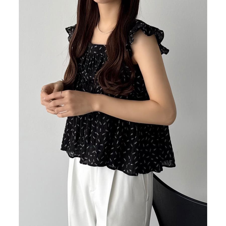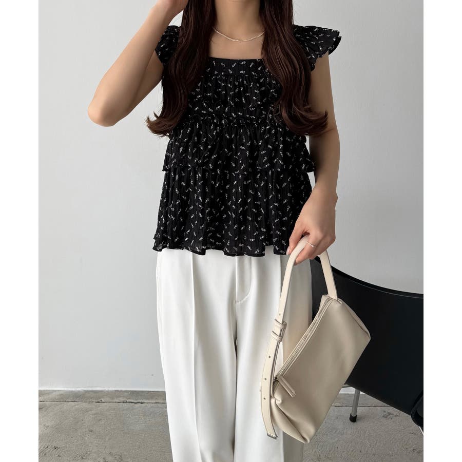 callautia 花柄ノースリーブフリルトップス