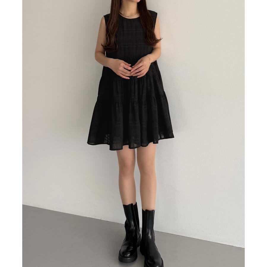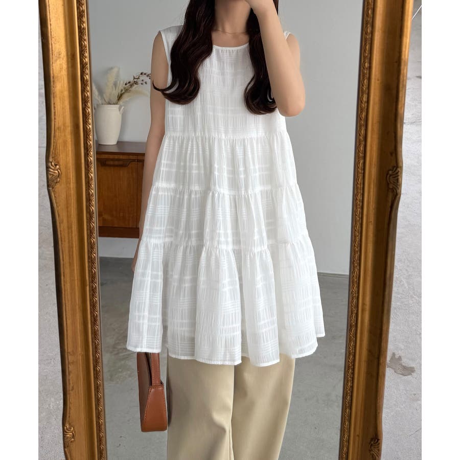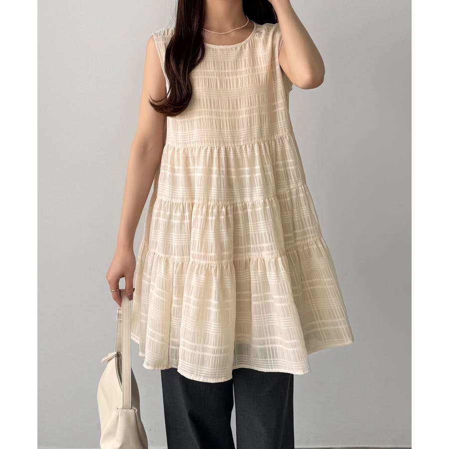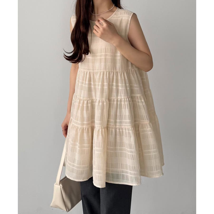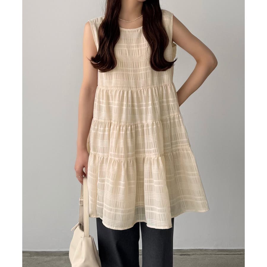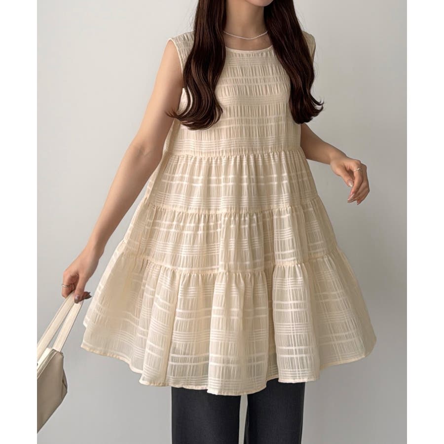 callautia シアーチェックティアードチュニック