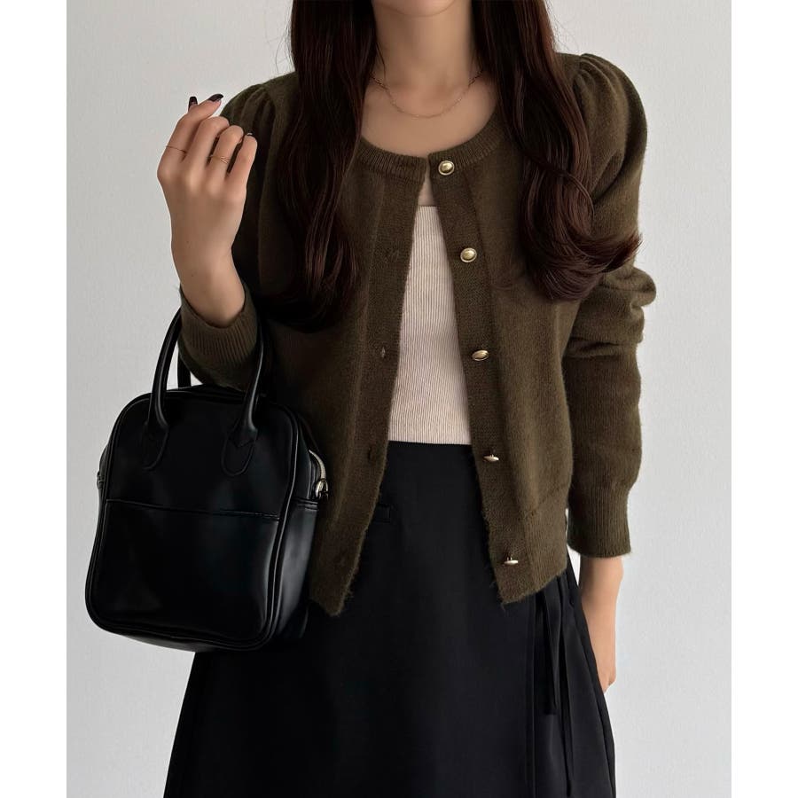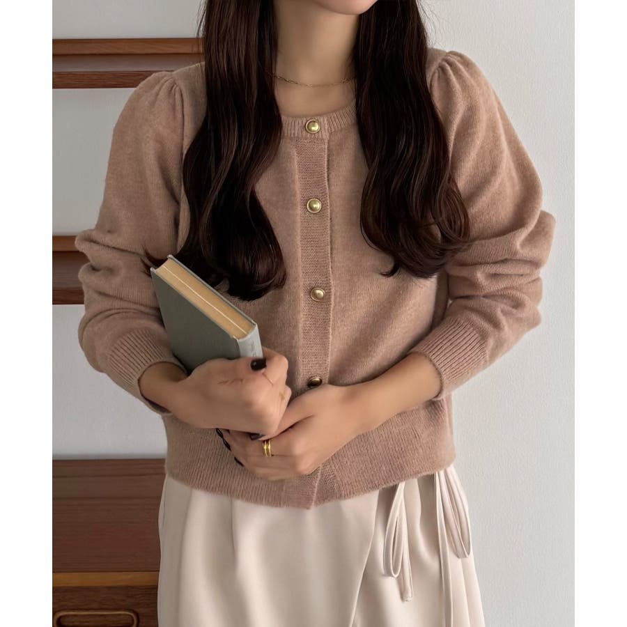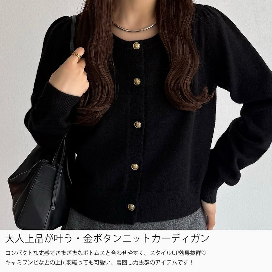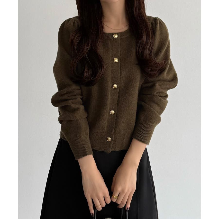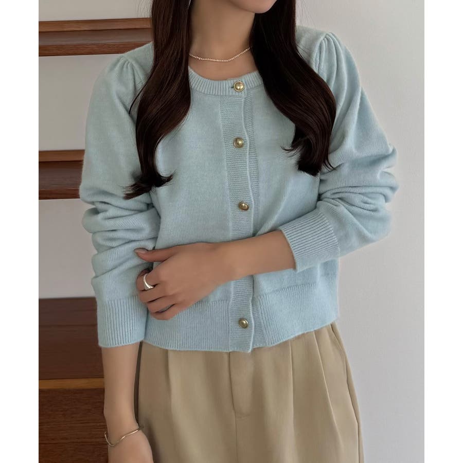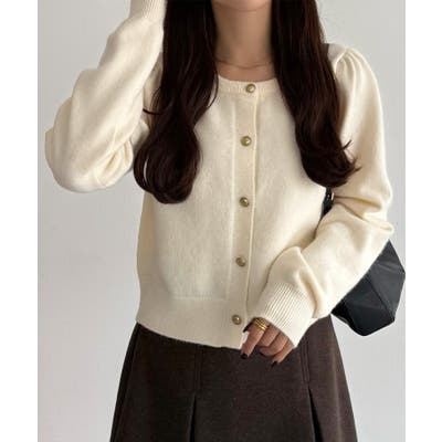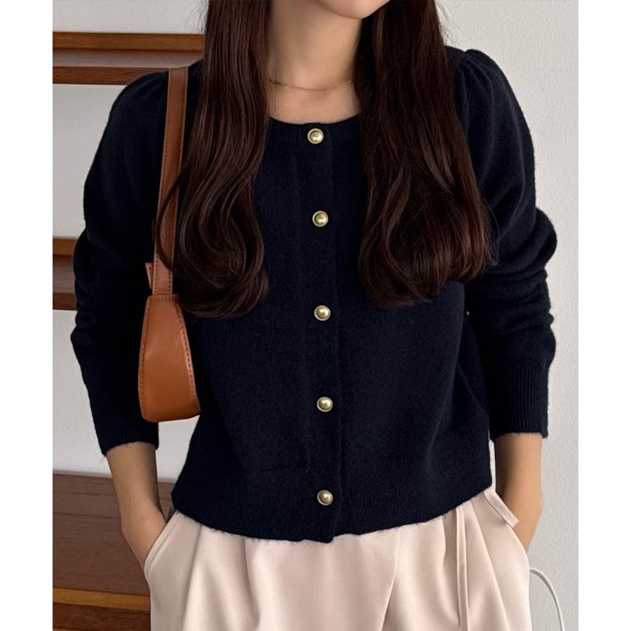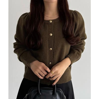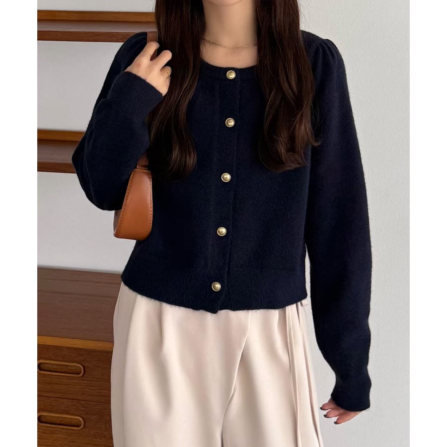 callautia 金ボタンパフスリーブショートニットカーディガン