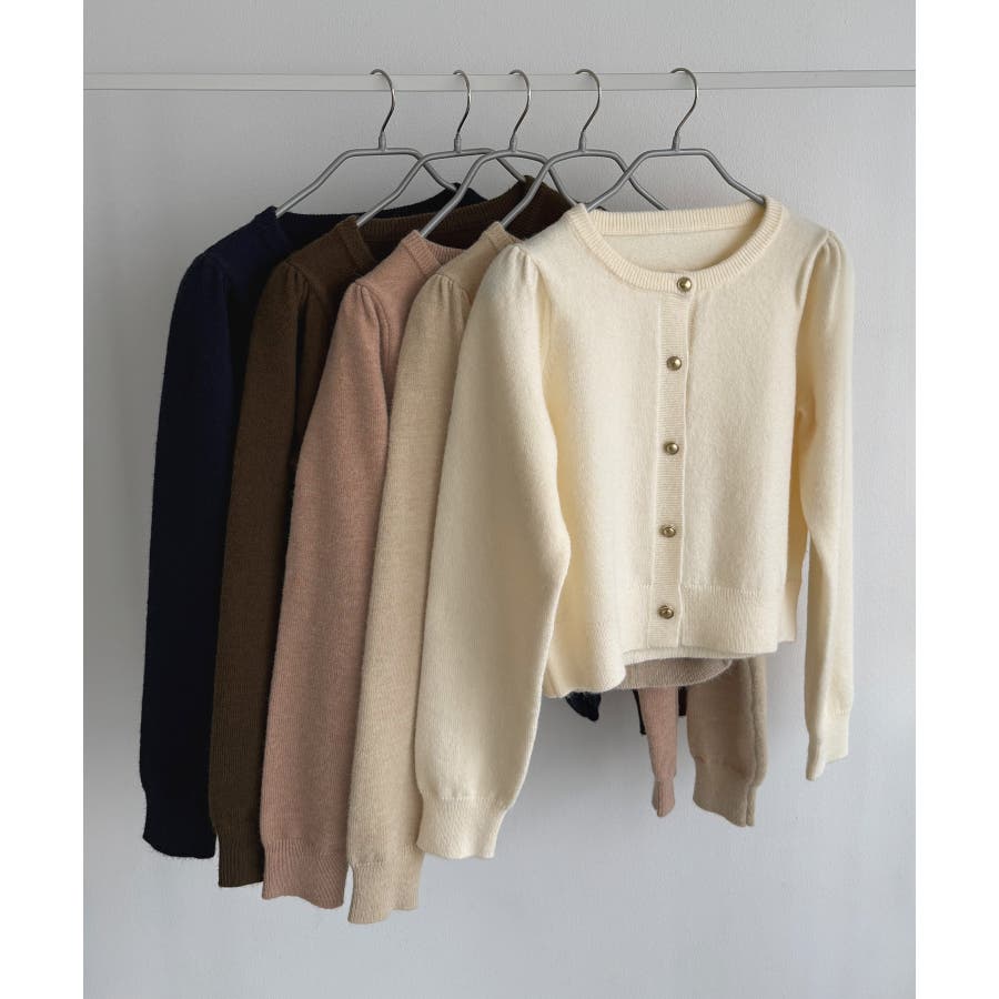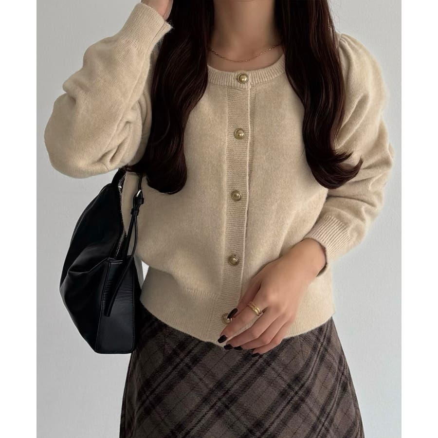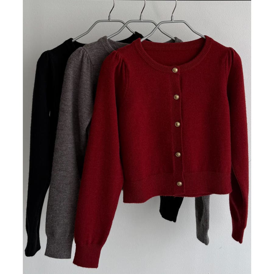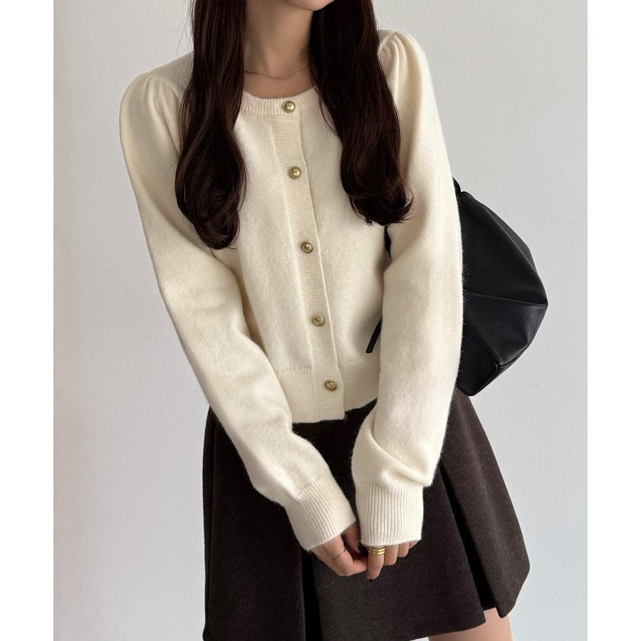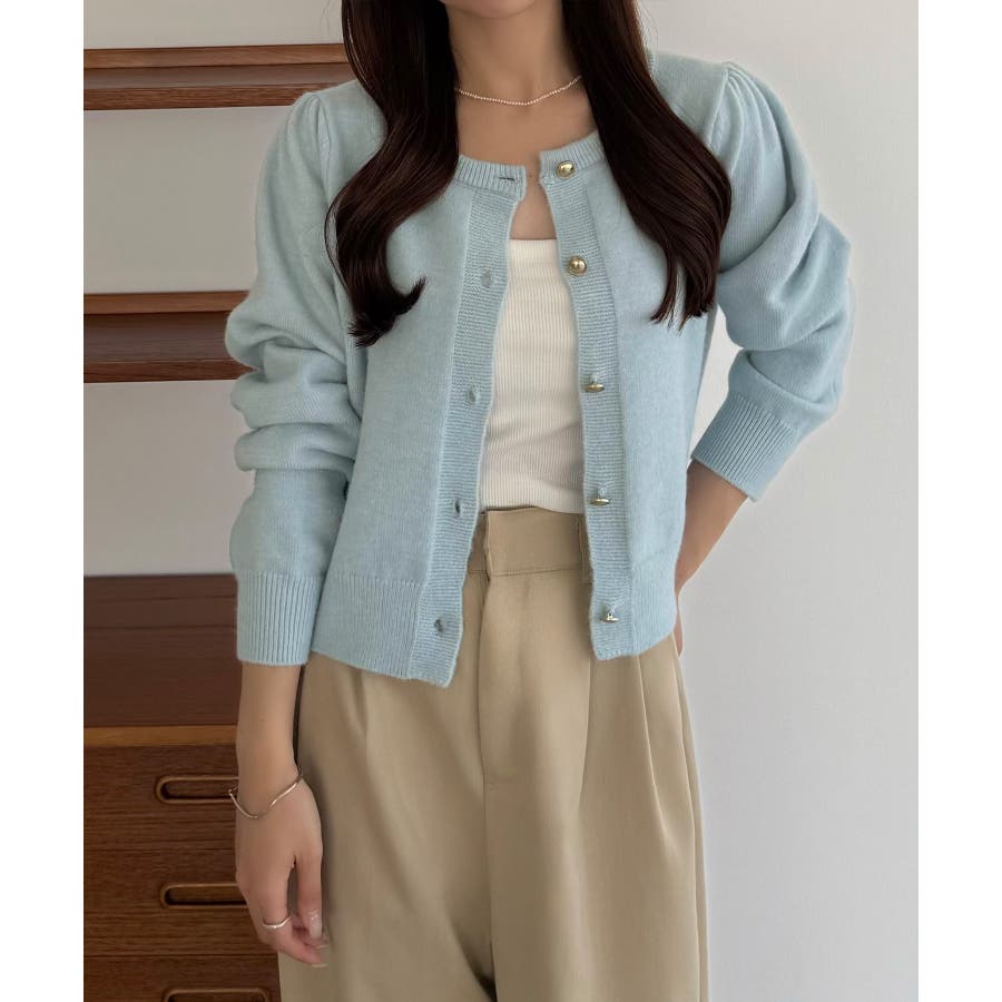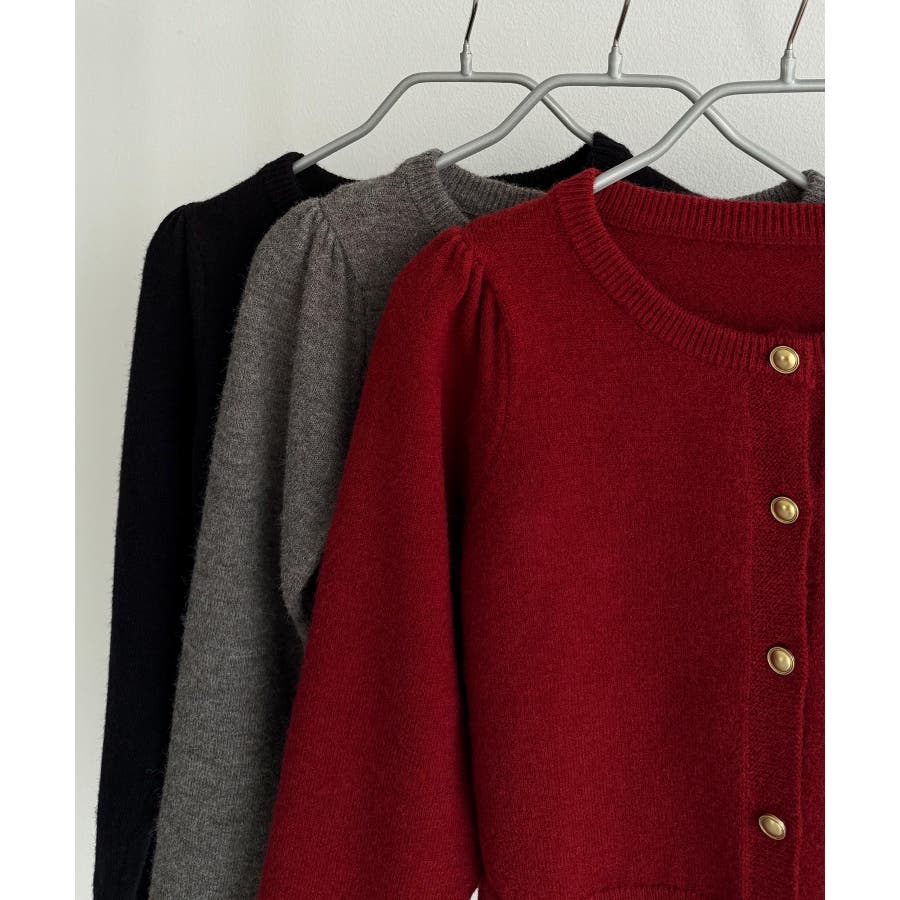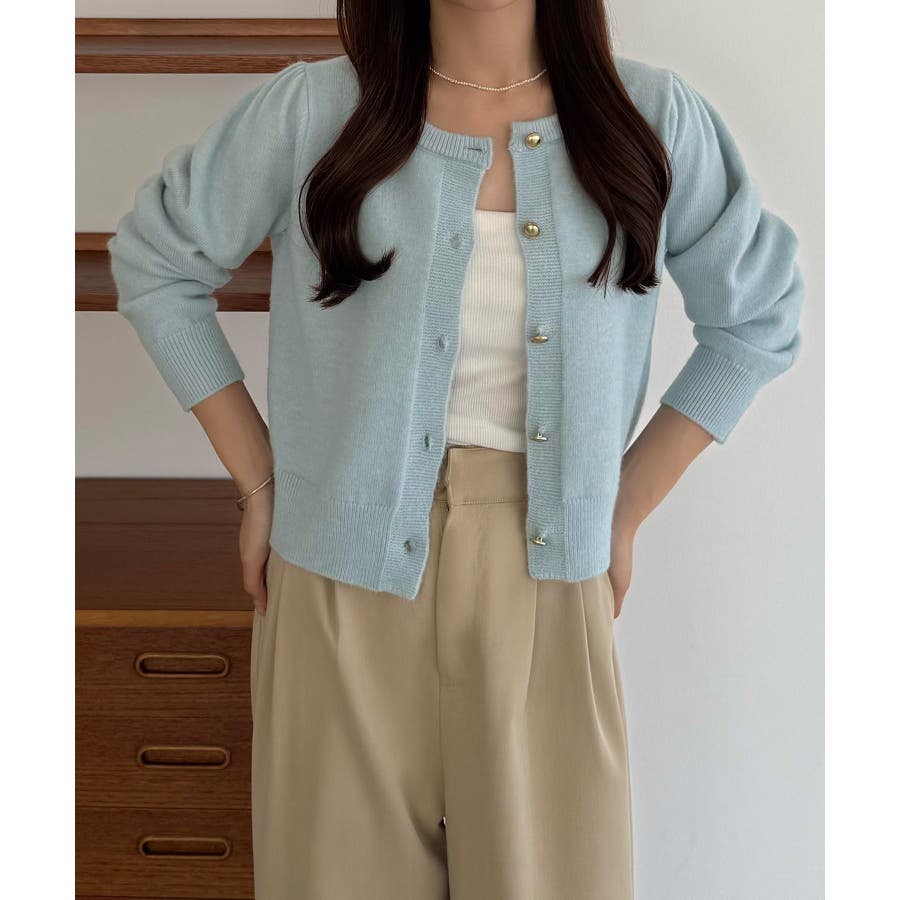 callautia 金ボタンパフスリーブショートニットカーディガン